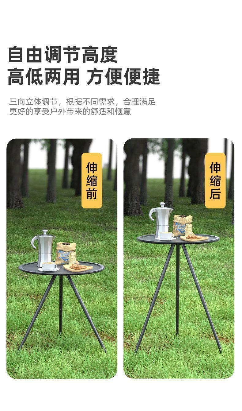 Mesa de exterior, mesa de camping, mesa plegable retráctil para exteriores, mesa redonda pequeña con soporte triangular, mesa de centro sencilla para patio
