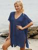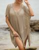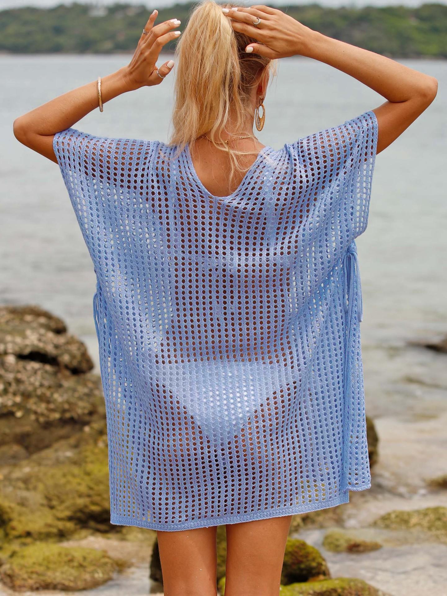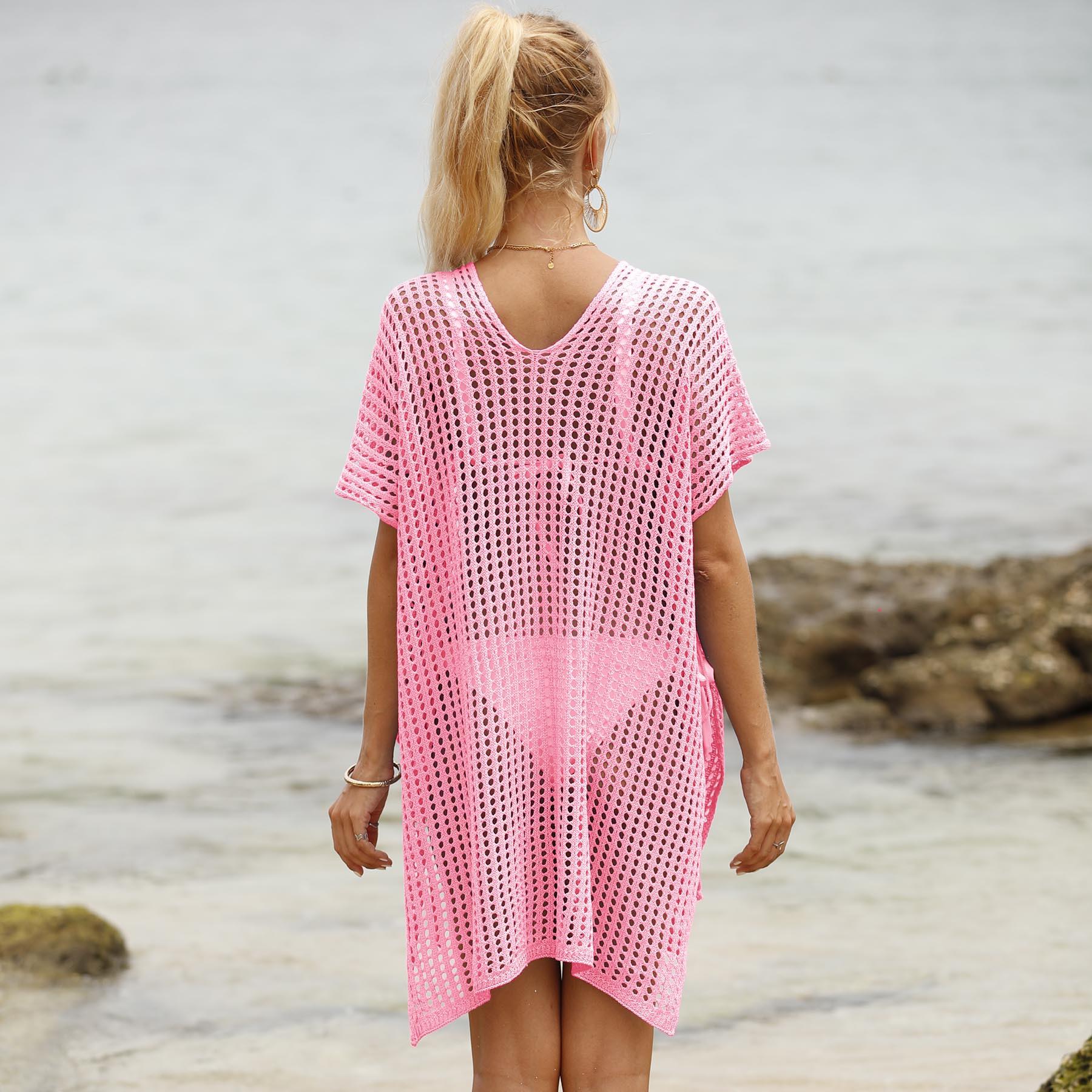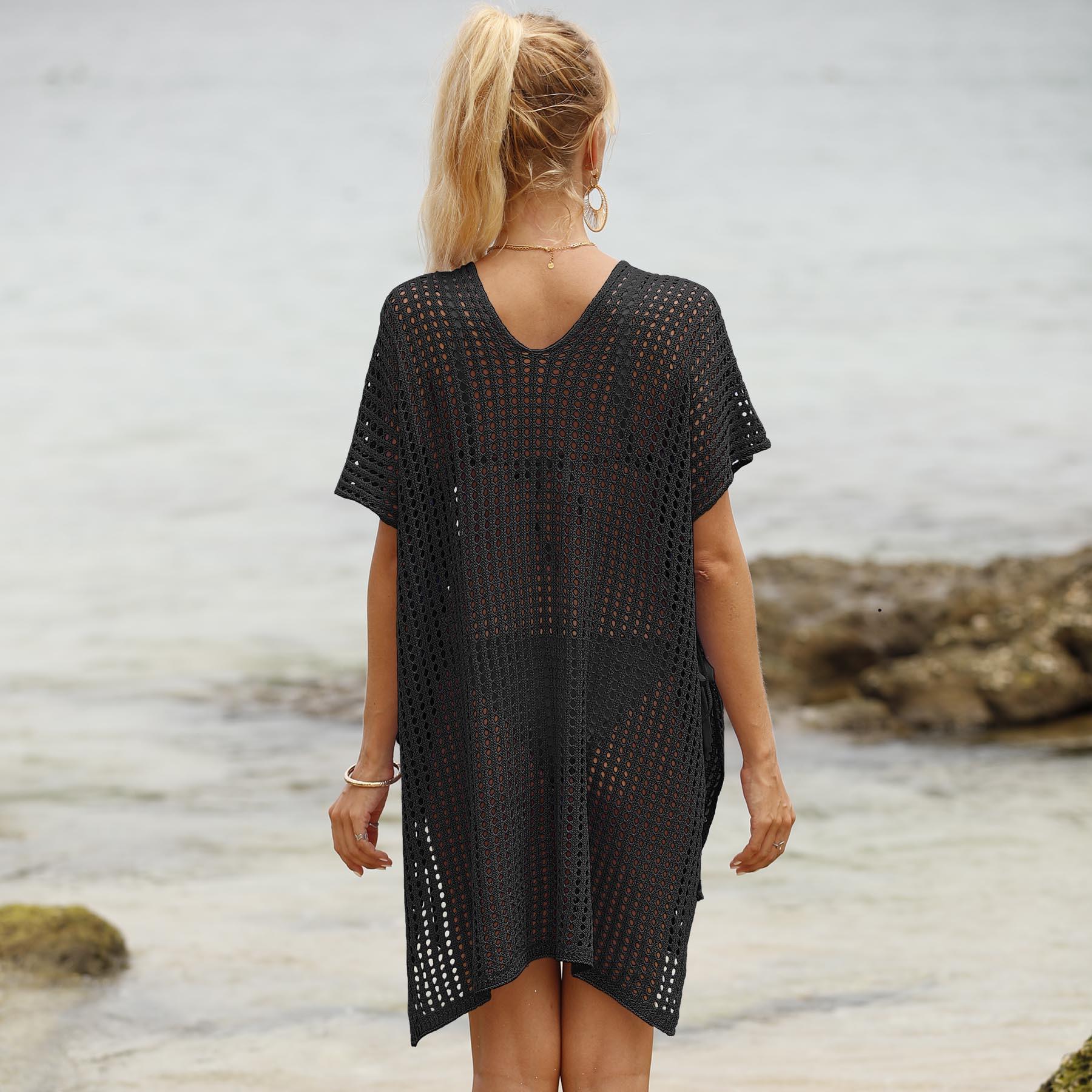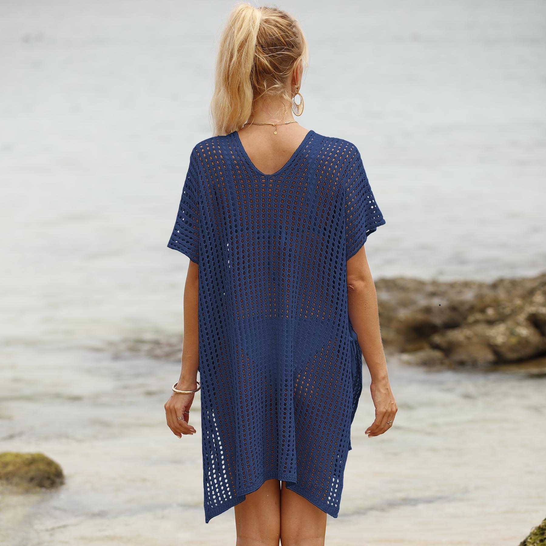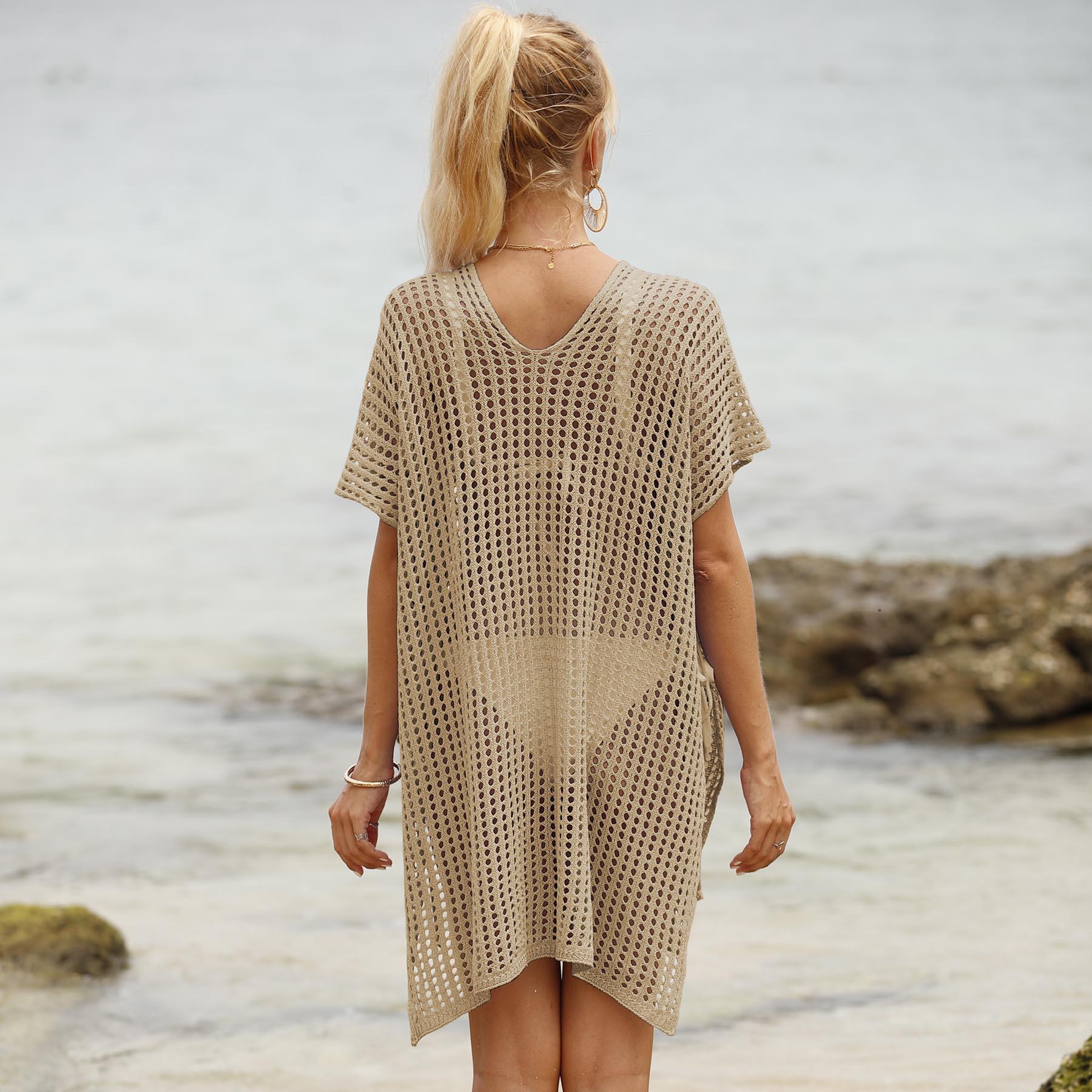 Blusa de bikini de playa para mujer, estilo transfronterizo europeo y americano, camisa tejida, falda de playa sexy con tirantes huecos.