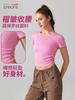 Camiseta deportiva de manga corta con cuello redondo, elástica y transpirable, de secado rápido, para yoga, running y fitness, plisada, para mujer.