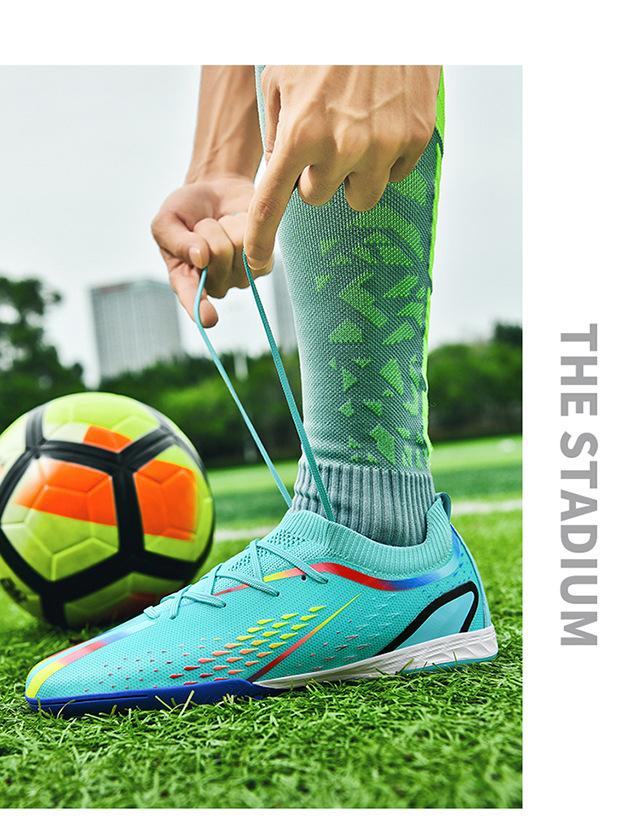 Zapatillas de fútbol de caña alta transfronterizas para hombre y mujer, para niños, con clavos triturados, para césped artificial, para entrenamiento deportivo de fútbol.