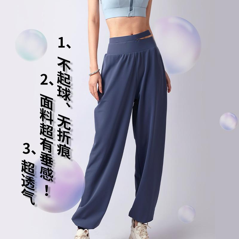 Pantalones deportivos Lulu de cintura alta con doble cintura hueca para mujer, holgados, para correr, fitness, de secado rápido, para adelgazar y yoga.