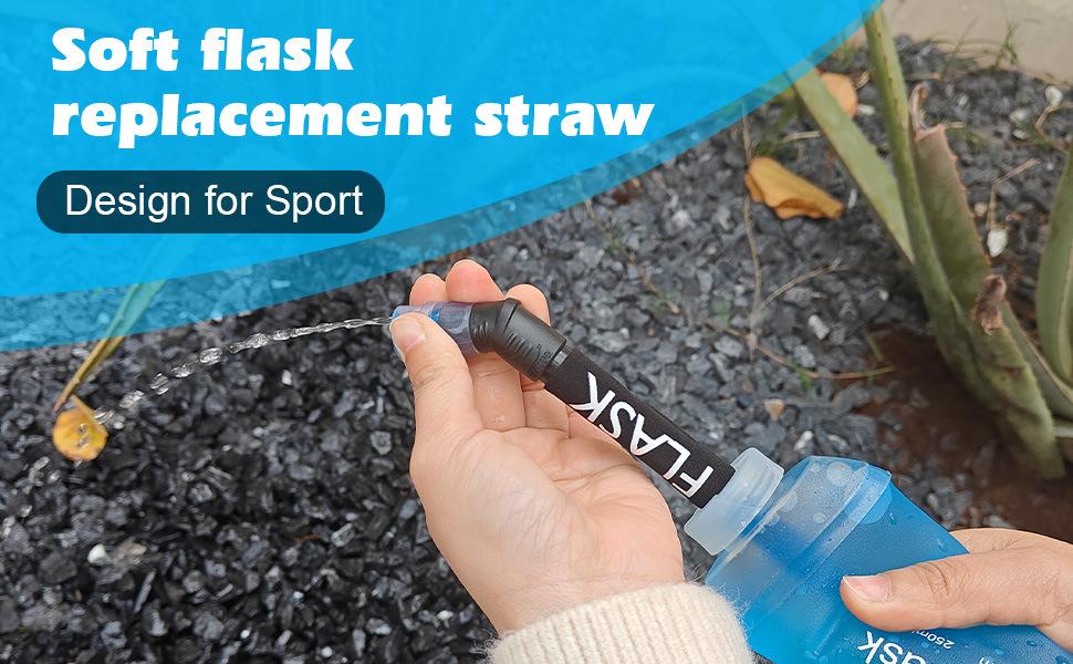 Botella de agua deportiva blanda, plegable, de TPU, para montañismo, con boquilla de pajita de repuesto.