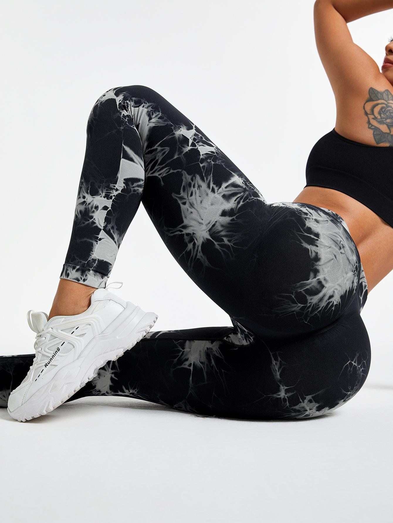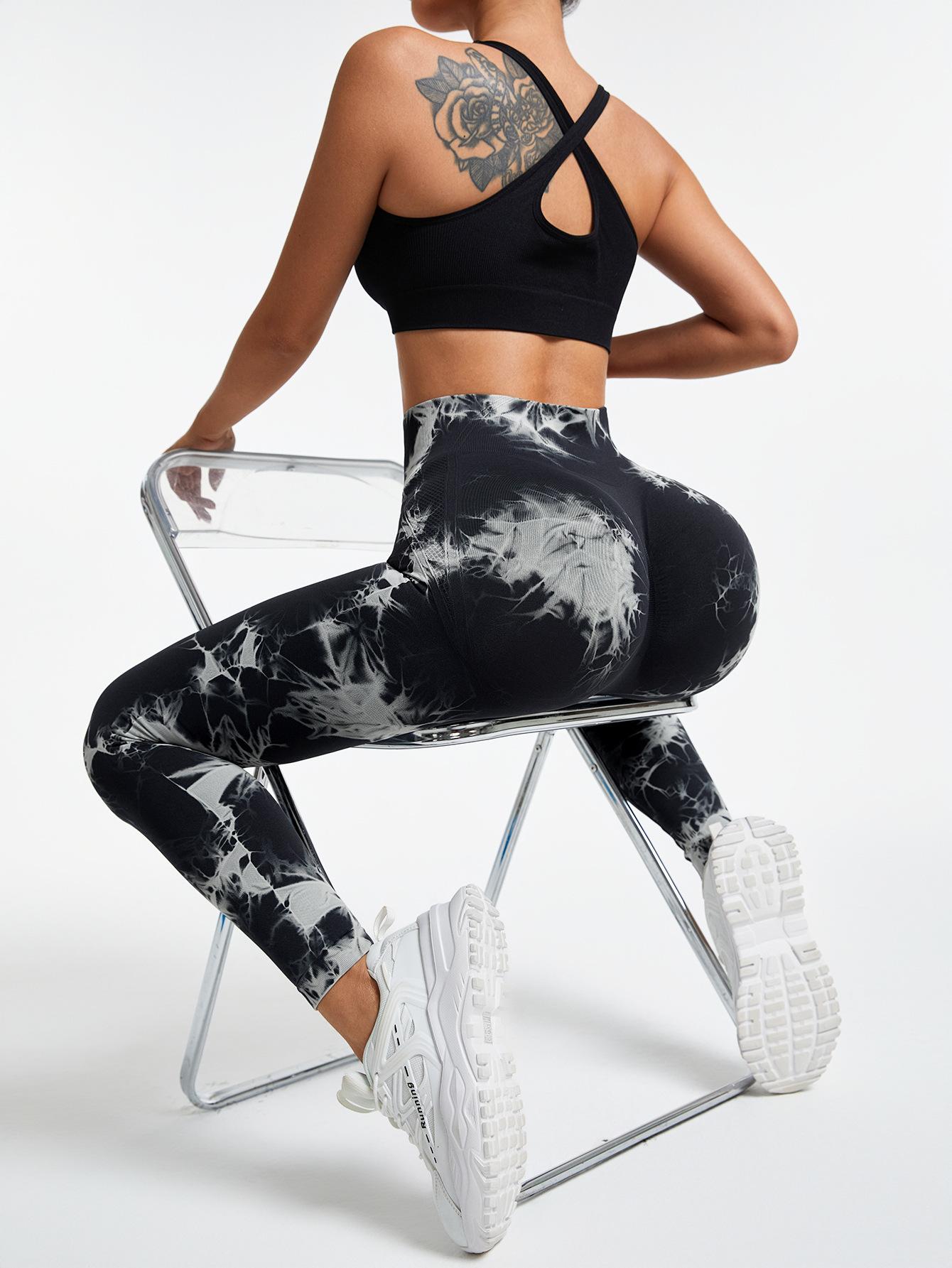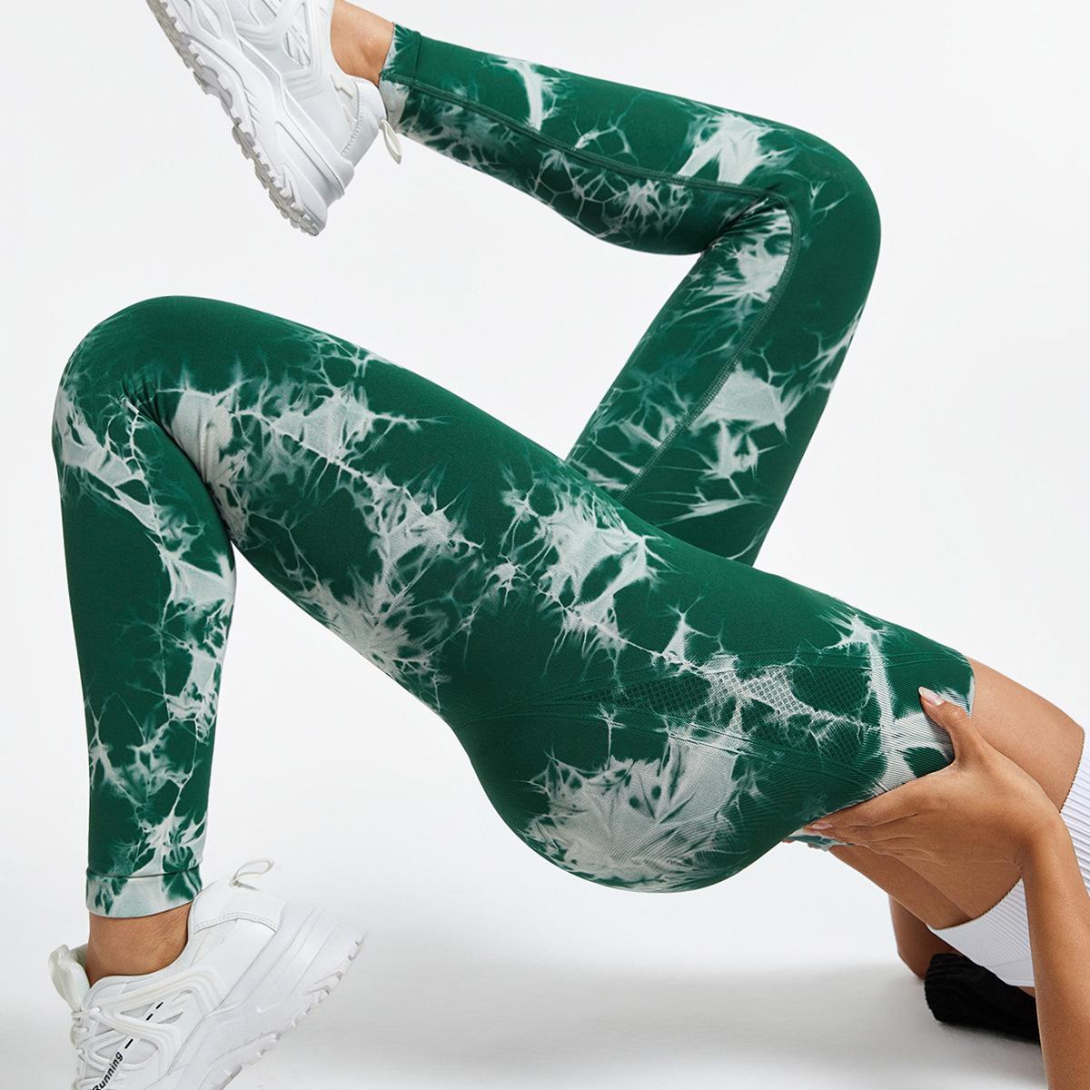 Pantalones deportivos estilo europeo y americano para cadera, sin costuras, teñido anudado, pantalones de yoga melocotón para cadera, cintura alta, pantalones de yoga personalizados