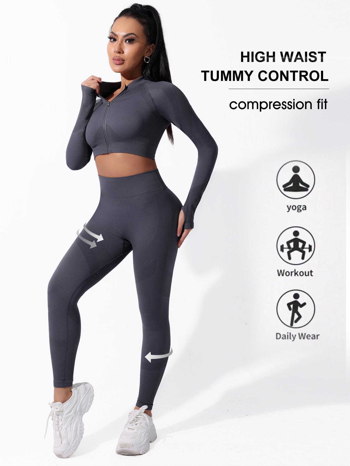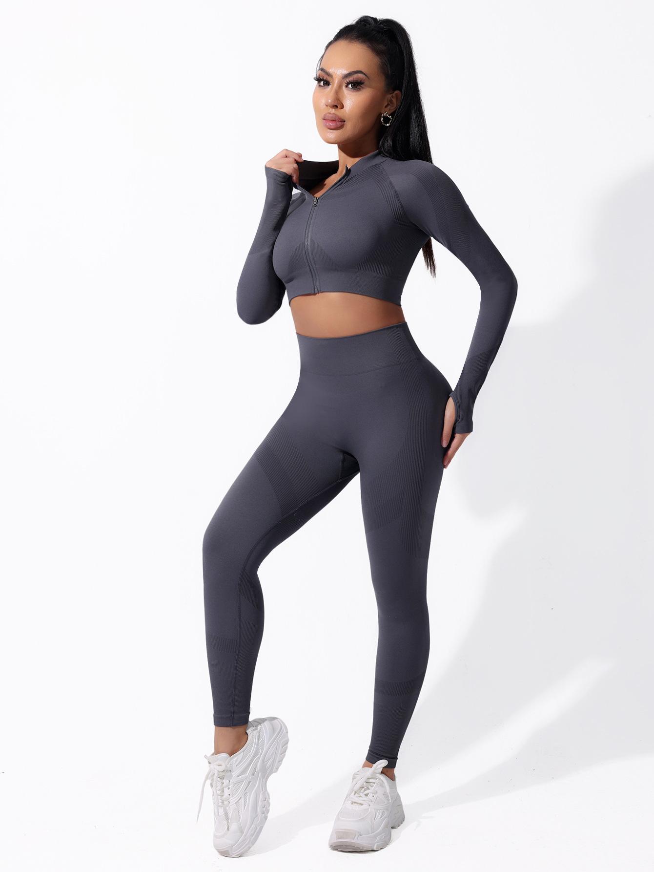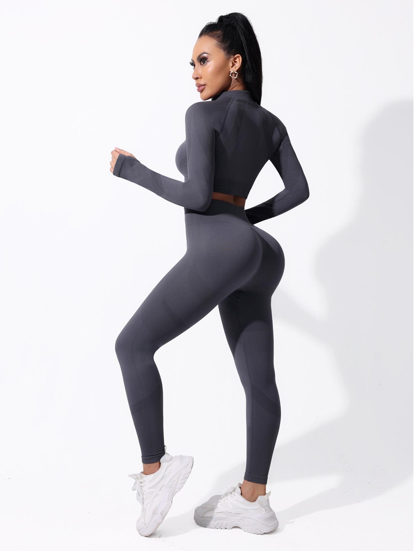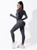 Ropa de yoga con cuello levantado y cremallera Ins Wind para mujer, traje deportivo ajustado de cintura alta sin costuras y cadera color melocotón, novedad de 2025