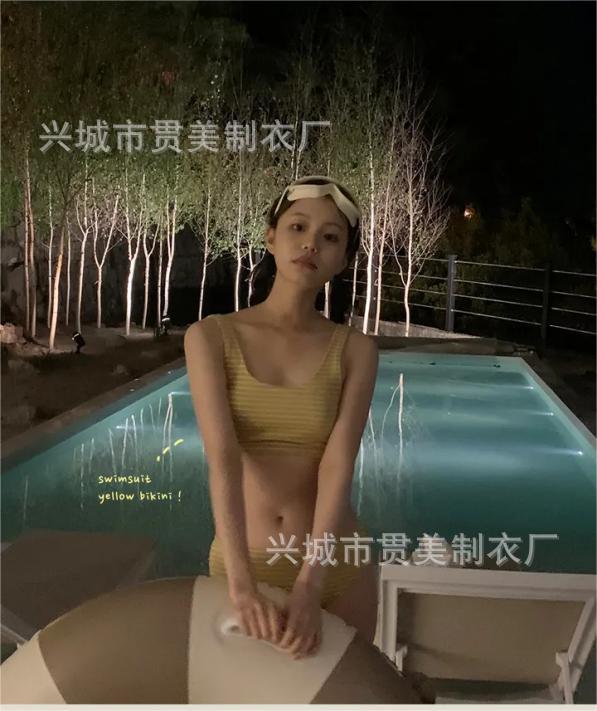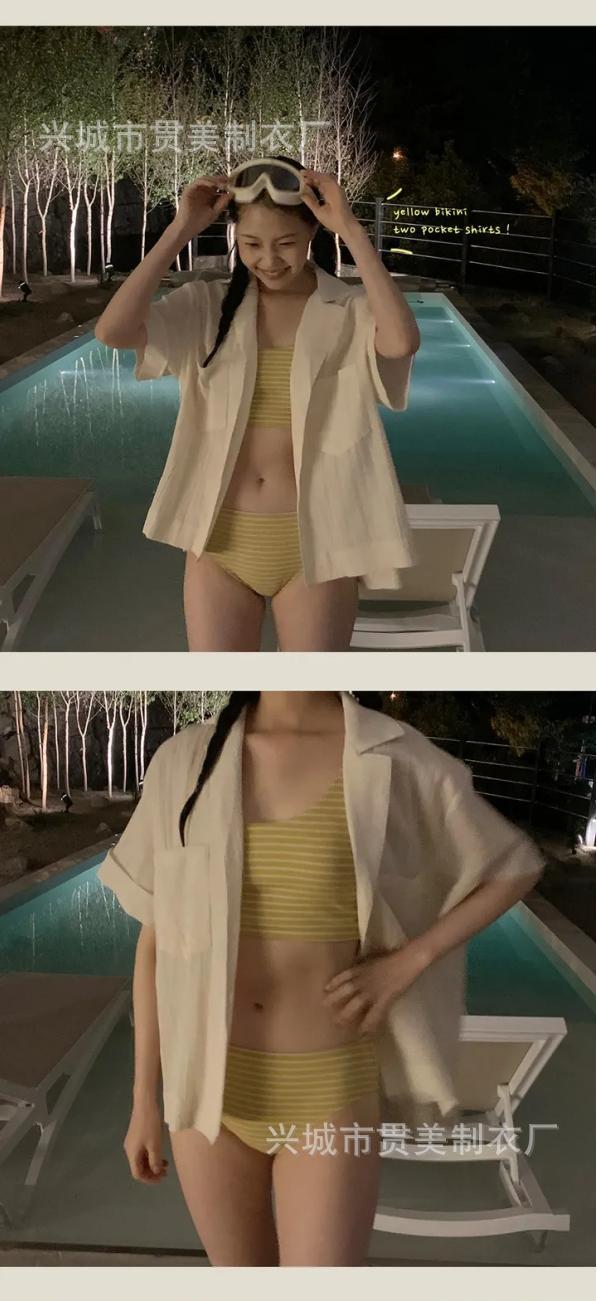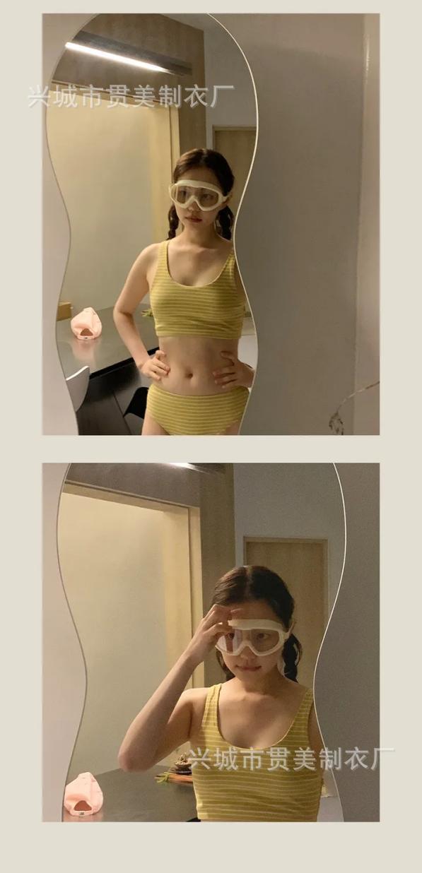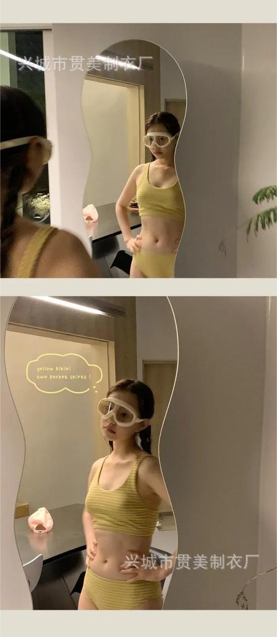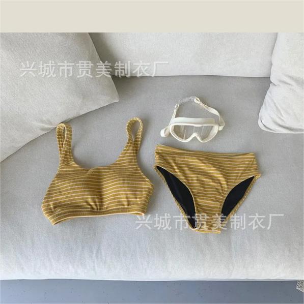 Traje de baño femenino coreano para chica, estilo vintage, para vacaciones, spa, bikini dividido, adelgazante, con cobertura de piel, bikini de rayas Spice Girl.