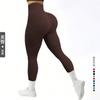 Ropa interior deportiva de yoga para mujer con almohadilla para el pecho, tirantes finos cruzados, color melocotón, pantalones ajustados para levantar la cadera y la cintura.