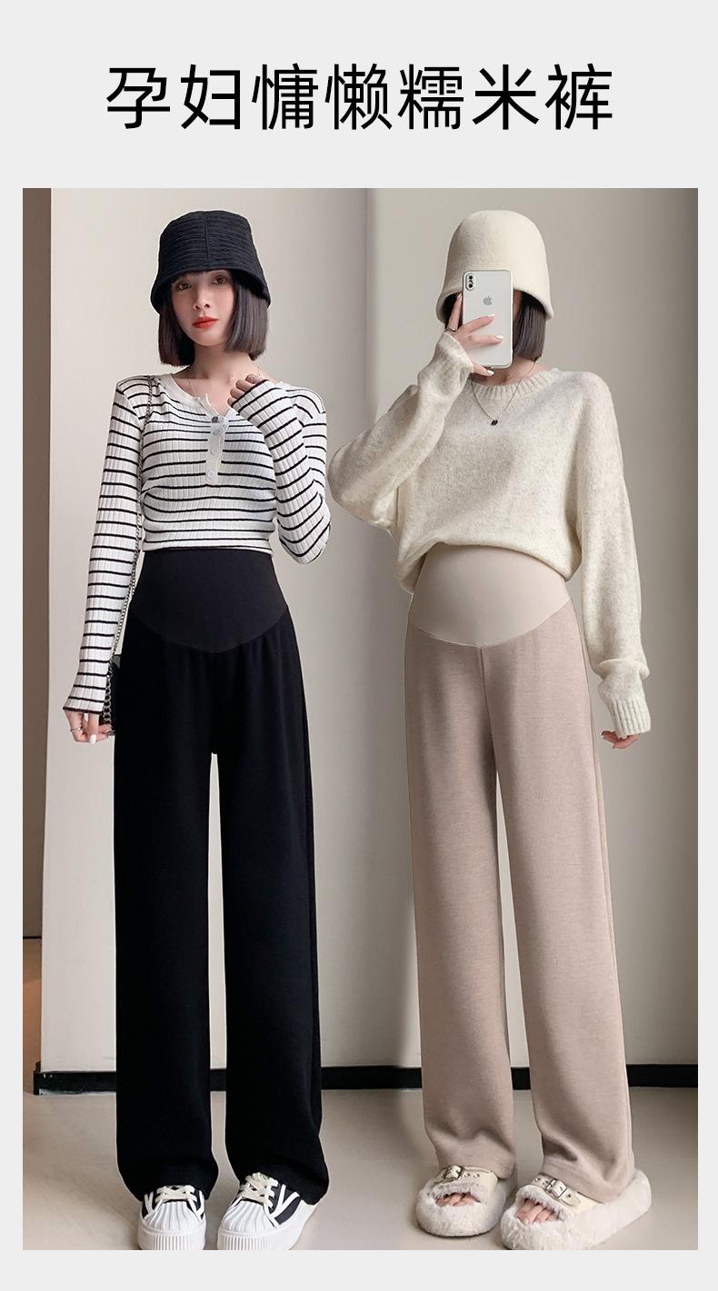 Pantalones de mujer embarazada de lana de cachemir, suaves, cómodos, a la moda, sueltos y adelgazantes, para otoño e invierno, largos, rectos y anchos.