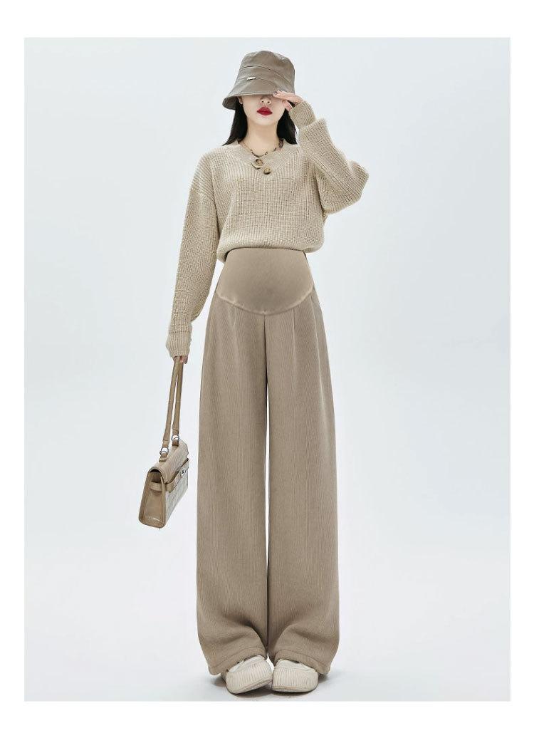 Pantalones Largos de Terciopelo Cálido para Bebé para Mujer Embarazada Otoño e Invierno Ropa Exterior Engrosados Rectos de Pana de Pierna Ancha Casuales Adelgazantes