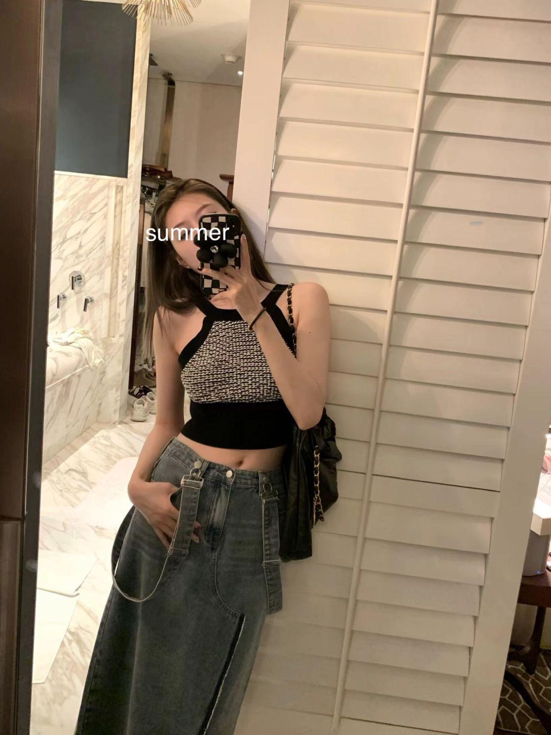 Camisola de punto halter para mujer 2025 verano nueva sexy para exterior sin mangas corta sexy sin espalda top moderno