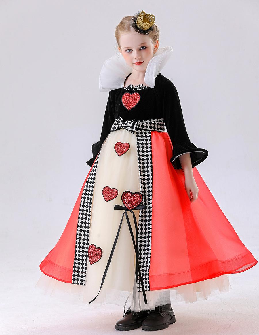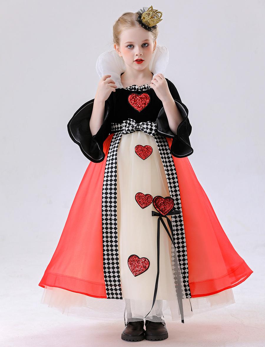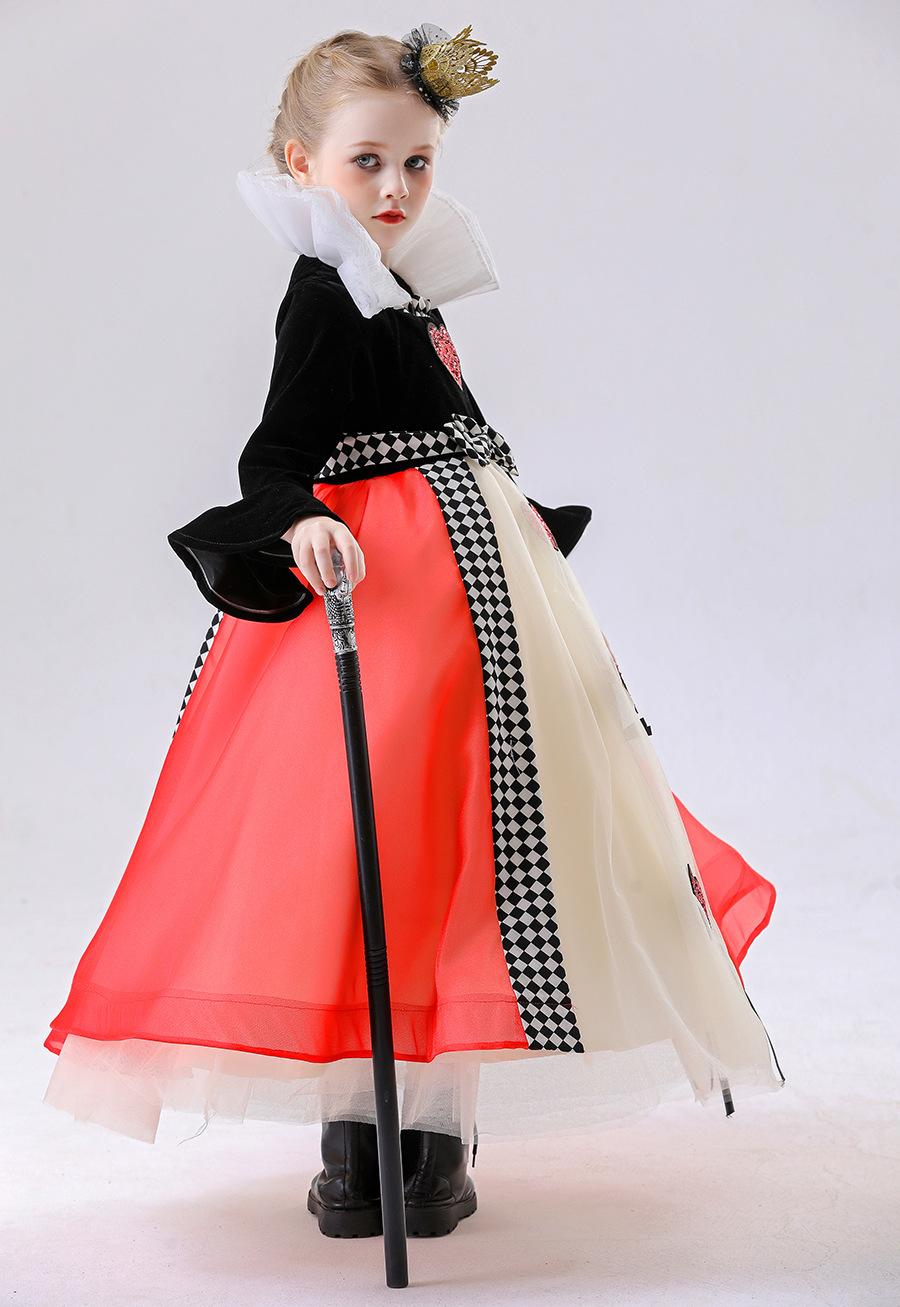 Disfraz de Halloween para Niños Rendimiento de Juego Alicia Reina de Corazones Rojos Retro Reina de Palacio Disfraz de Bruja