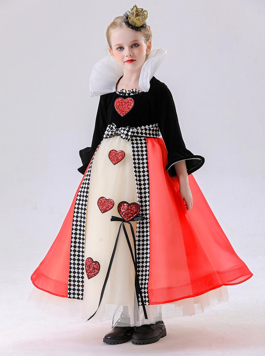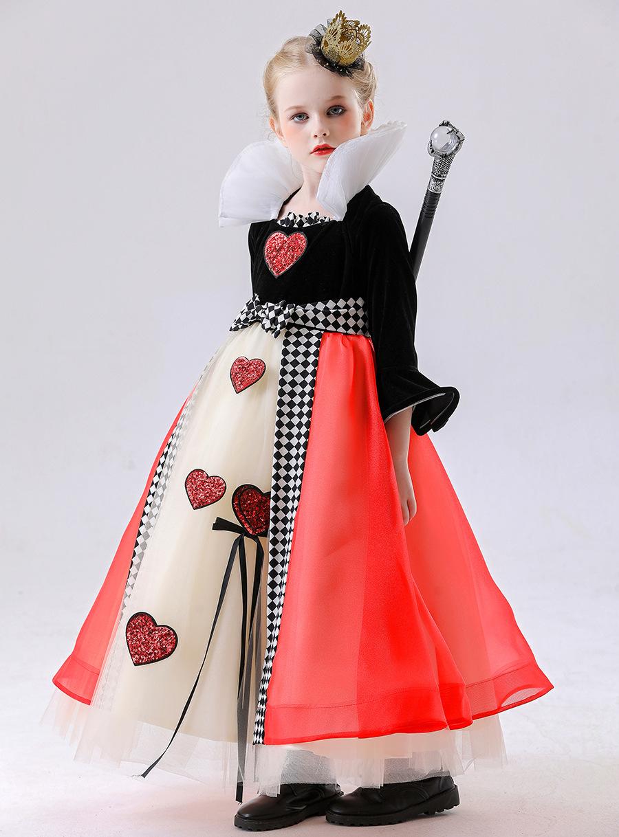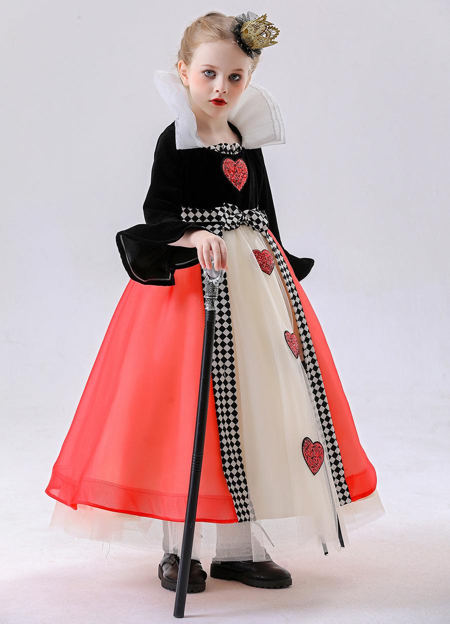 Disfraz de Halloween para Niños Rendimiento de Juego Alicia Reina de Corazones Rojos Retro Reina de Palacio Disfraz de Bruja