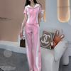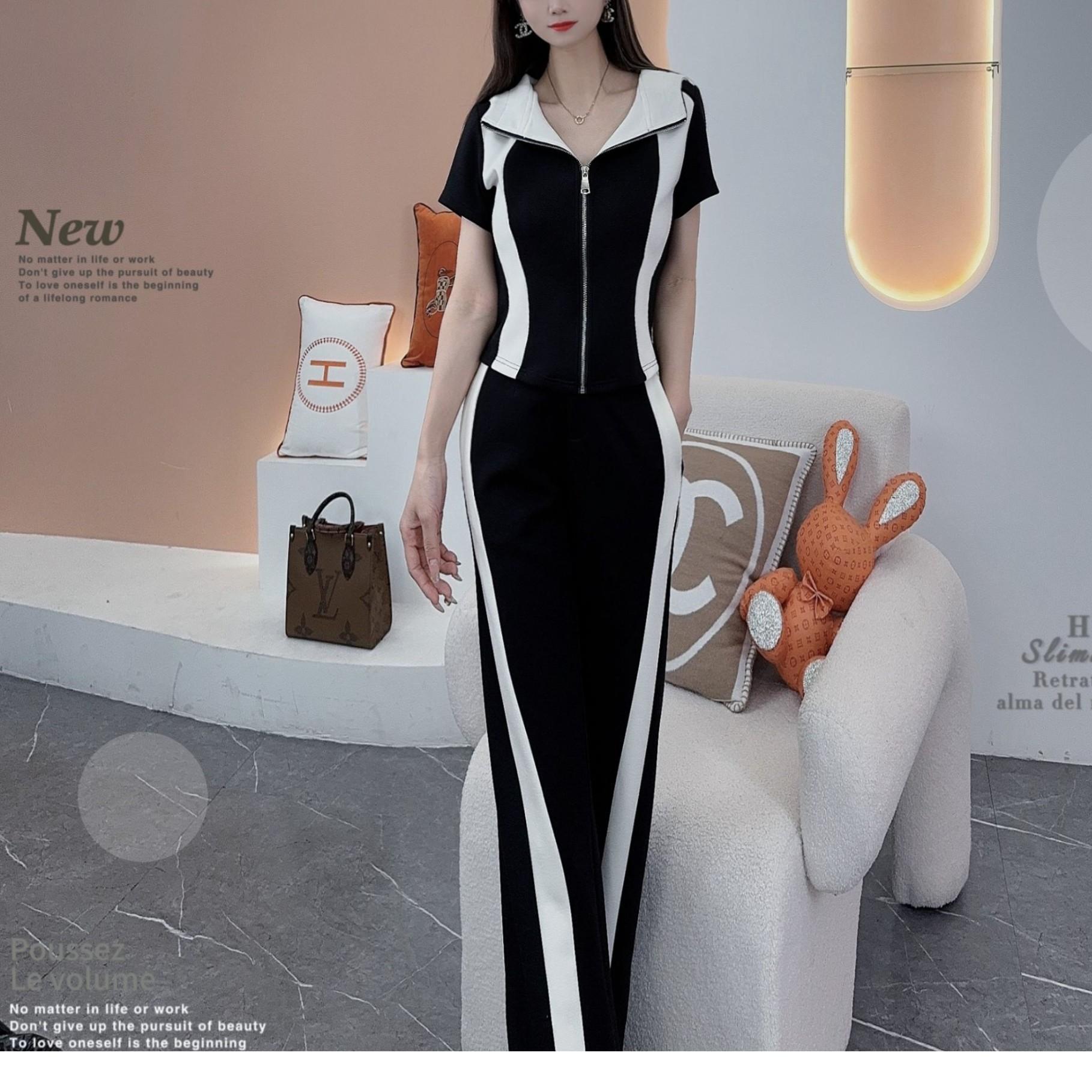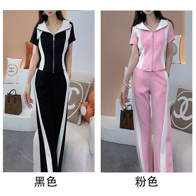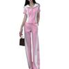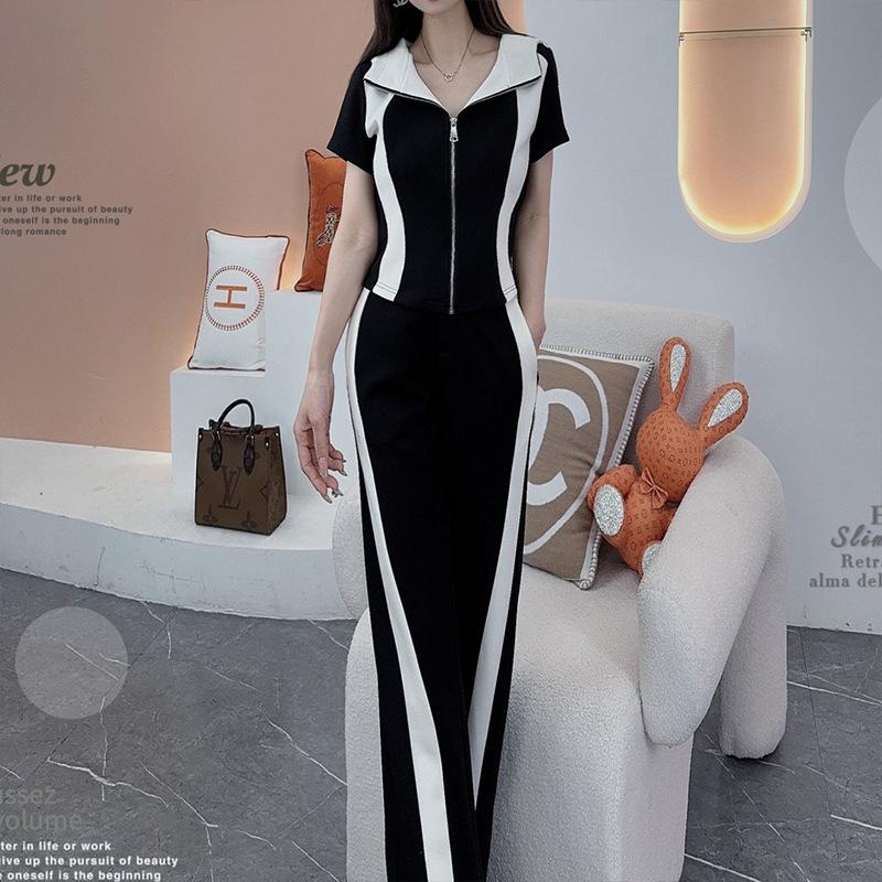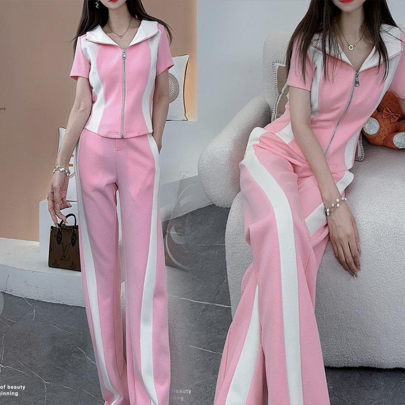 Conjunto deportivo e informal de dos piezas para mujer, estilo occidental, ajustado, de manga corta y pantalón recto, para verano de 2024