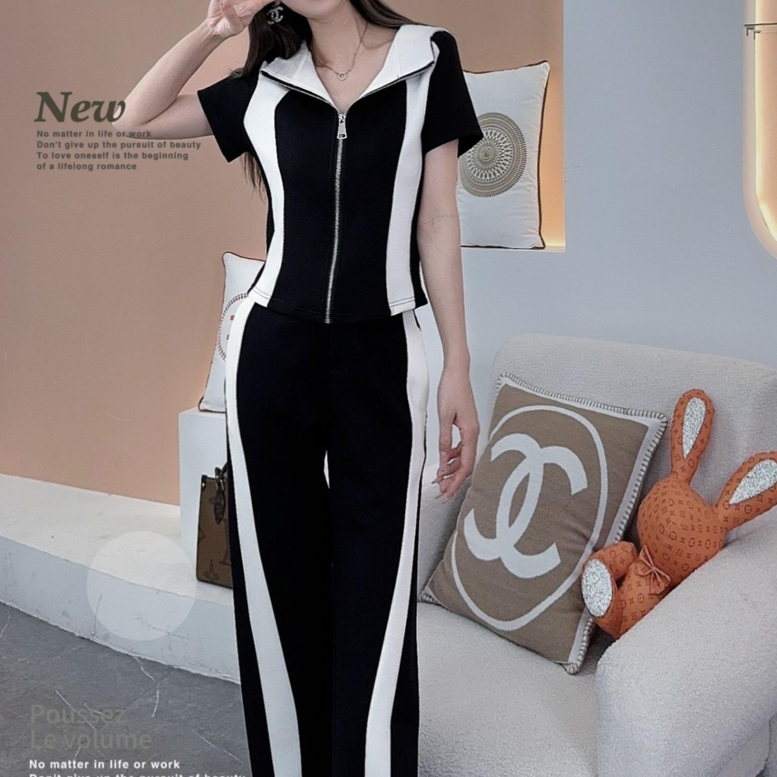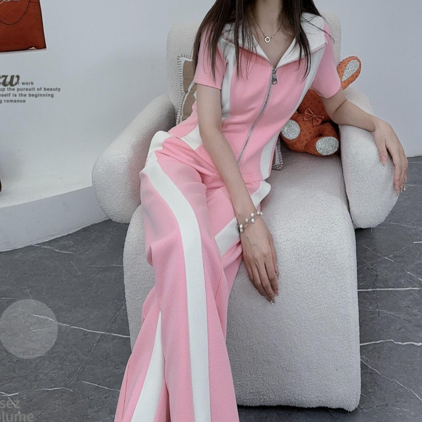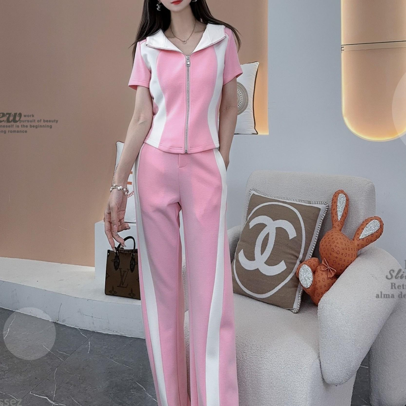 Conjunto deportivo e informal de dos piezas para mujer, estilo occidental, ajustado, de manga corta y pantalón recto, para verano de 2024