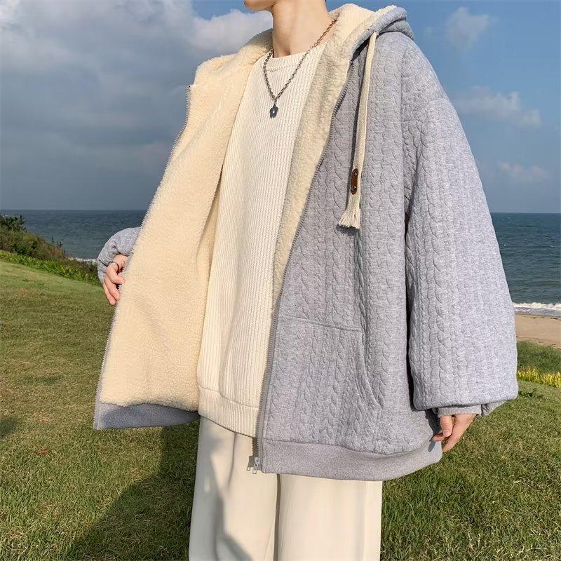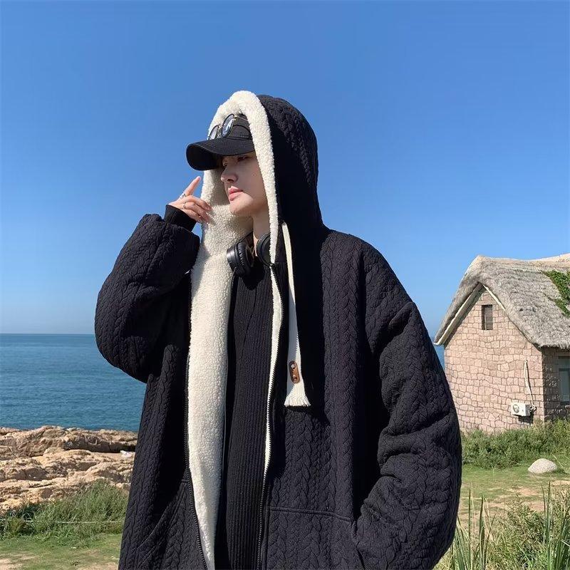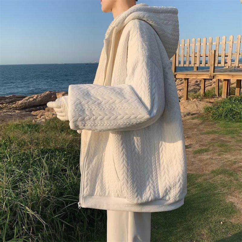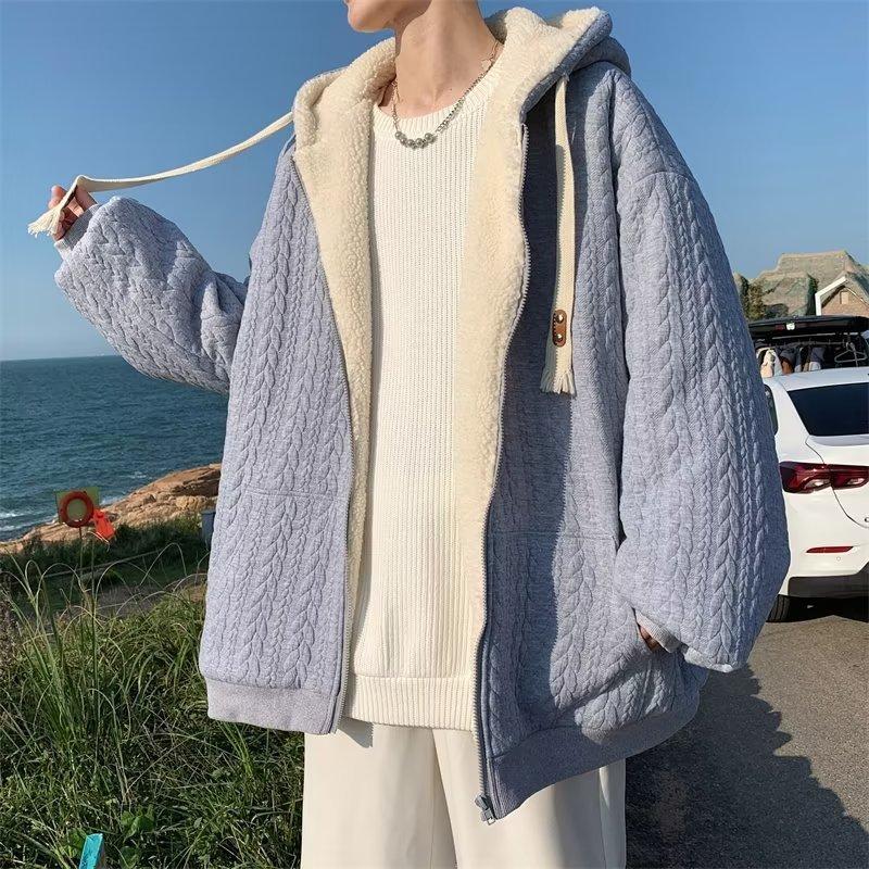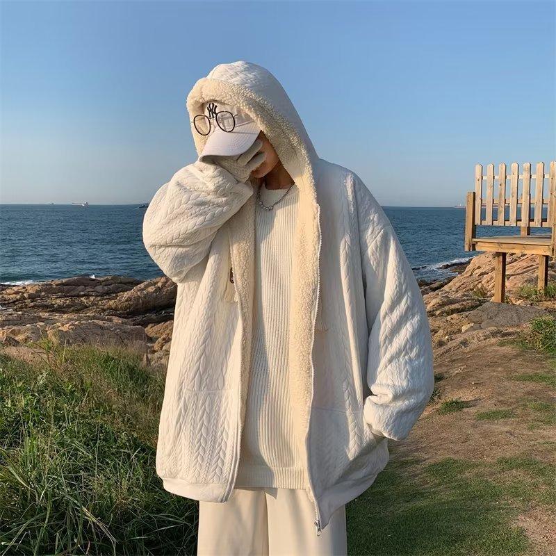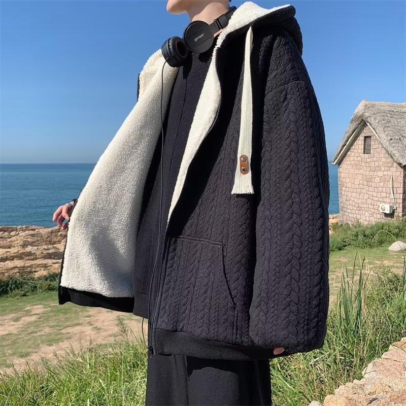Suéter de otoño e invierno de estilo nuevo para hombre, estilo coreano, marca de moda, holgado, con capucha, estilo americano, cárdigan informal de calle, ropa para hombre