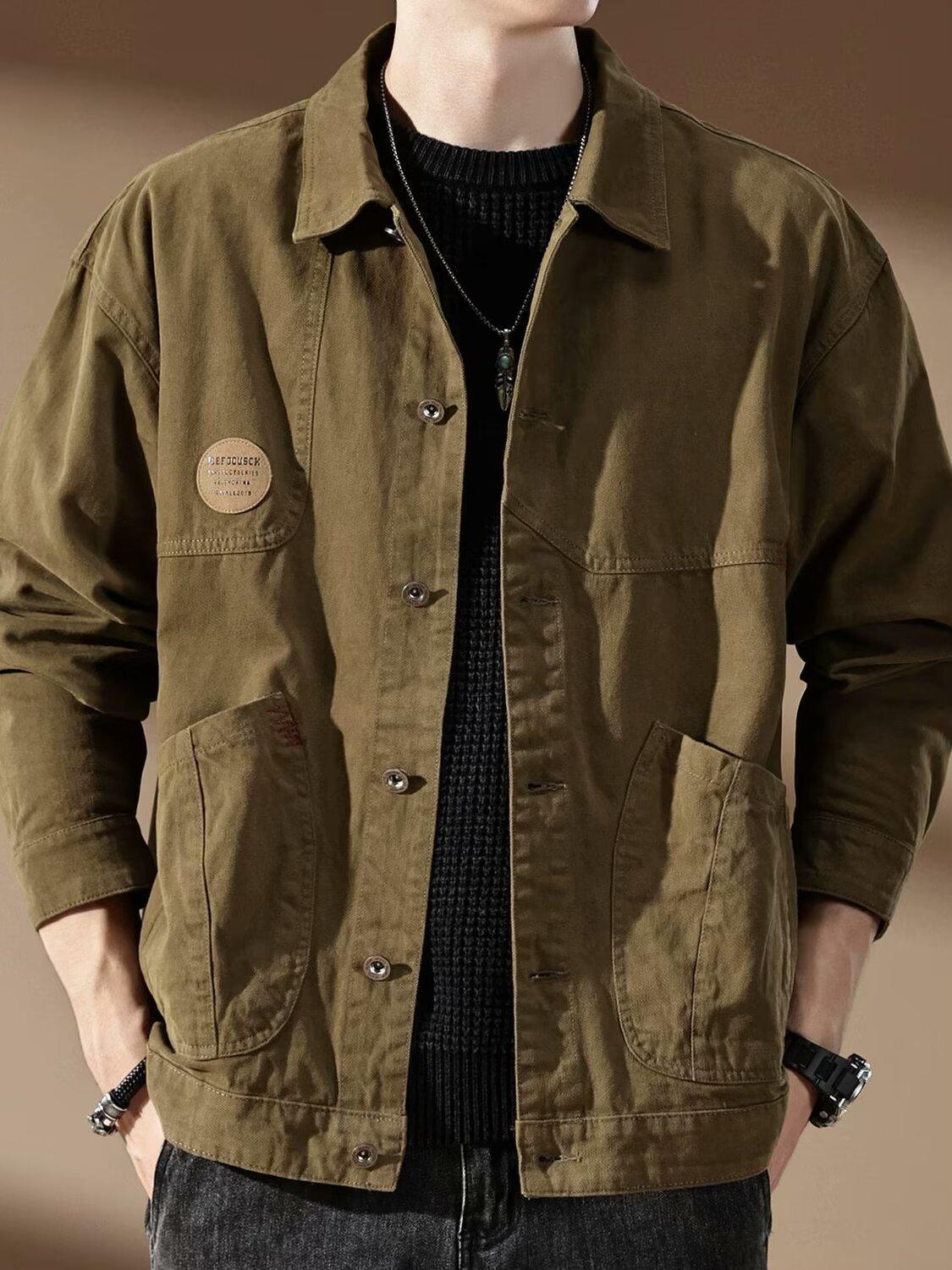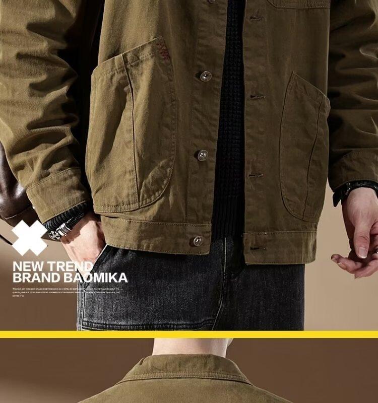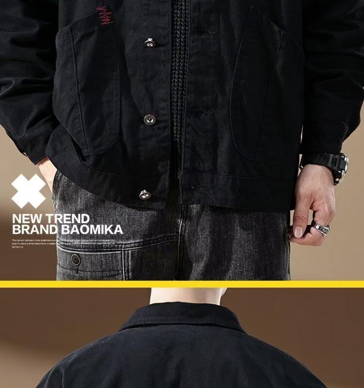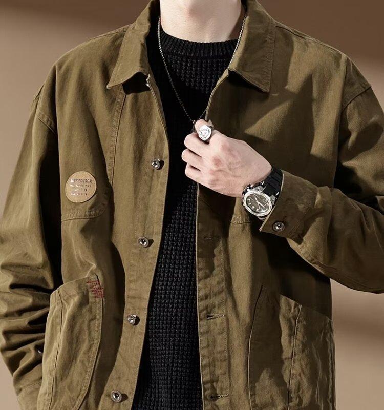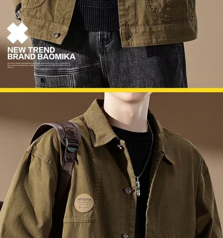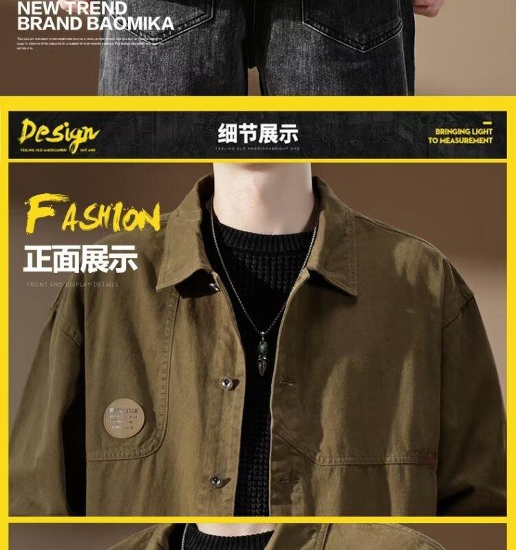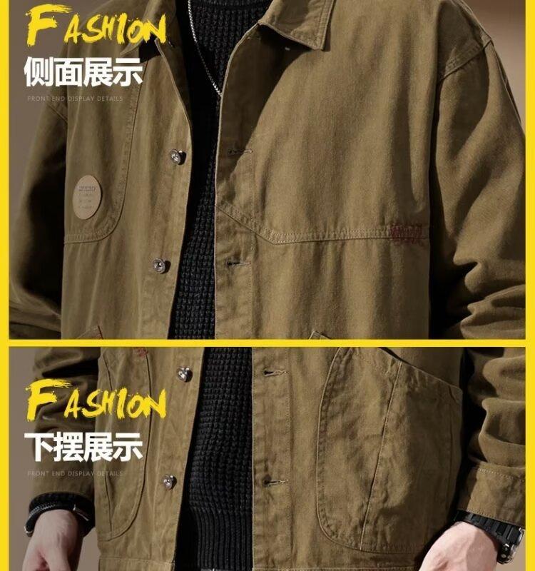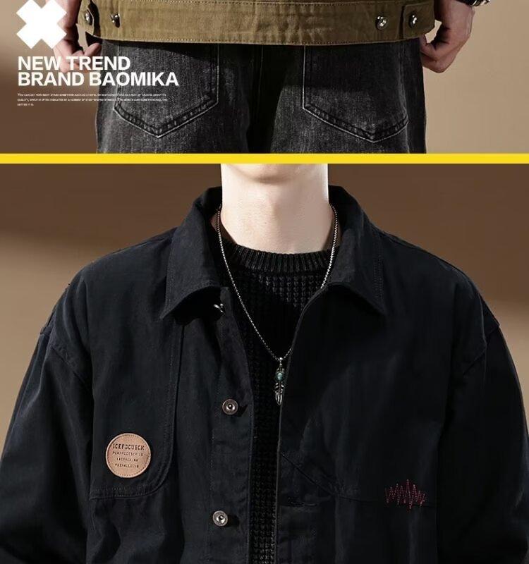 Sentido del Diseño Nicho Adolescente Cárdigan de Solapa de Manga Larga Chaqueta de Mezclilla Abrigo Retro Personalizado Moderno Yuppies Guapo Top
