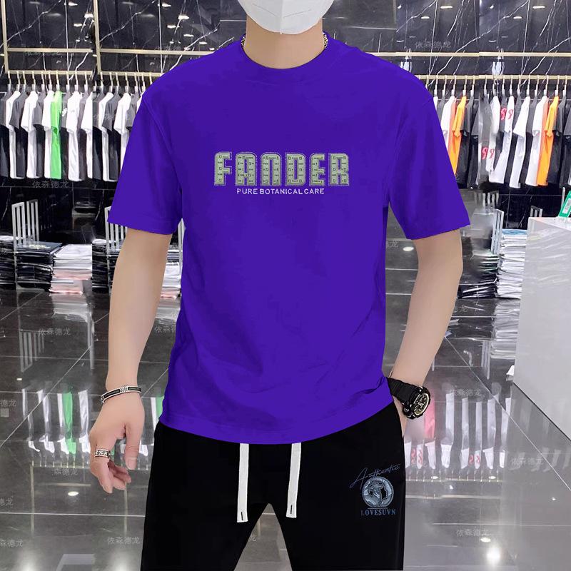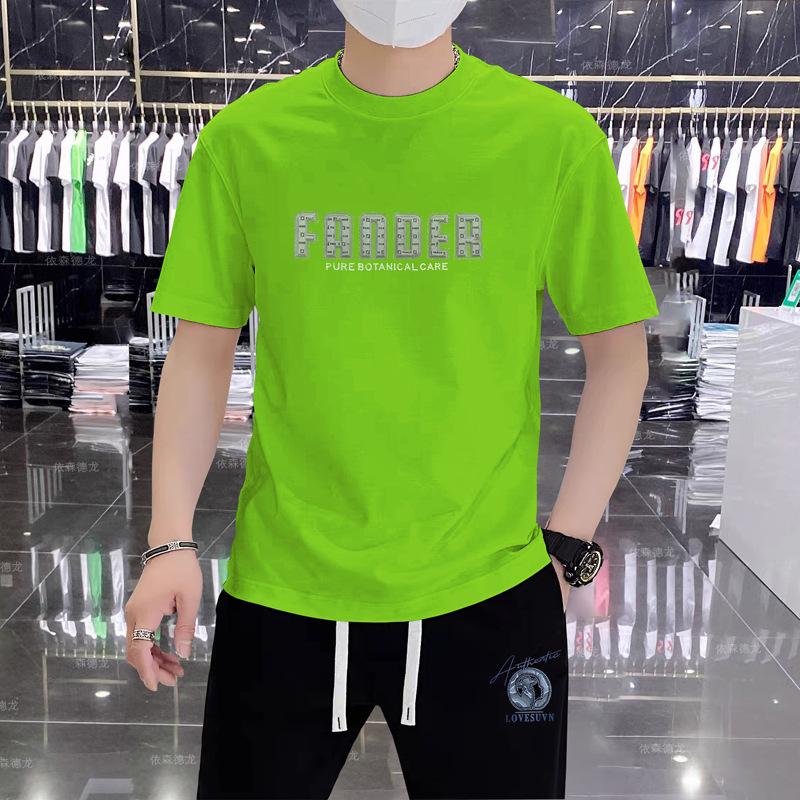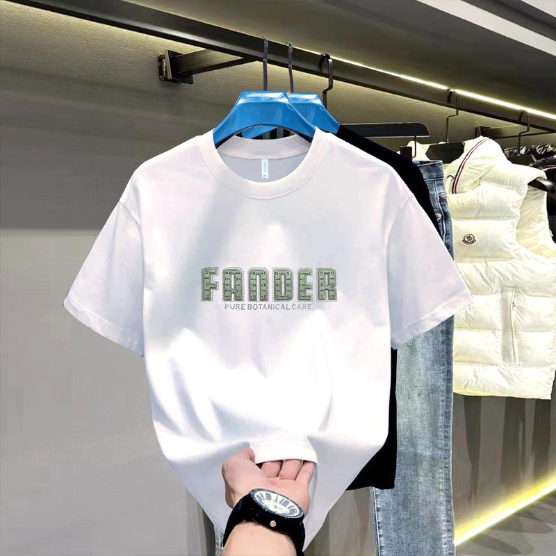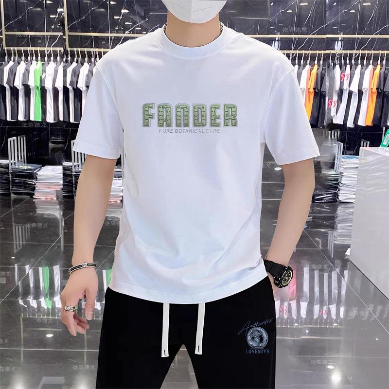 Camiseta de verano de algodón puro, holgada, de cuello redondo y manga corta para hombre, transpirable, moderna, informal, con relieve