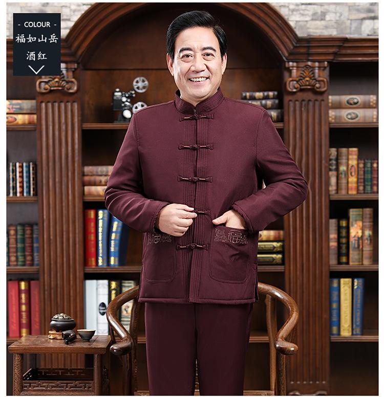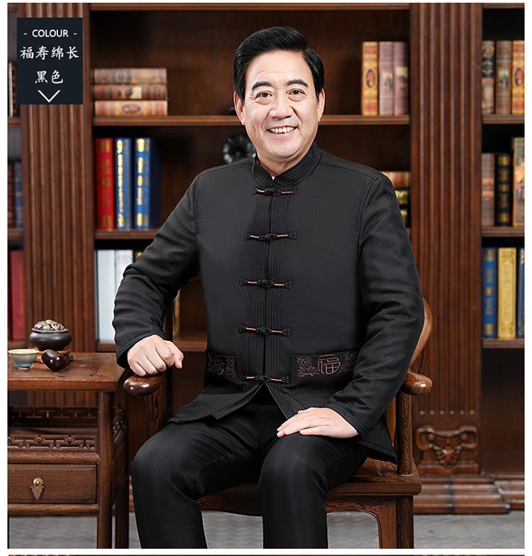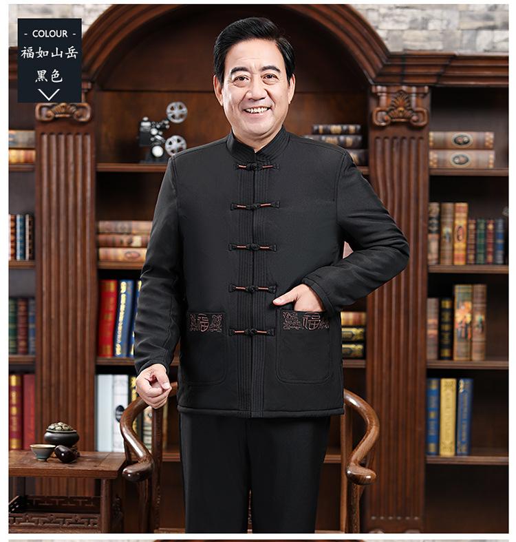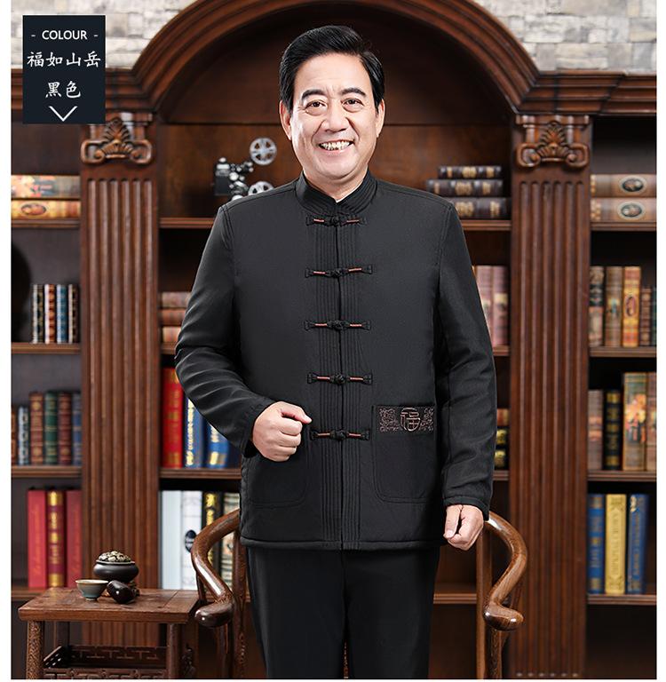 Abrigo Tang para hombre acolchado de algodón para papá de mediana edad y anciano, traje de talla grande para otoño e invierno, forrado de vellón, abrigo grueso, abrigo acolchado de algodón para abuelo