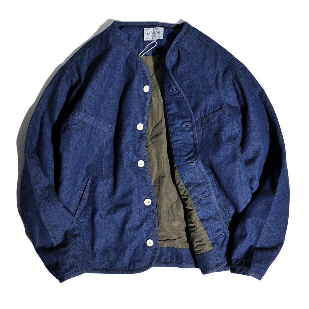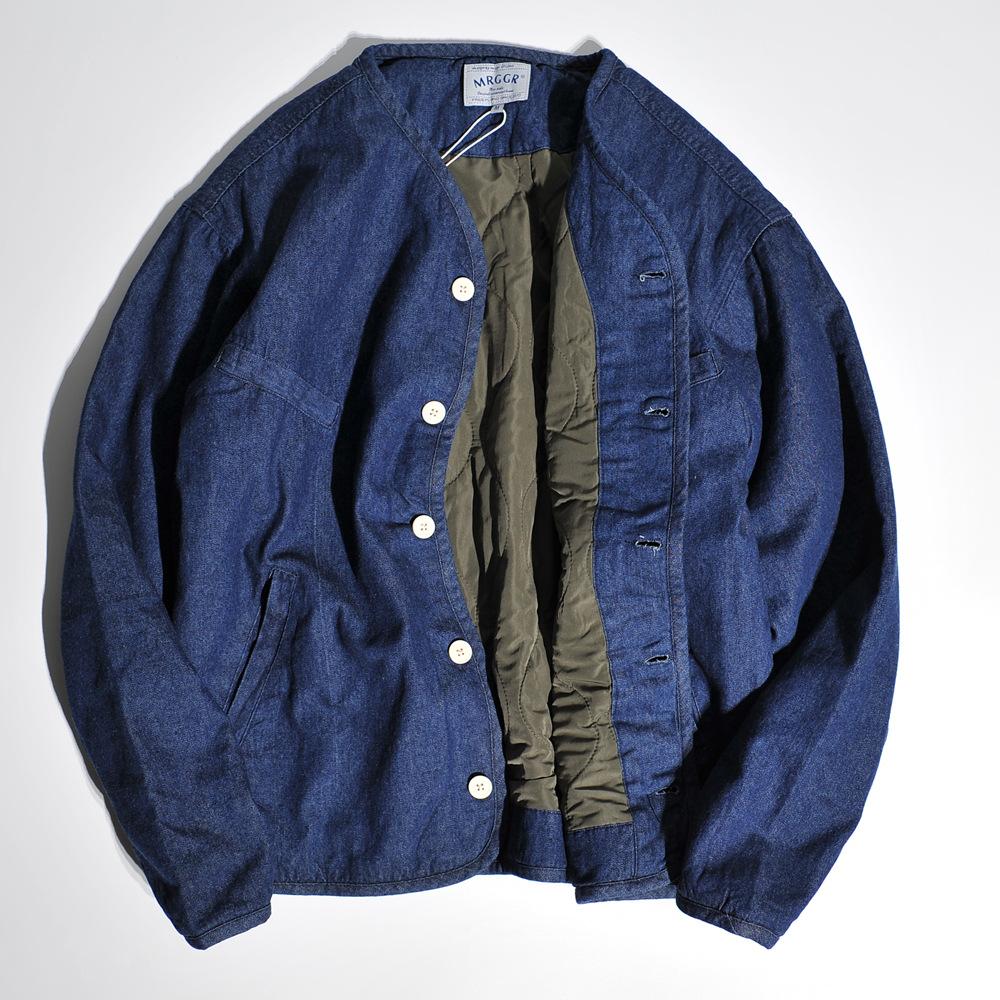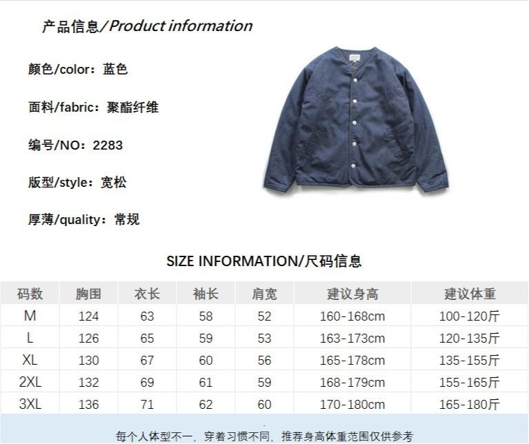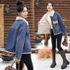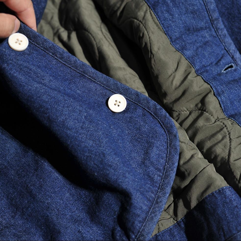 Abrigo Acolchado de Algodón Denim Vintage Invierno 2024 Sin Cuello Unisex Combinable Moda Abrigo Grueso Estilo Japonés Holgado Chaqueta Vintage Moderna