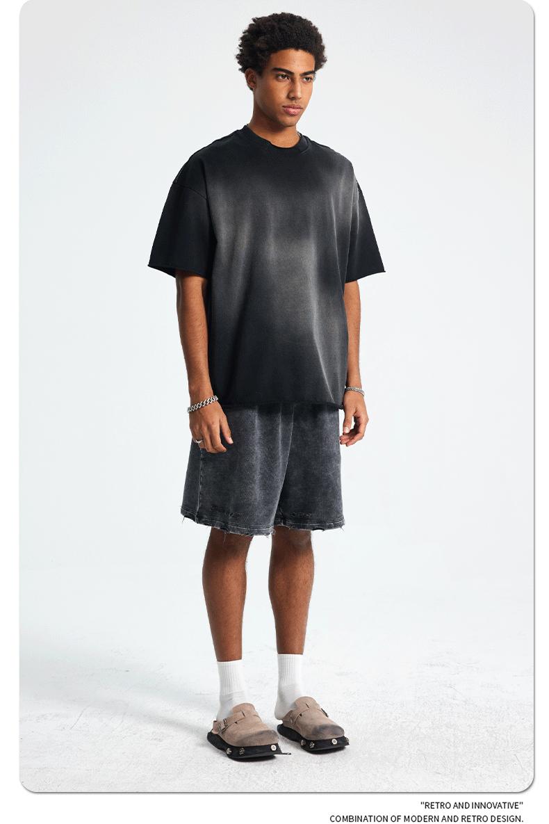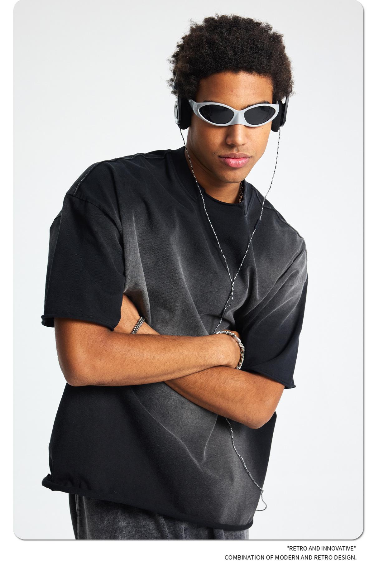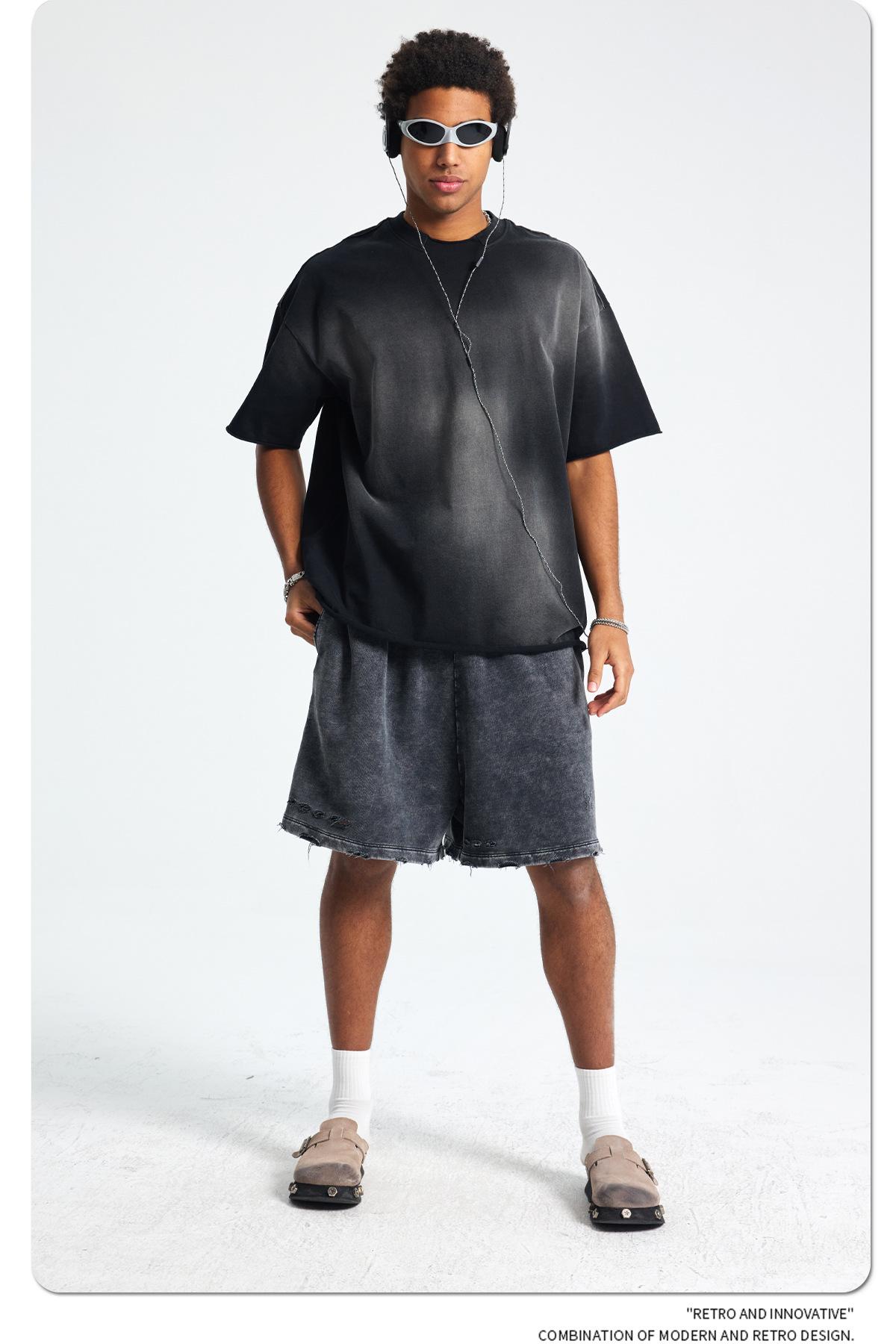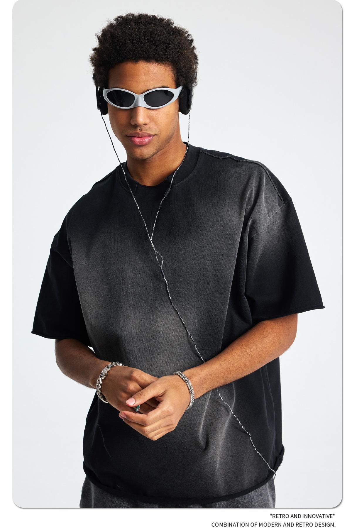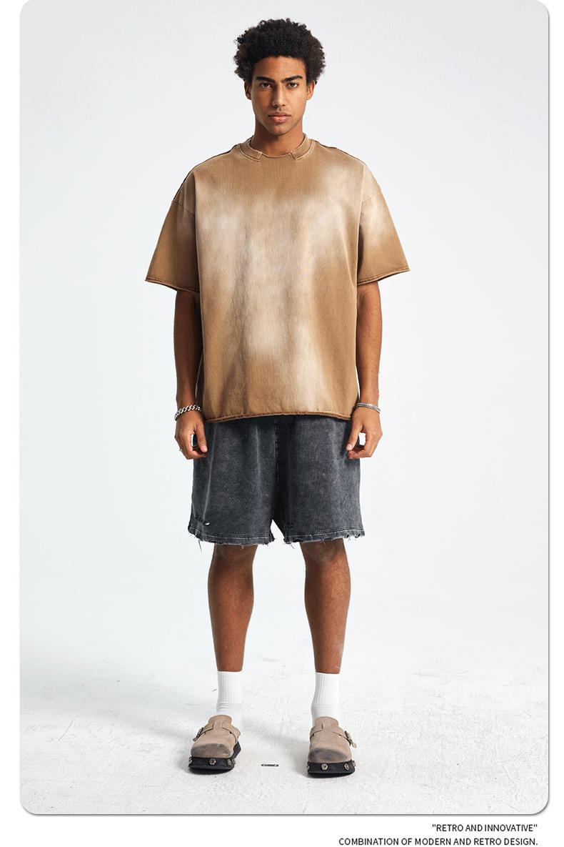 ARTIE - Camiseta de manga corta para hombre, estilo retro, con cuello roto y bordes dispersos, estilo americano, 2025