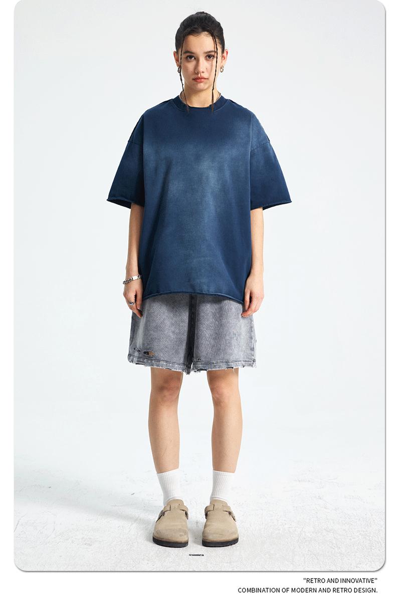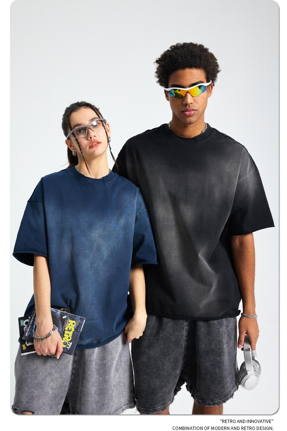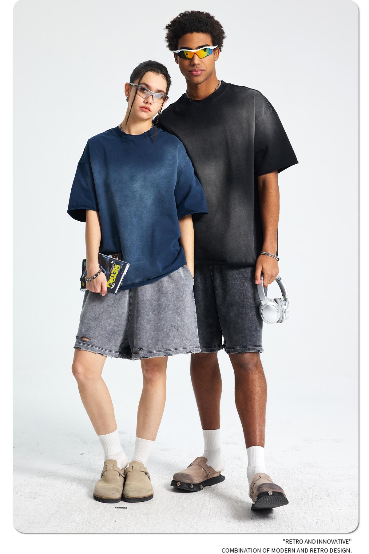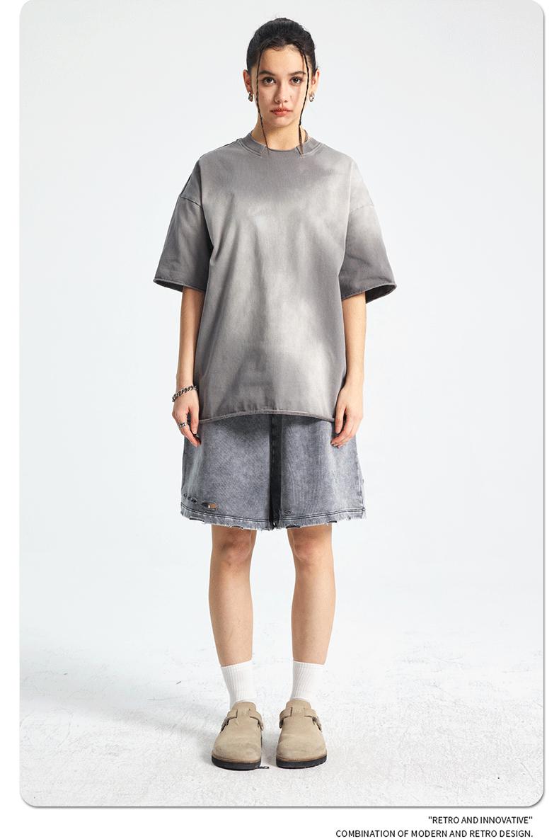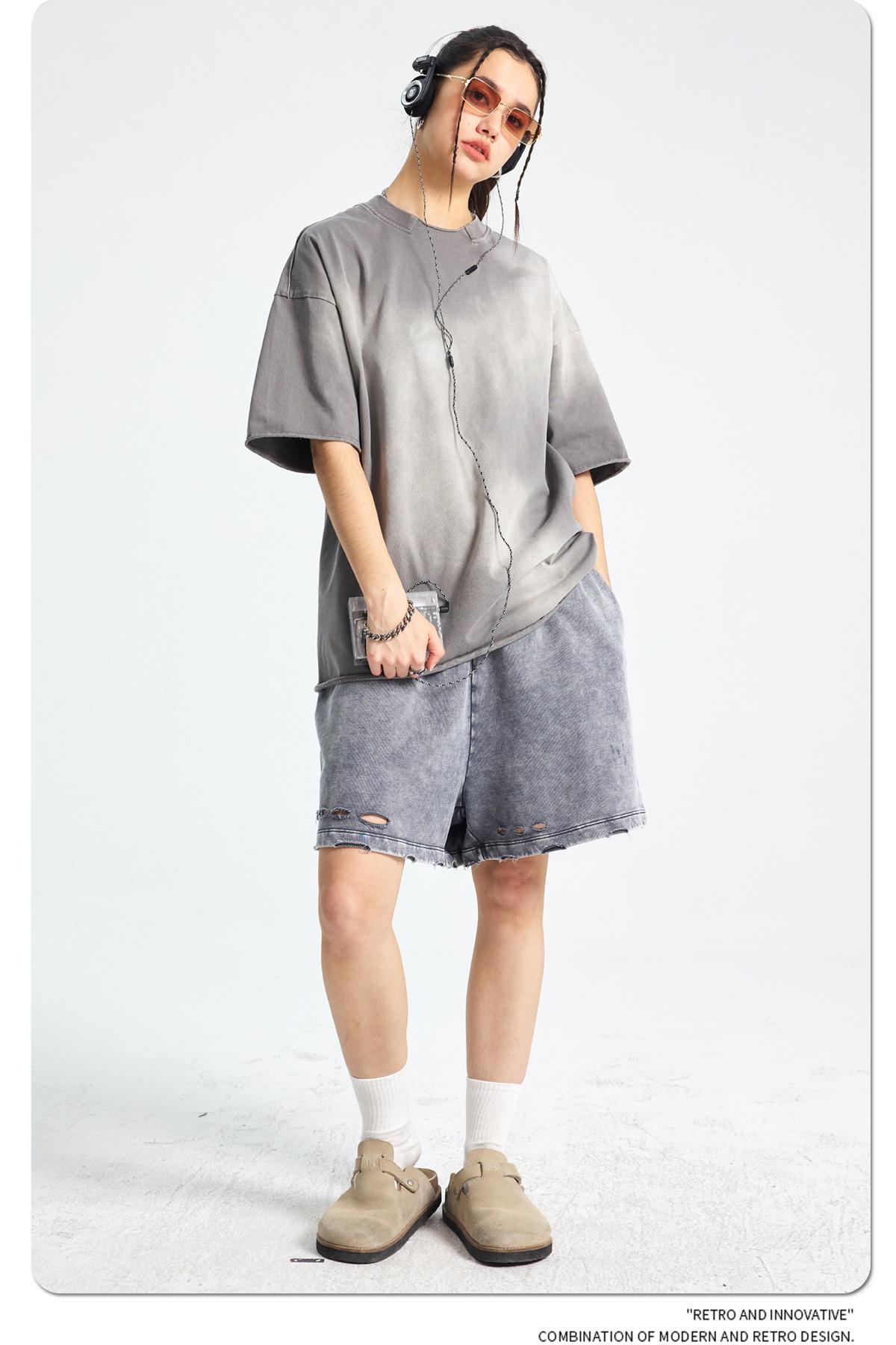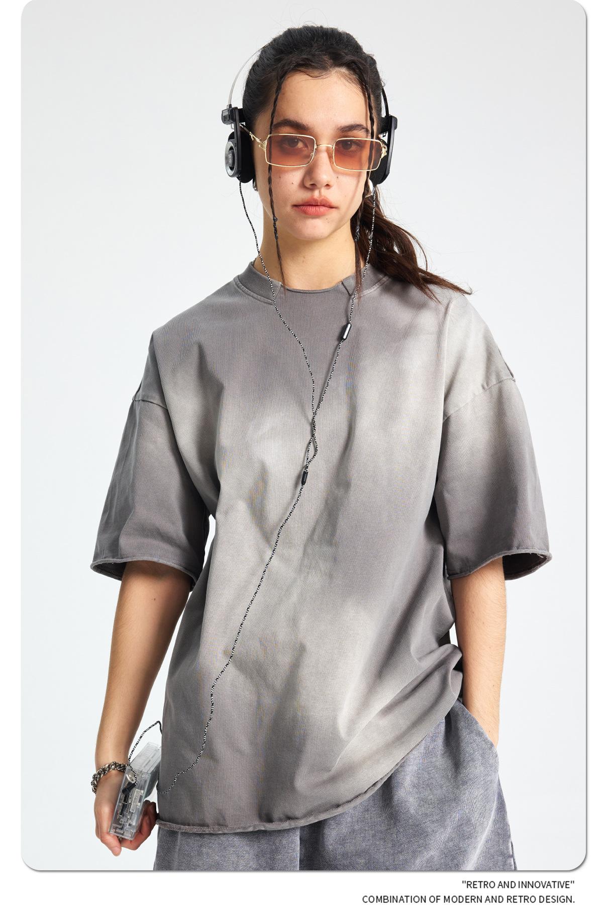 ARTIE - Camiseta de manga corta para hombre, estilo retro, con cuello roto y bordes dispersos, estilo americano, 2025