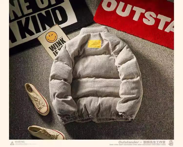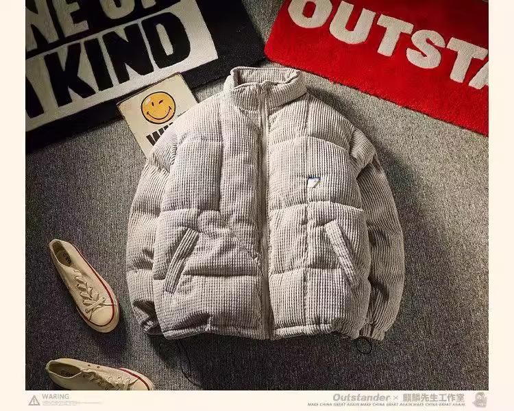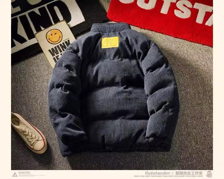Abrigo de invierno nuevo japonés retro holgado con cuello de pana para hombre y mujer, chaqueta gruesa de algodón acolchado