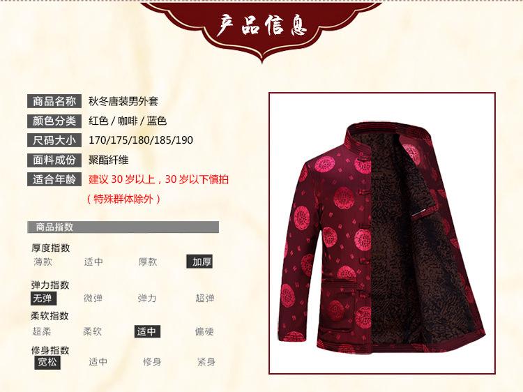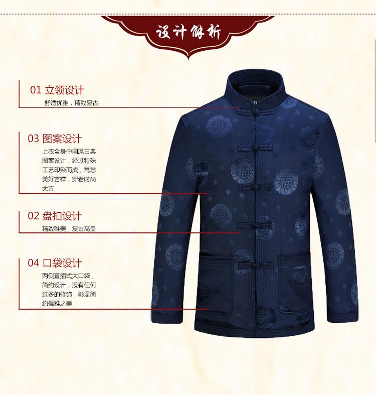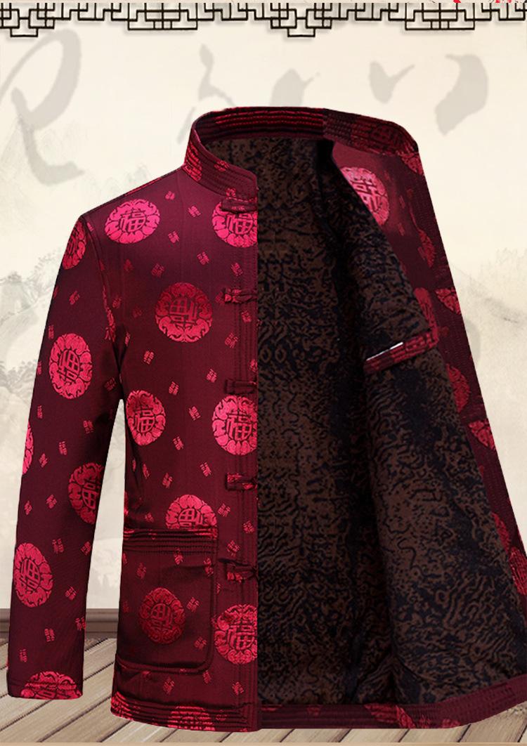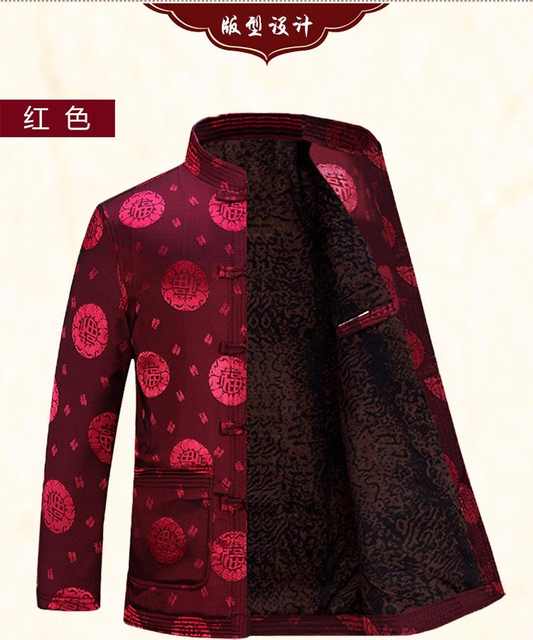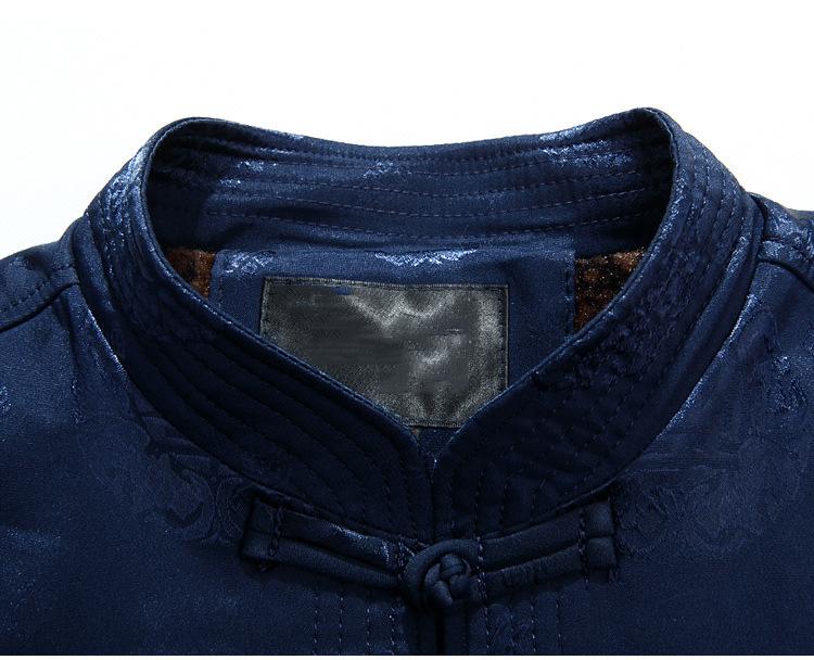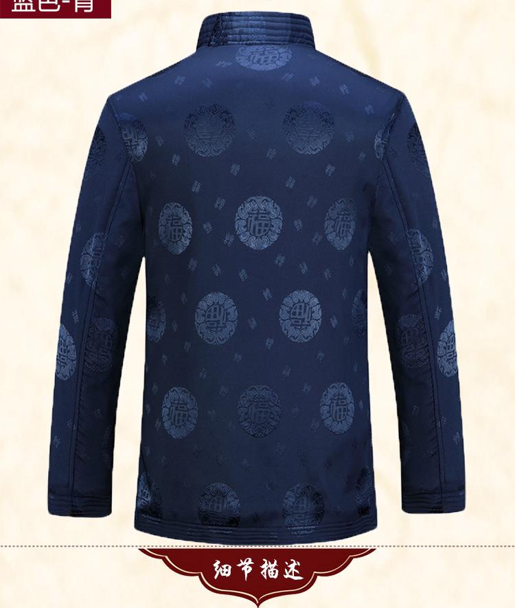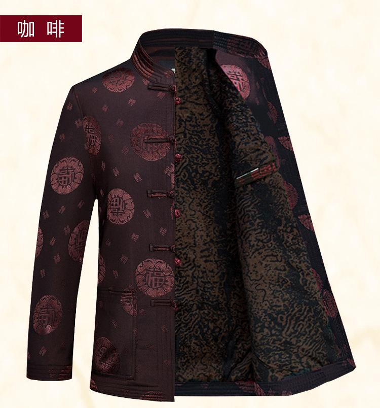Traje Tang de Otoño e Invierno para Hombre Chaqueta Gruesa con Forro Polar para Personas de Mediana Edad y Ancianas Chaqueta Cálida Acolchada de Algodón Top Chaqueta Acolchada de Algodón para Papá Estilo Chino