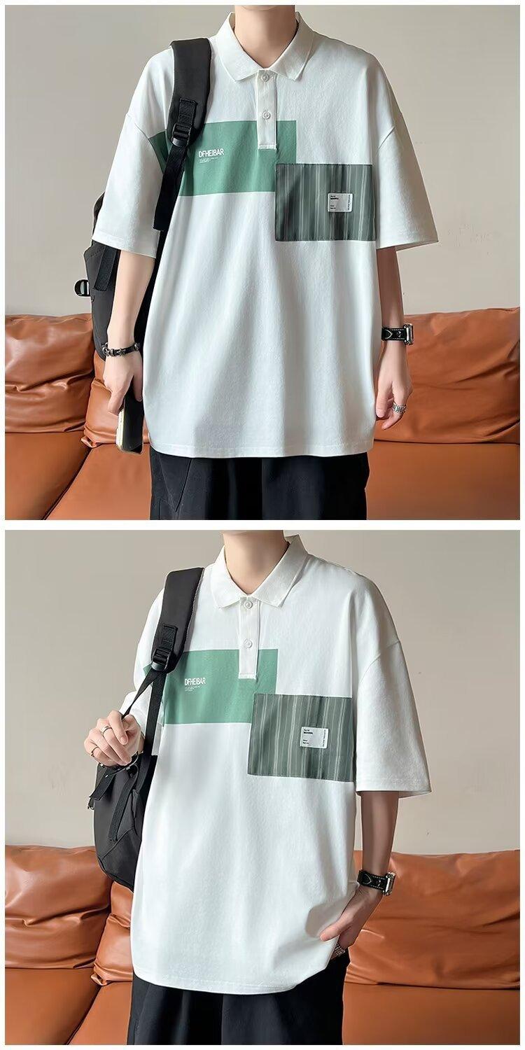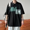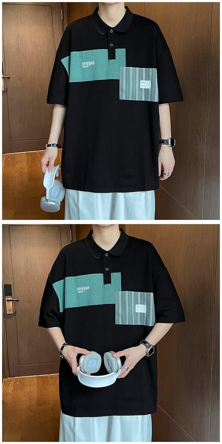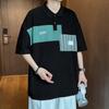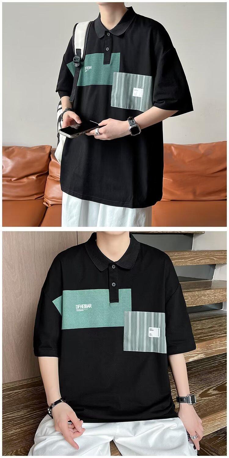 Polo de manga corta con contraste de color para hombre, camiseta de verano a la moda con solapas y costuras, estilo coreano, holgada e informal.