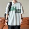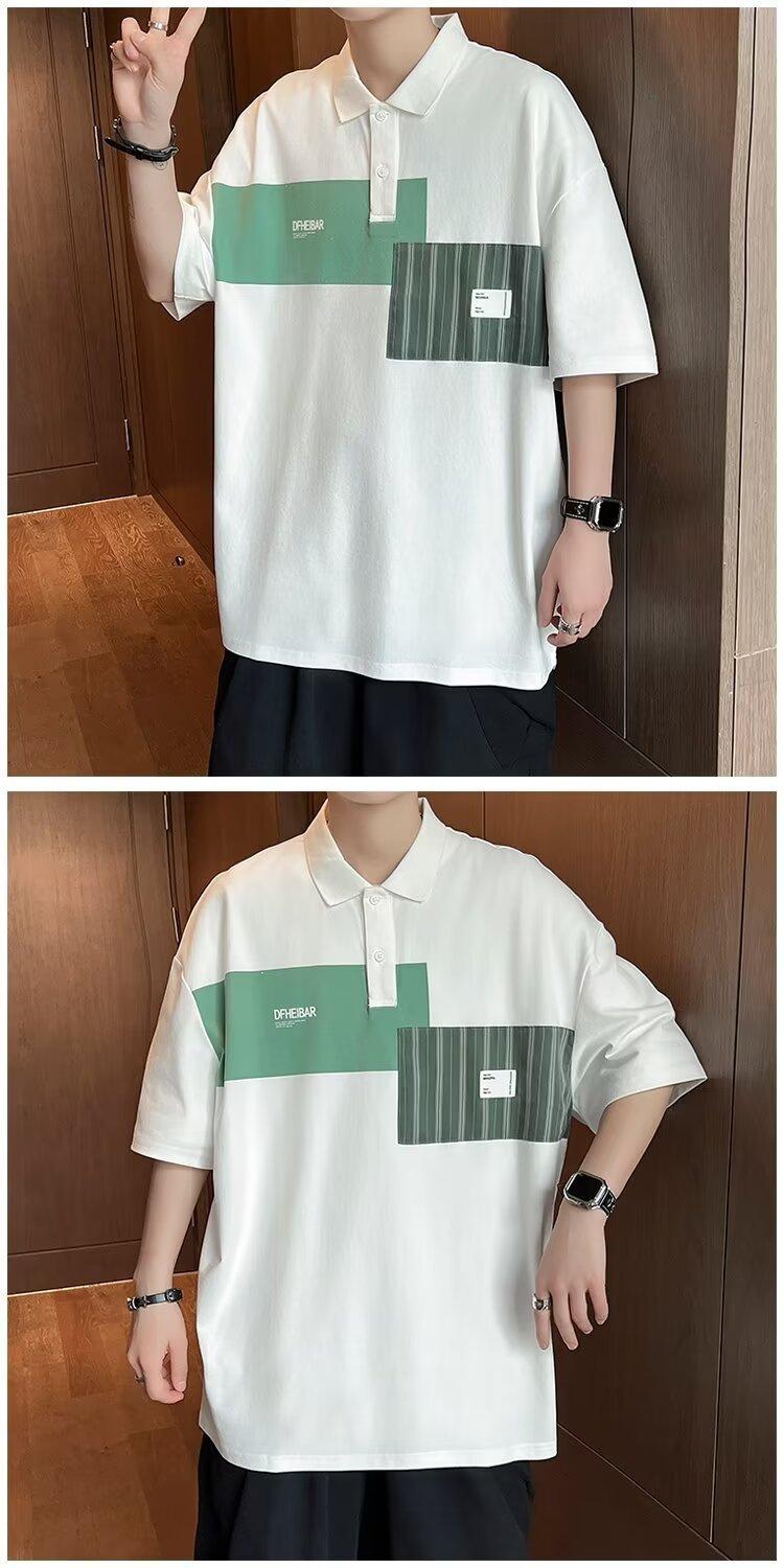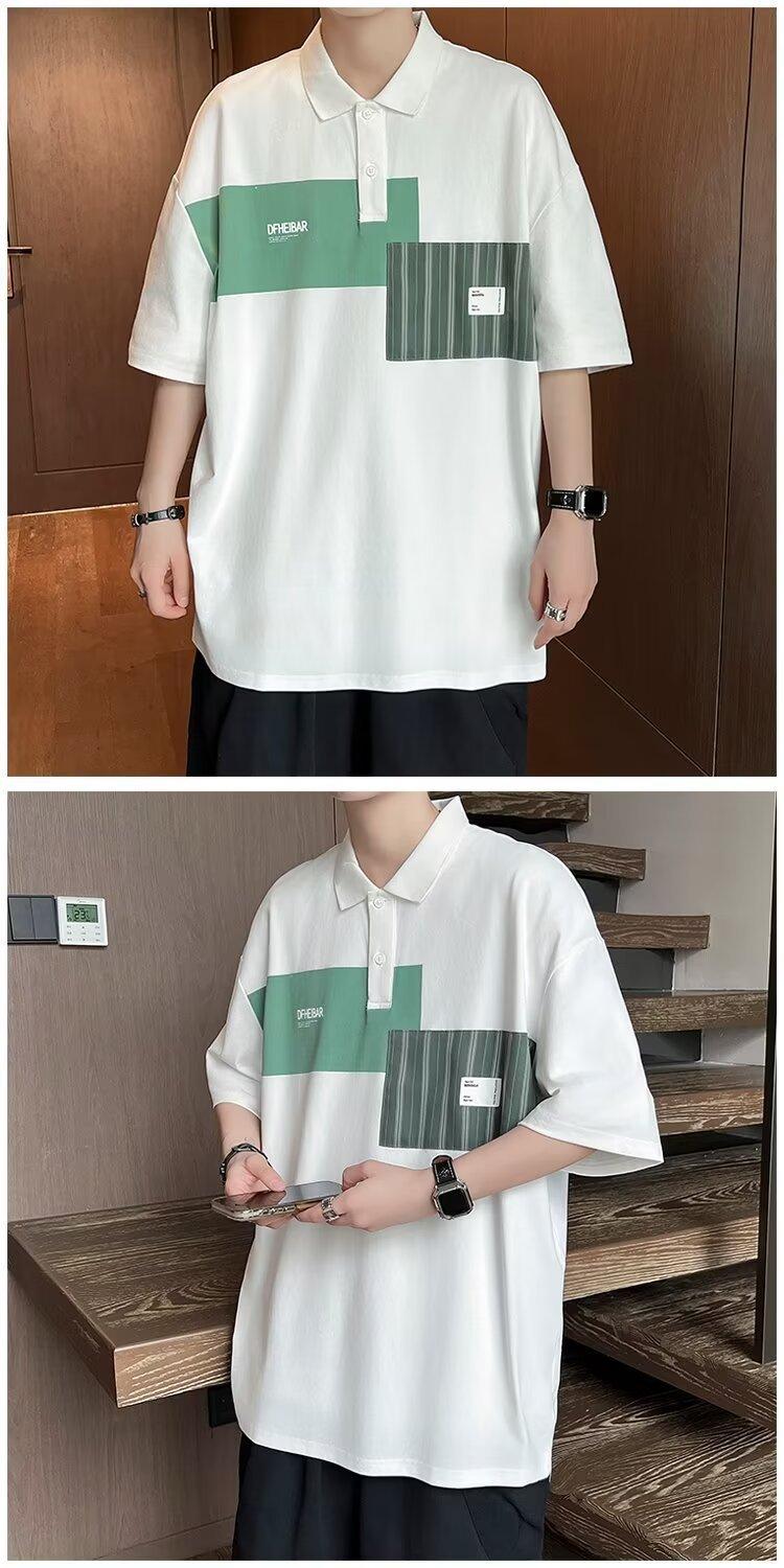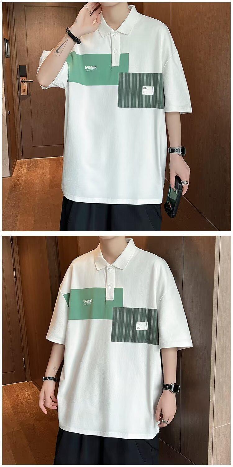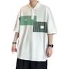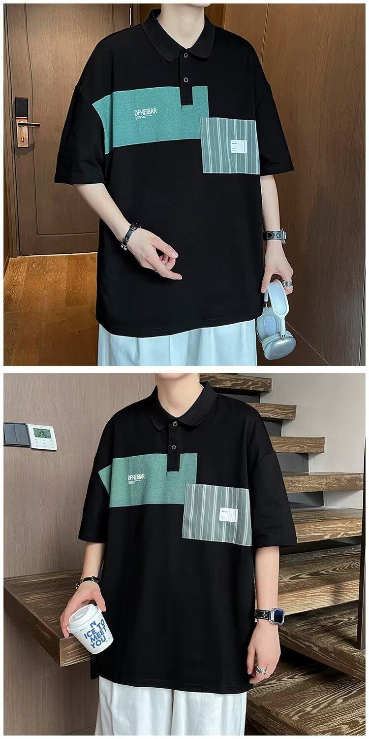 Polo de manga corta con contraste de color para hombre, camiseta de verano a la moda con solapas y costuras, estilo coreano, holgada e informal.