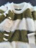 Suéter Casual de Piel de Visón de Calidad Superior, Diseño Estilo Japonés, Cuello Redondo, Tejido Holgado, Prendas de Punto Rayadas Estilo Coreano para Otoño e Invierno