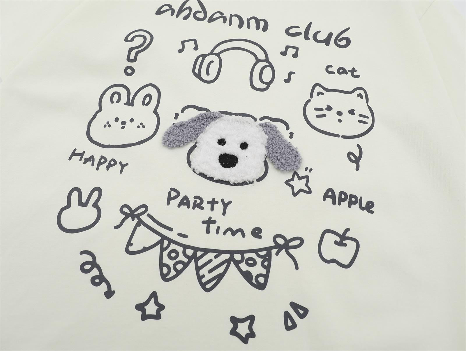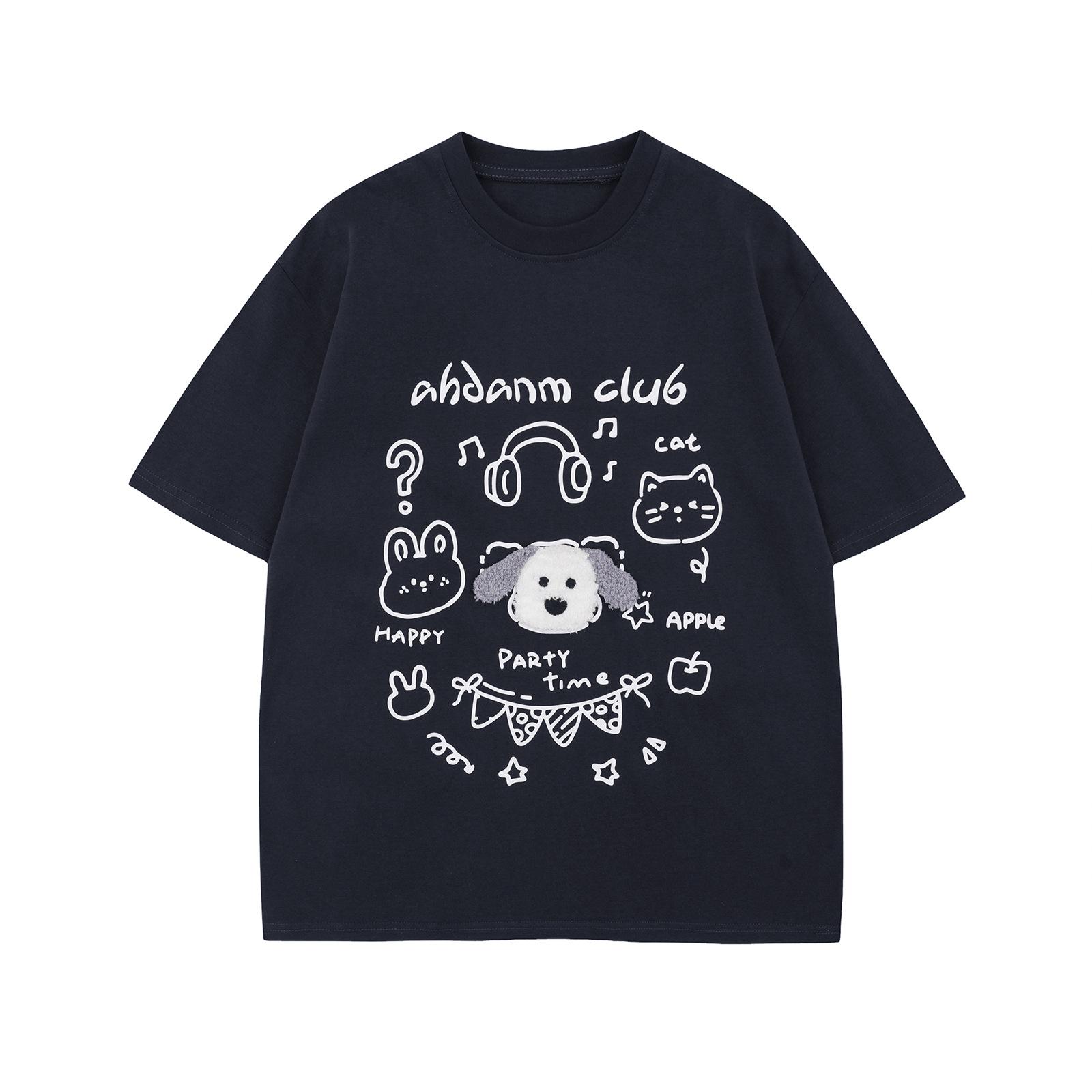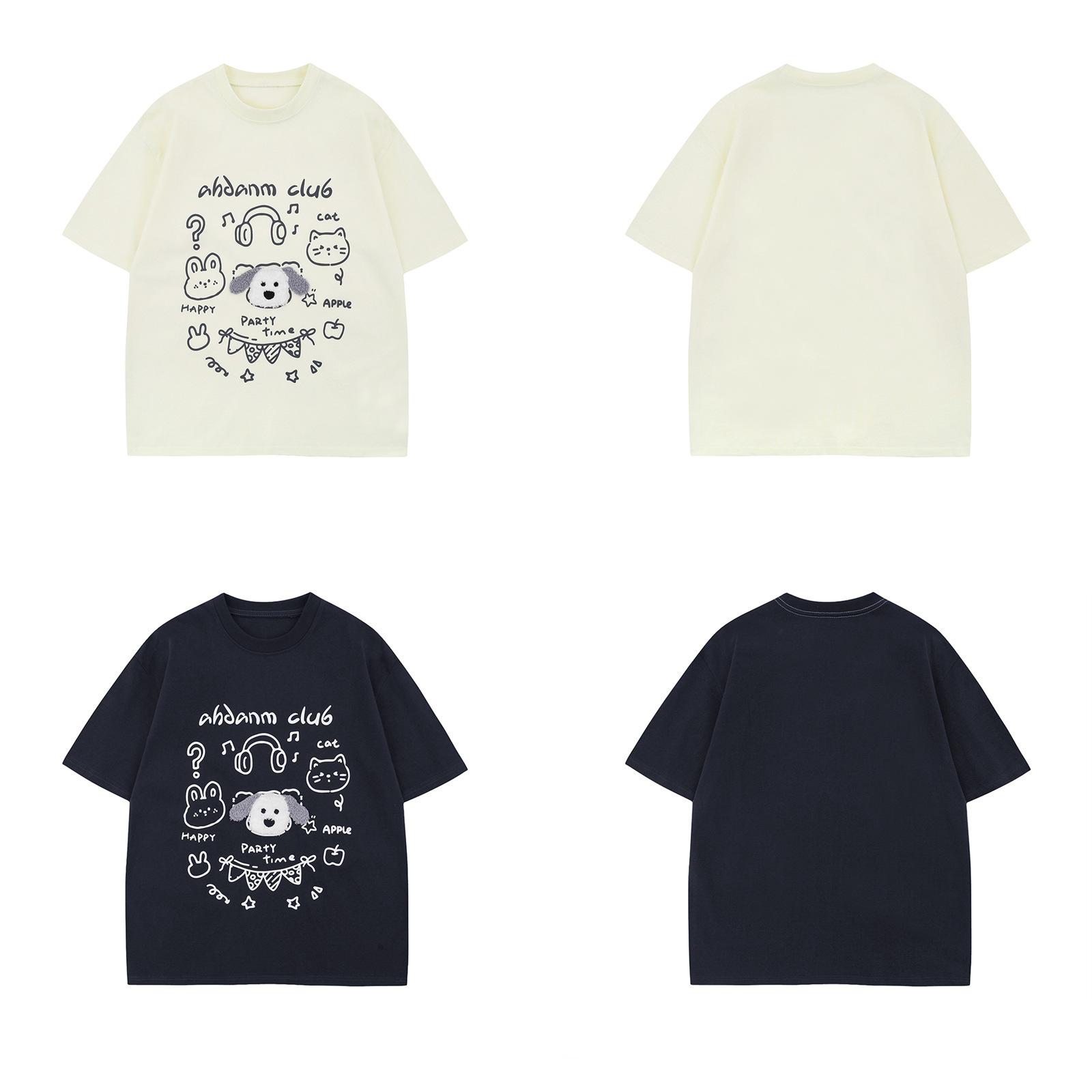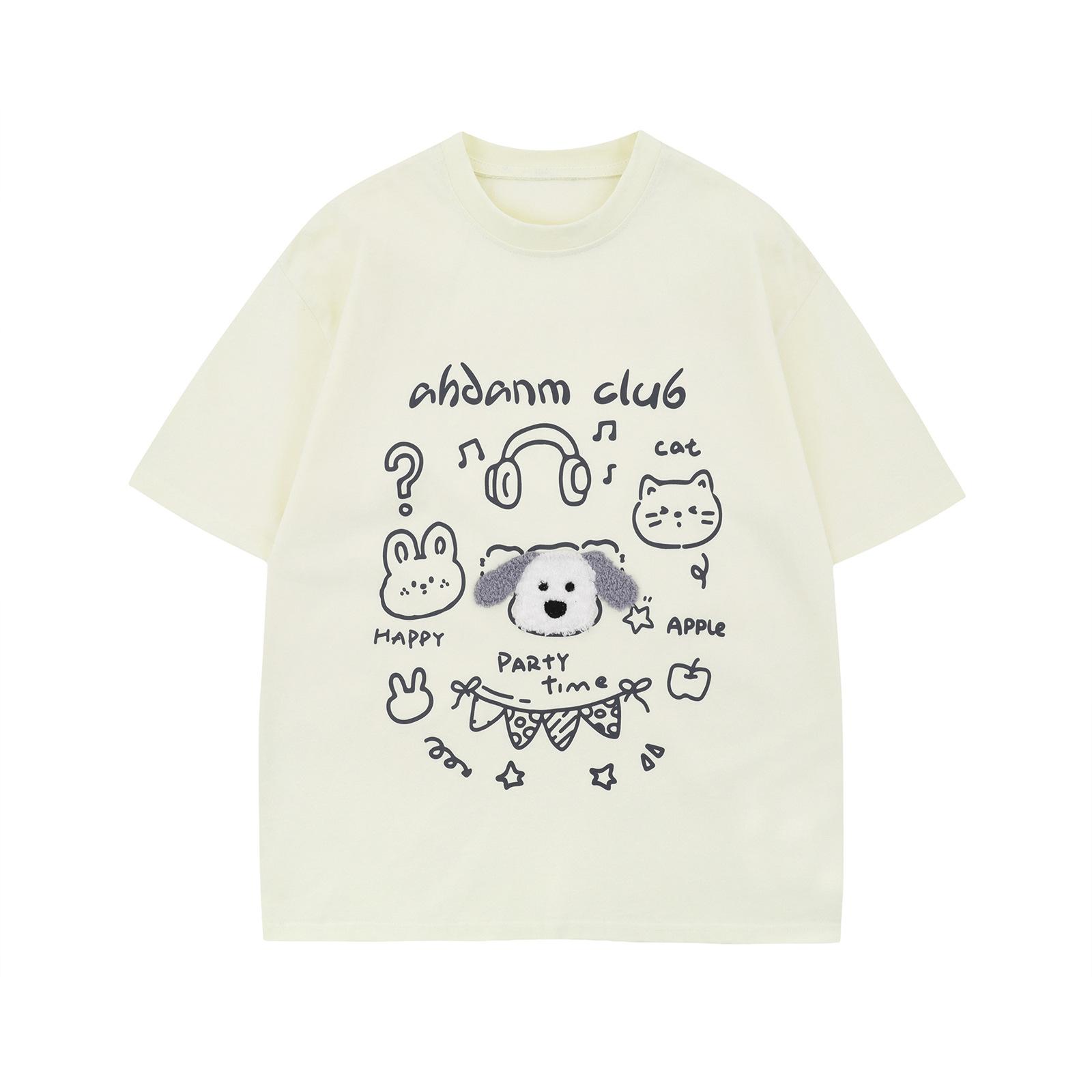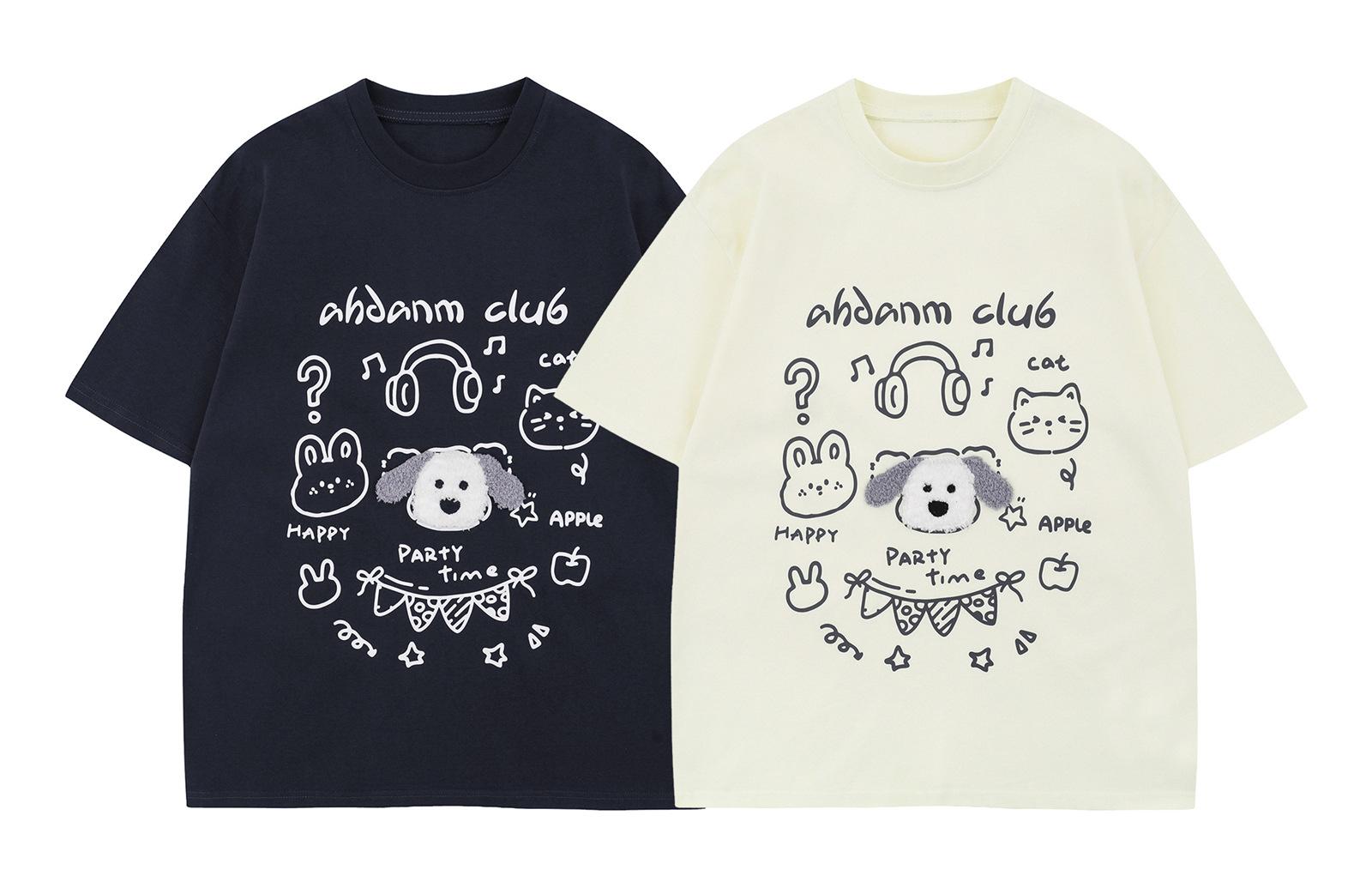Camiseta de manga corta de algodón con estampado de cachorro de peluche retro estilo americano para hombre y mujer, top holgado informal de verano 2025 para parejas