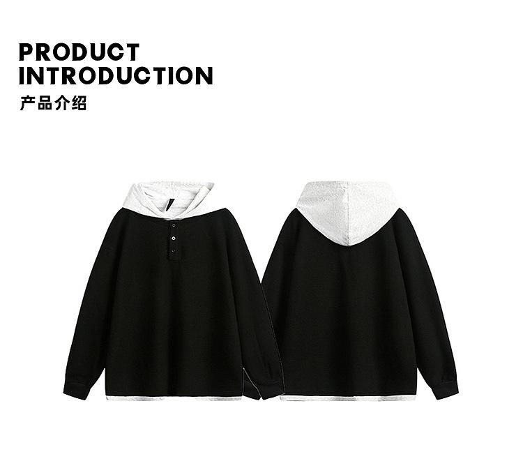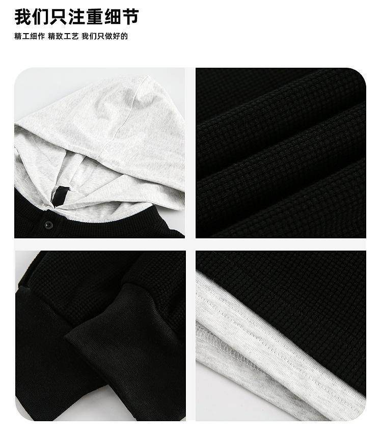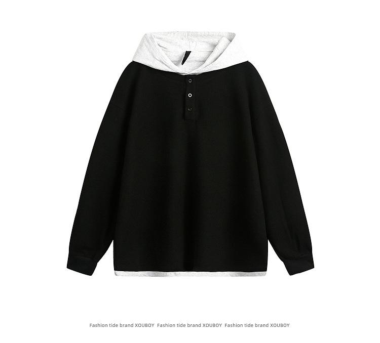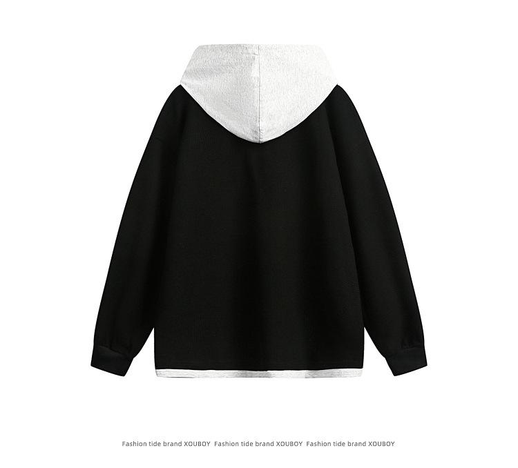 Ropa Americana Retro Falso Camiseta con Capucha de Dos Piezas con Bloques de Color para Hombre y Mujer Chaqueta con Capucha de Color Sólido para Parejas Primavera