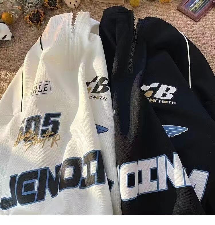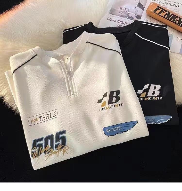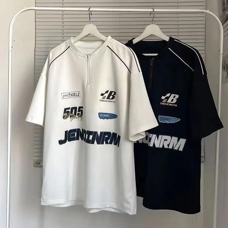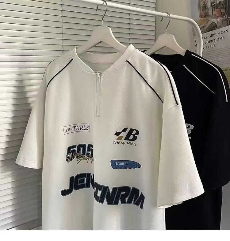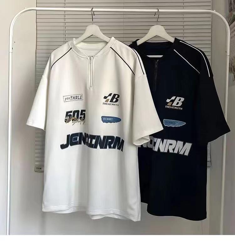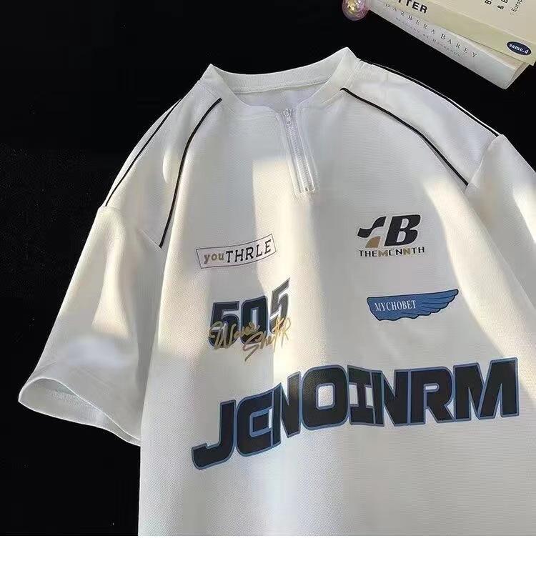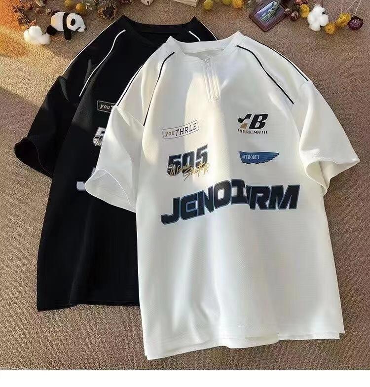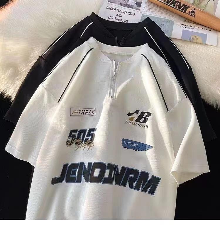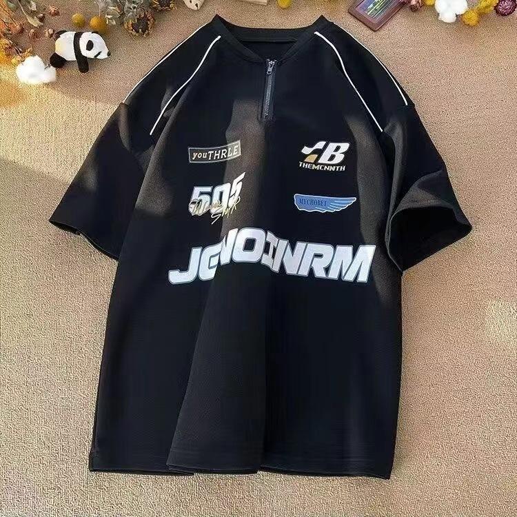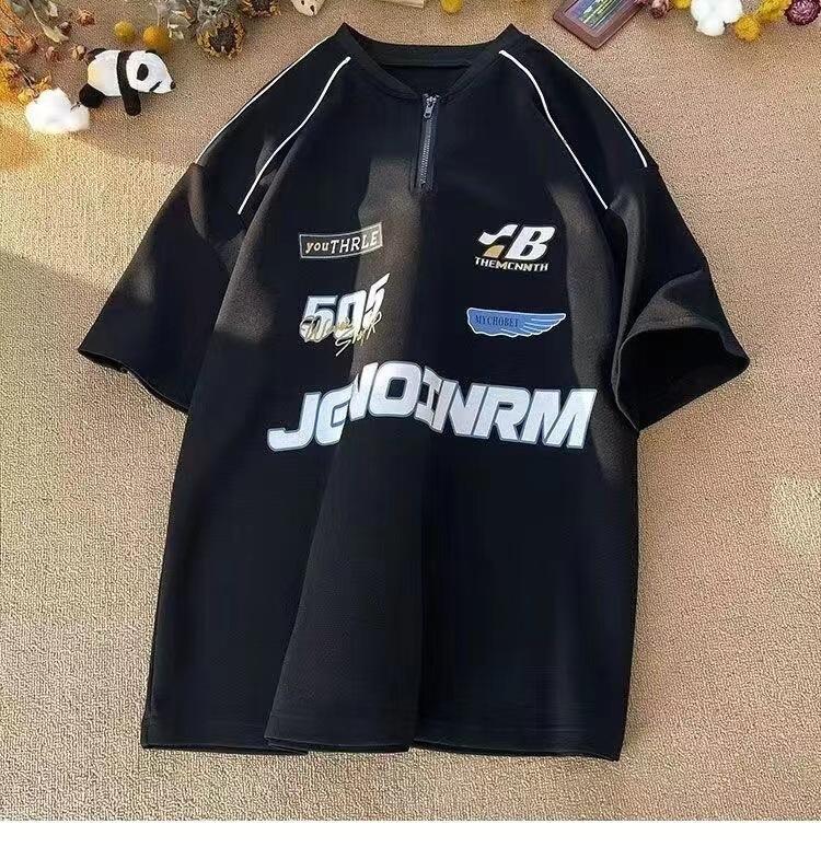 Polo de motociclista estadounidense transfronterizo de manga corta para hombre, camiseta holgada con cremallera de verano, estampado, traje de carreras de marca de moda, manga corta