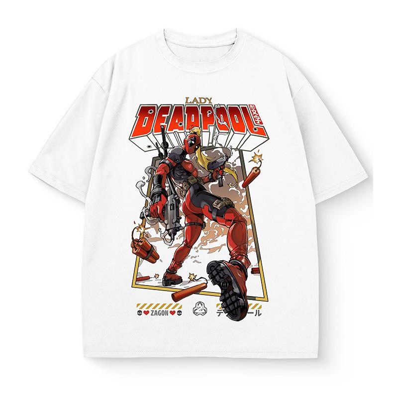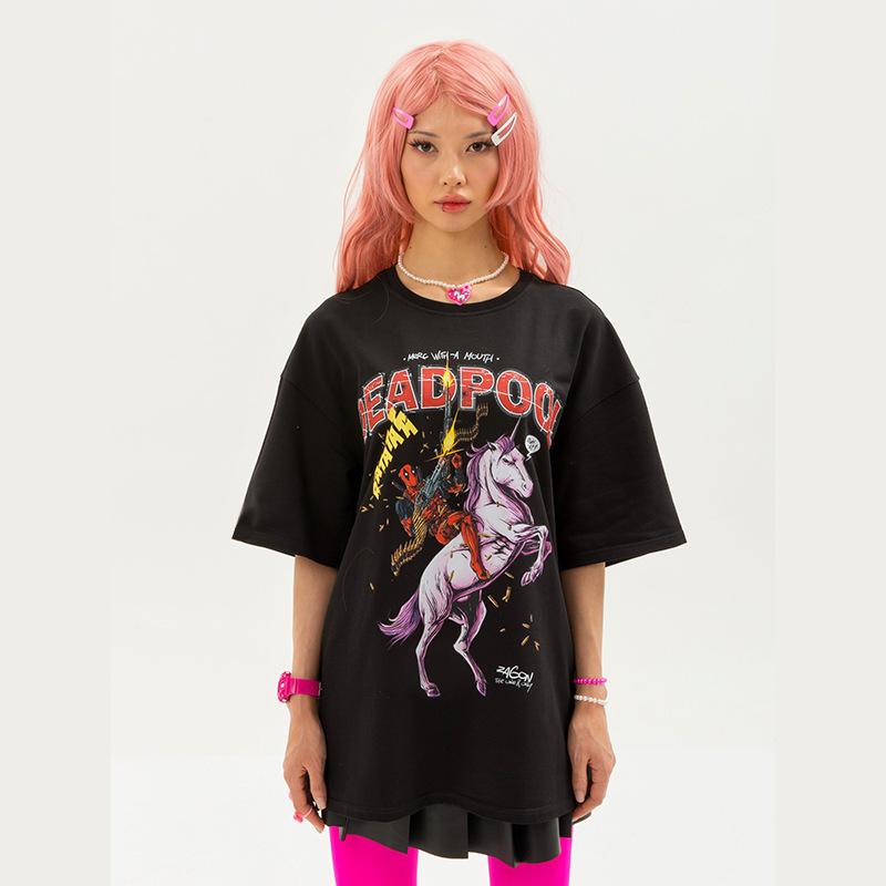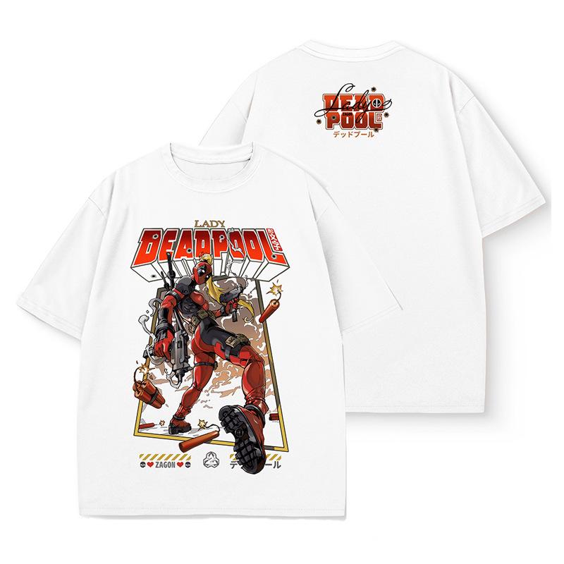 Camiseta de manga corta holgada informal de verano con estampado de superhéroes de cómics europeos y americanos para hombre y mujer, con impresión directa a chorro.