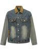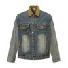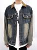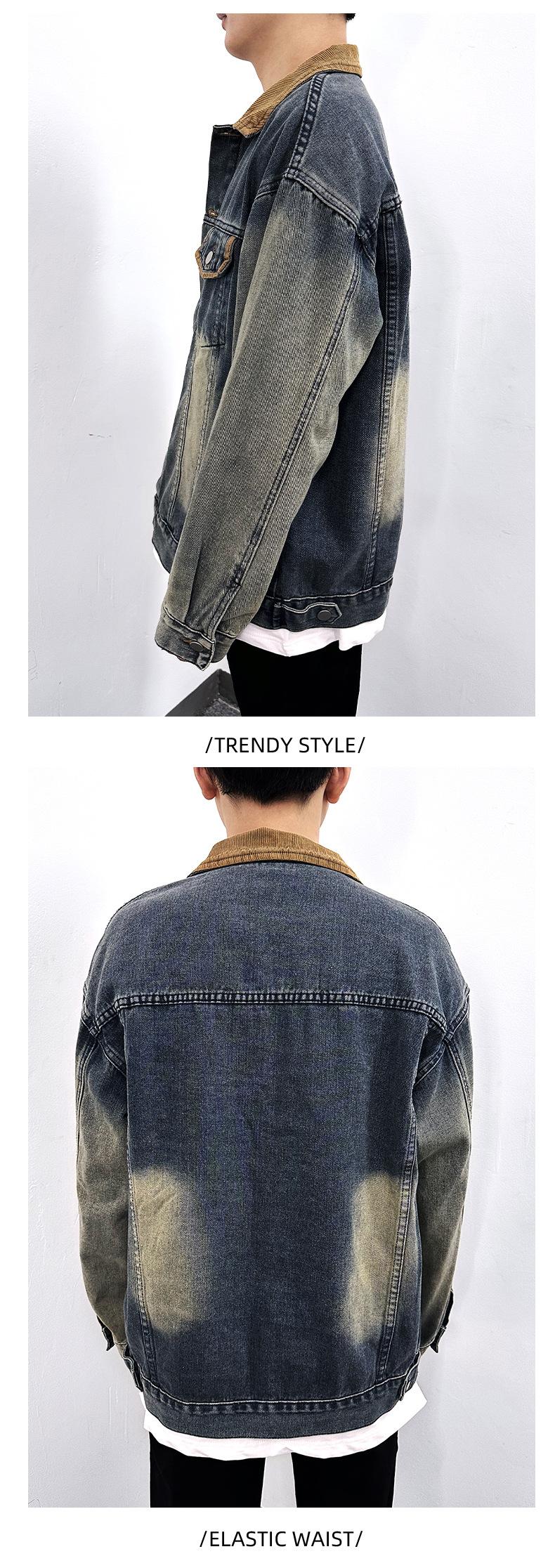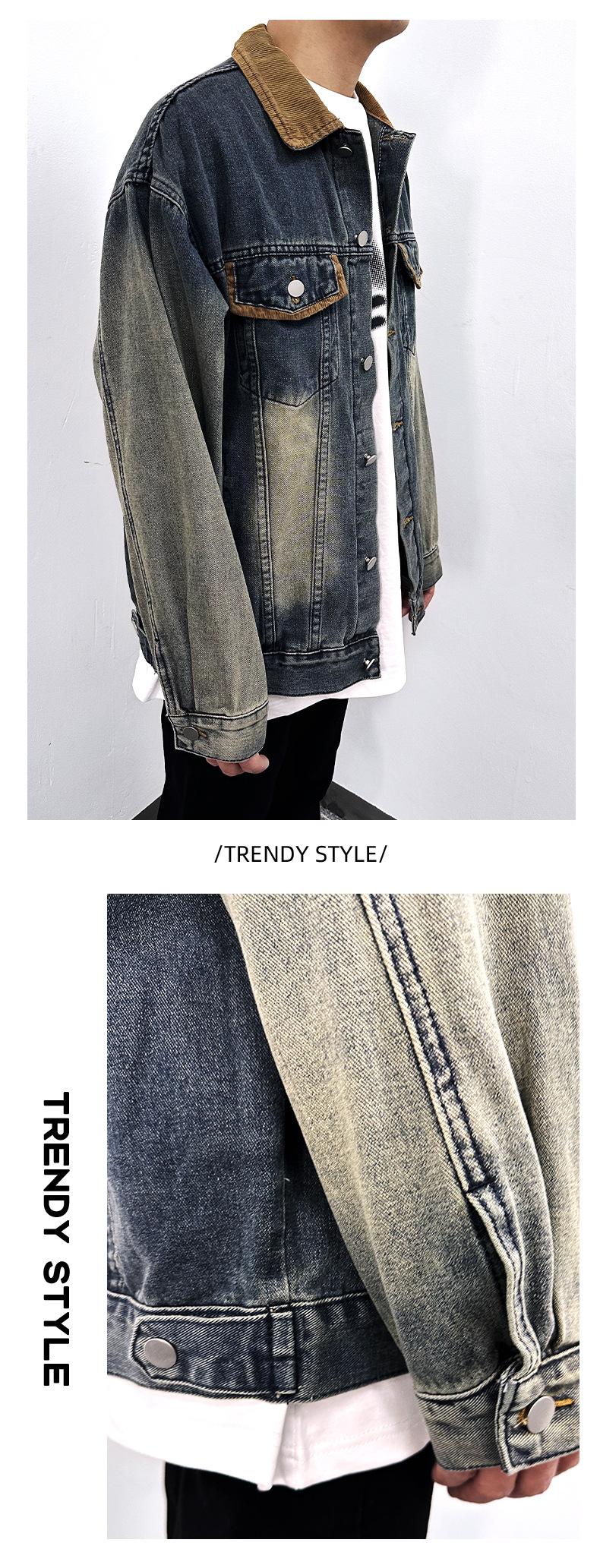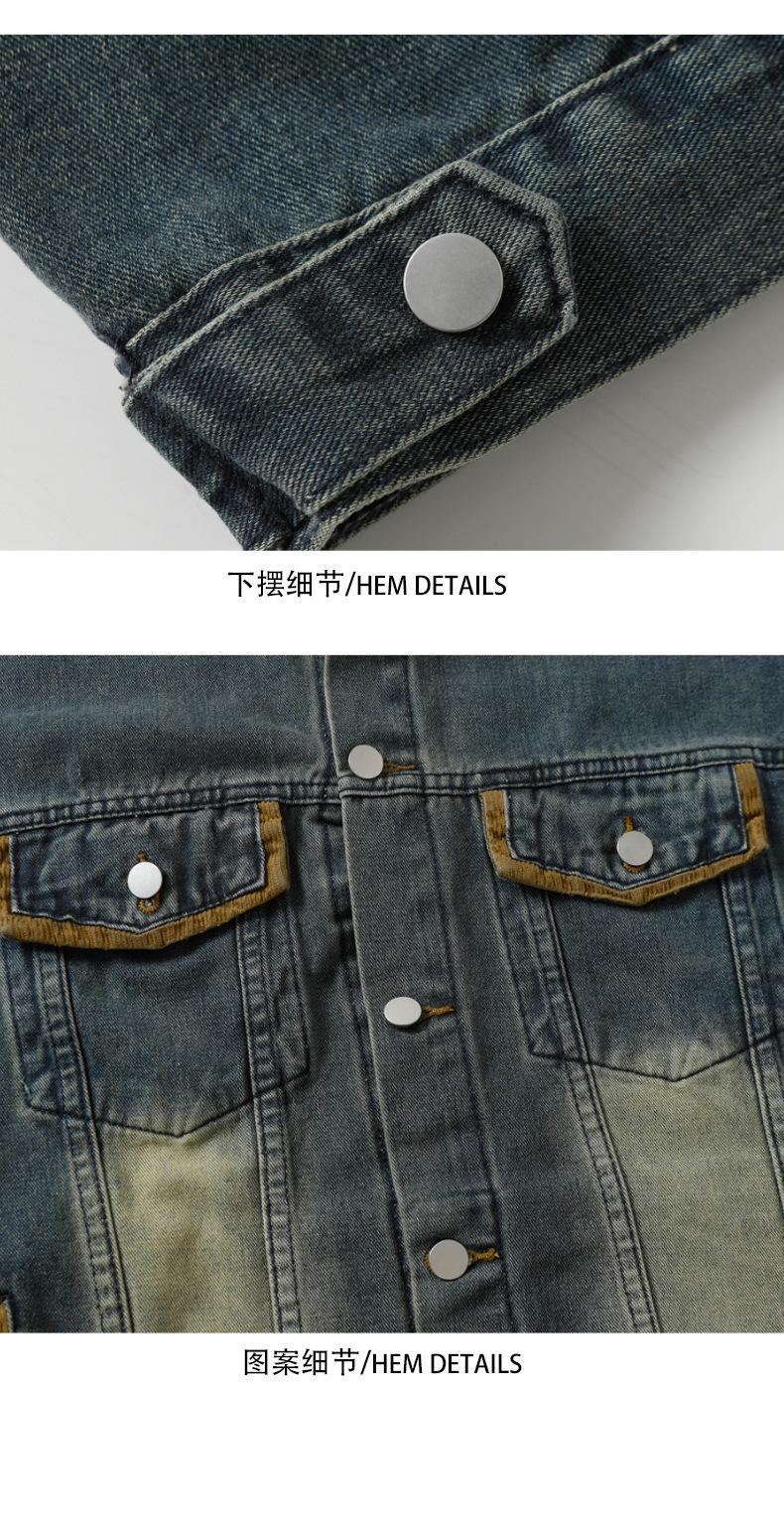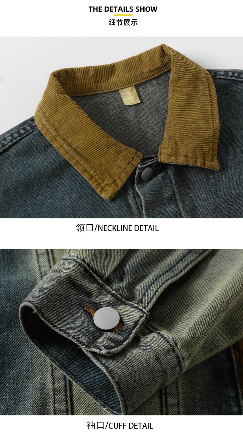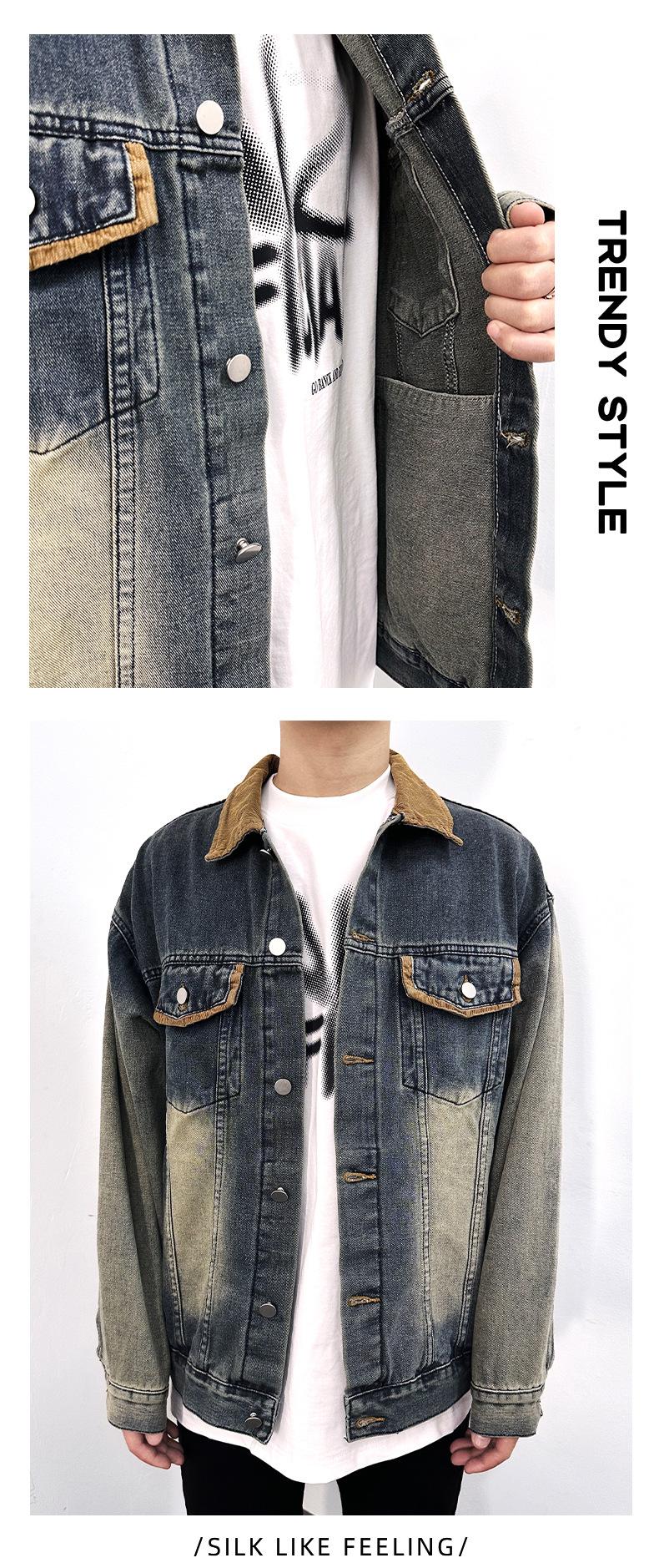 Chaqueta vaquera estilo americano punk de industria pesada con solapa y costuras antiguas de estilo vintage, chaqueta informal holgada sencilla, parte superior vaquera