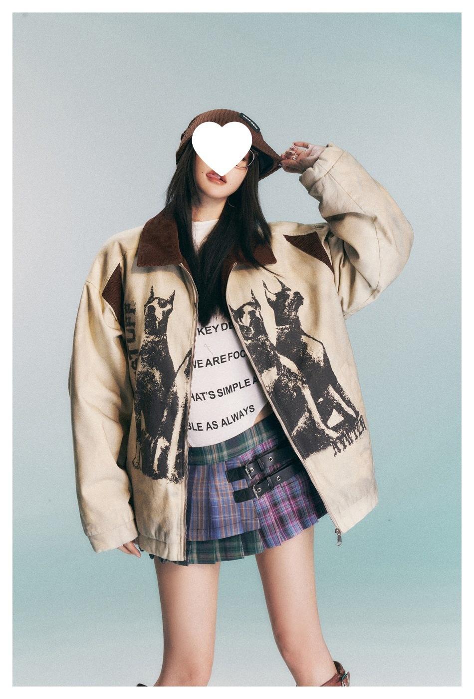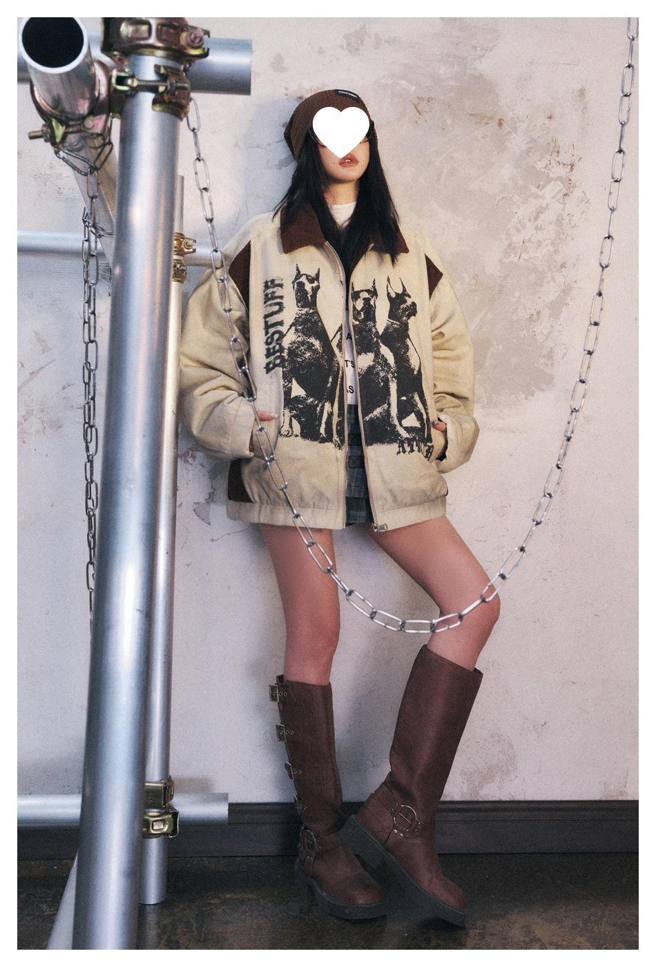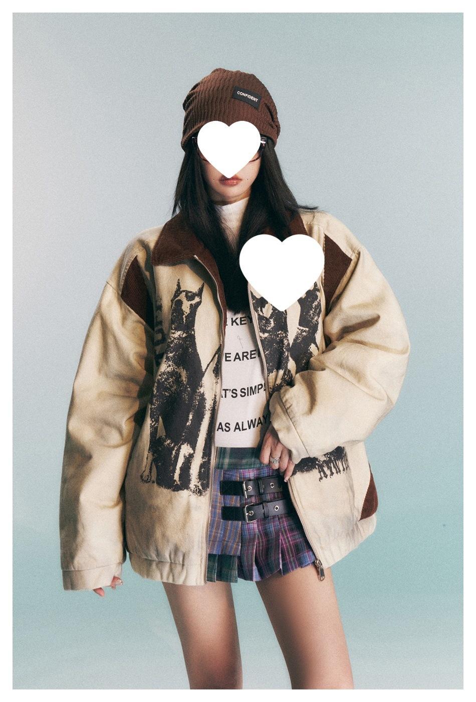 Transfronterizo en stock Estilo americano High Street Retro Distintivo Suelto Chaqueta de invierno para Hombres y Mujeres Pareja Sobrecamisa Chaqueta