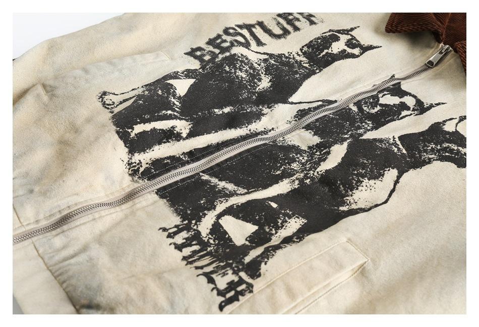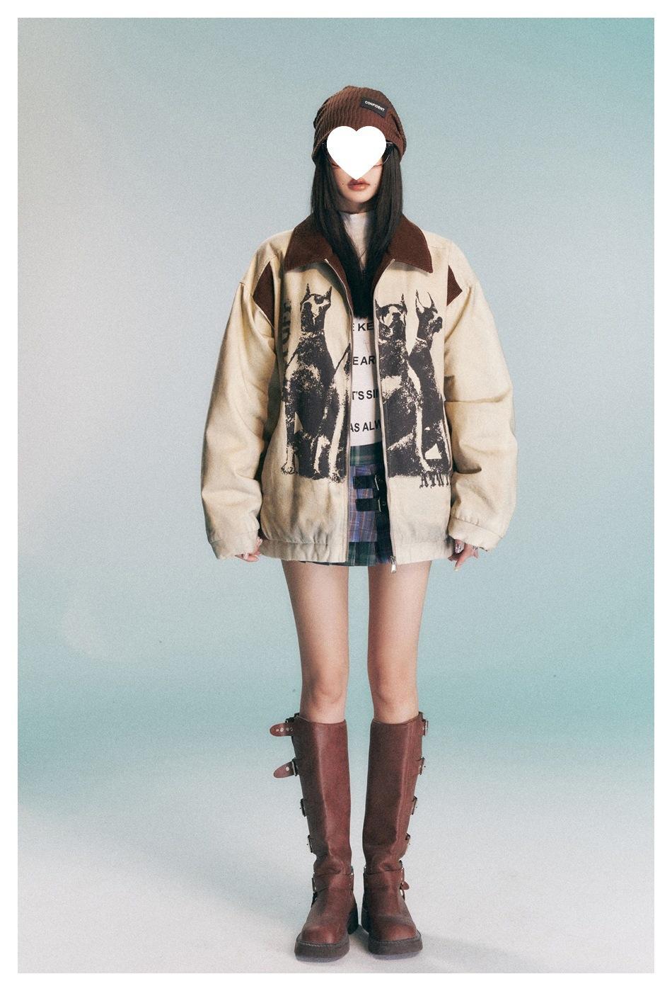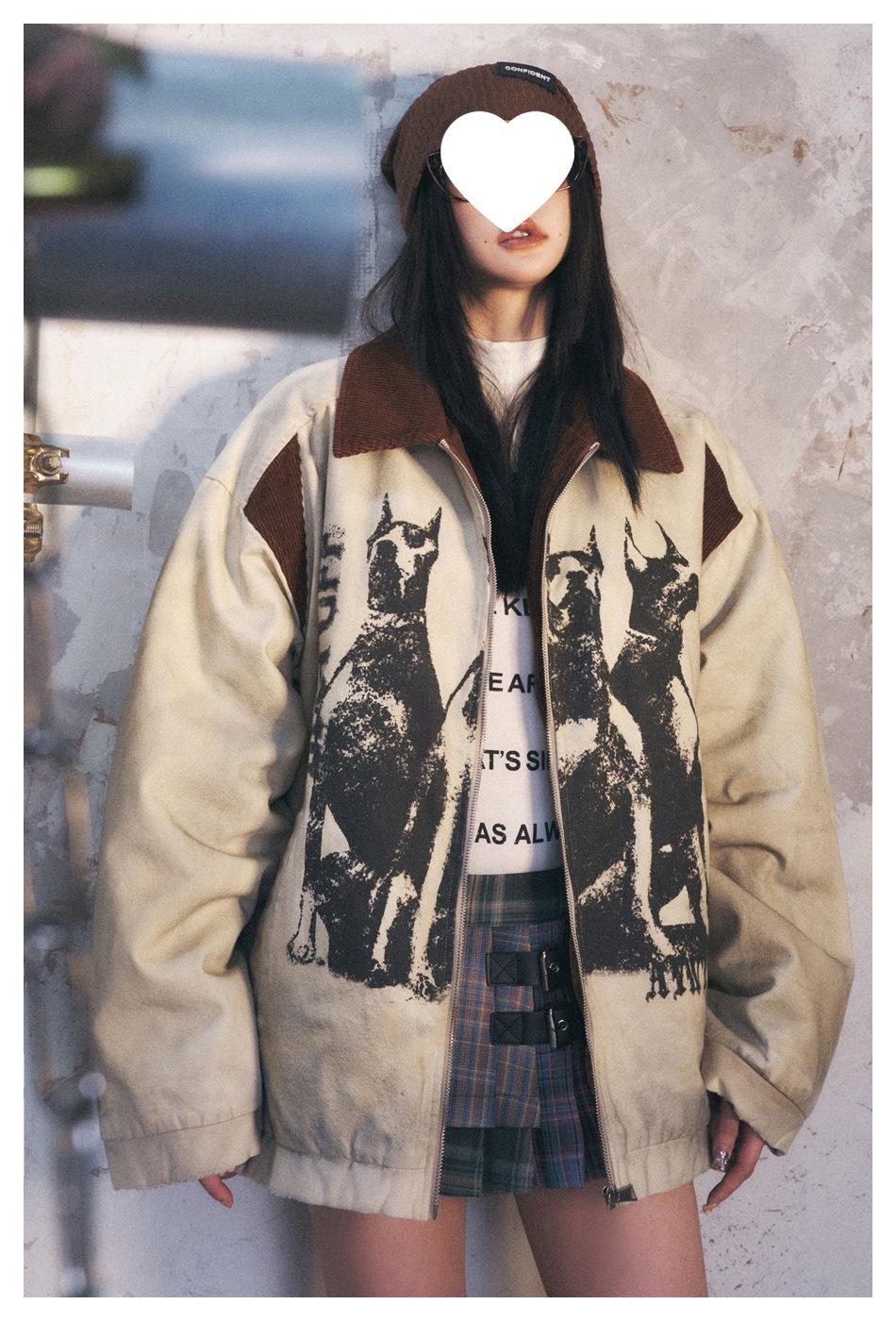 Transfronterizo en stock Estilo americano High Street Retro Distintivo Suelto Chaqueta de invierno para Hombres y Mujeres Pareja Sobrecamisa Chaqueta