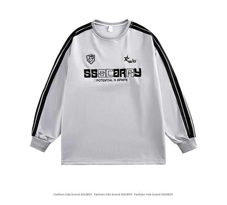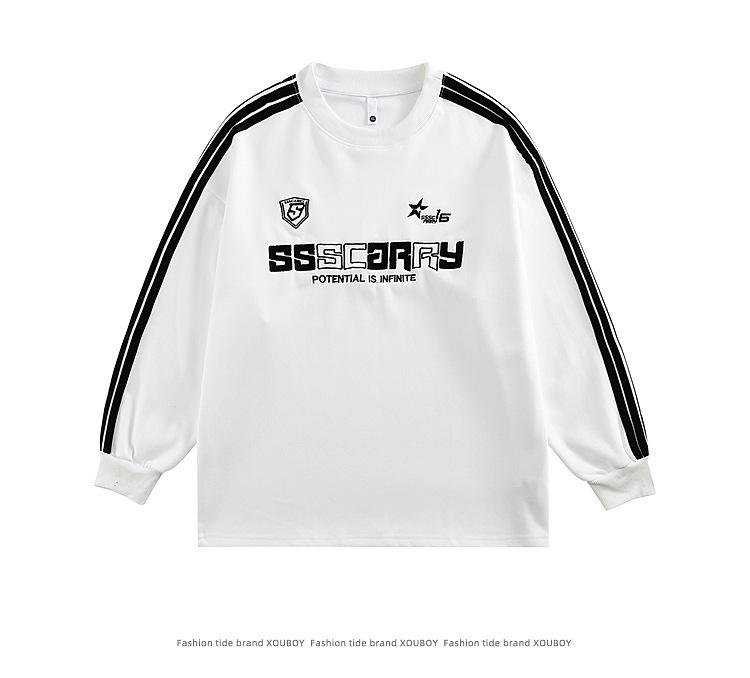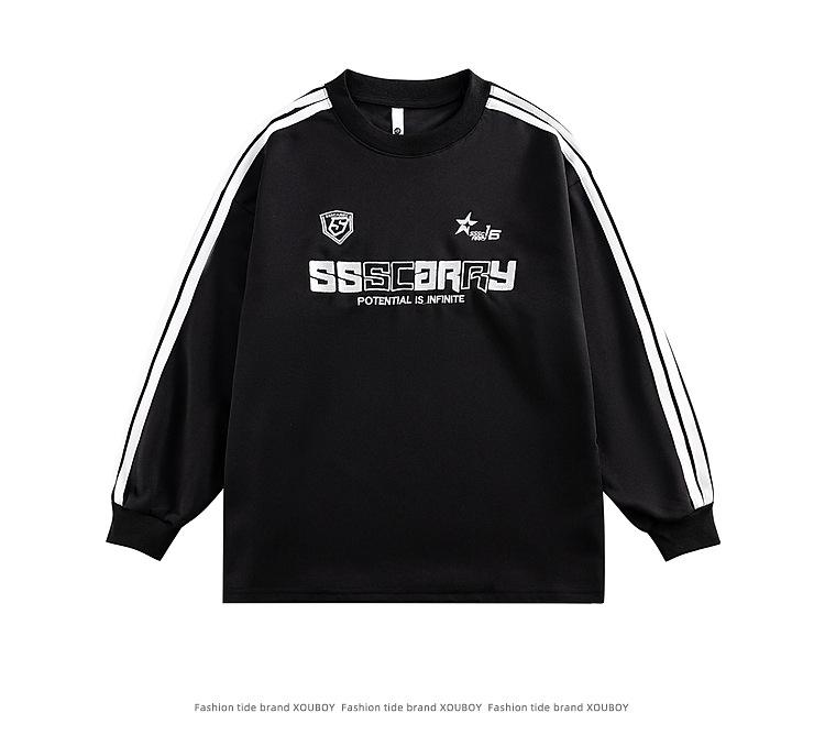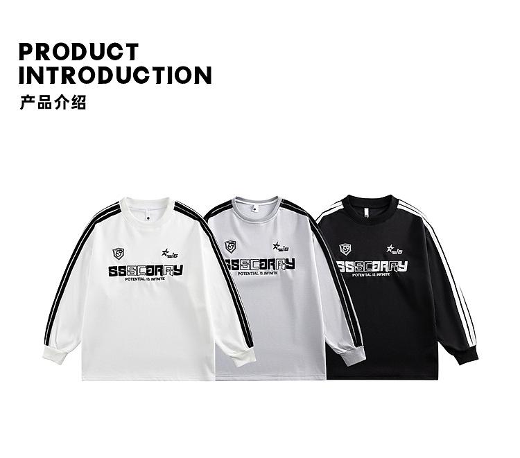 Estilo Americano Sentido del Diseño Deportivo Tres Barras Riggard Rayado Sudadera de Hombre y Mujer Suelta Pesada cleanfit Cuello Redondo Manga Larga