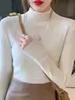Otoño e Invierno Nuevo Suéter Básico de Punto sin Mangas de Cuello Alto Medio para Mujer Traje Adelgazante Ajustado para Mujer con Manga Larga Suéter Sencillo para Mujer