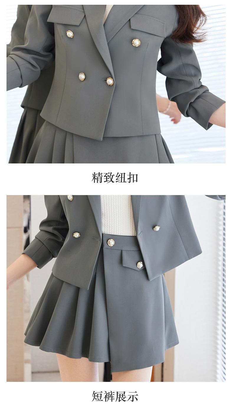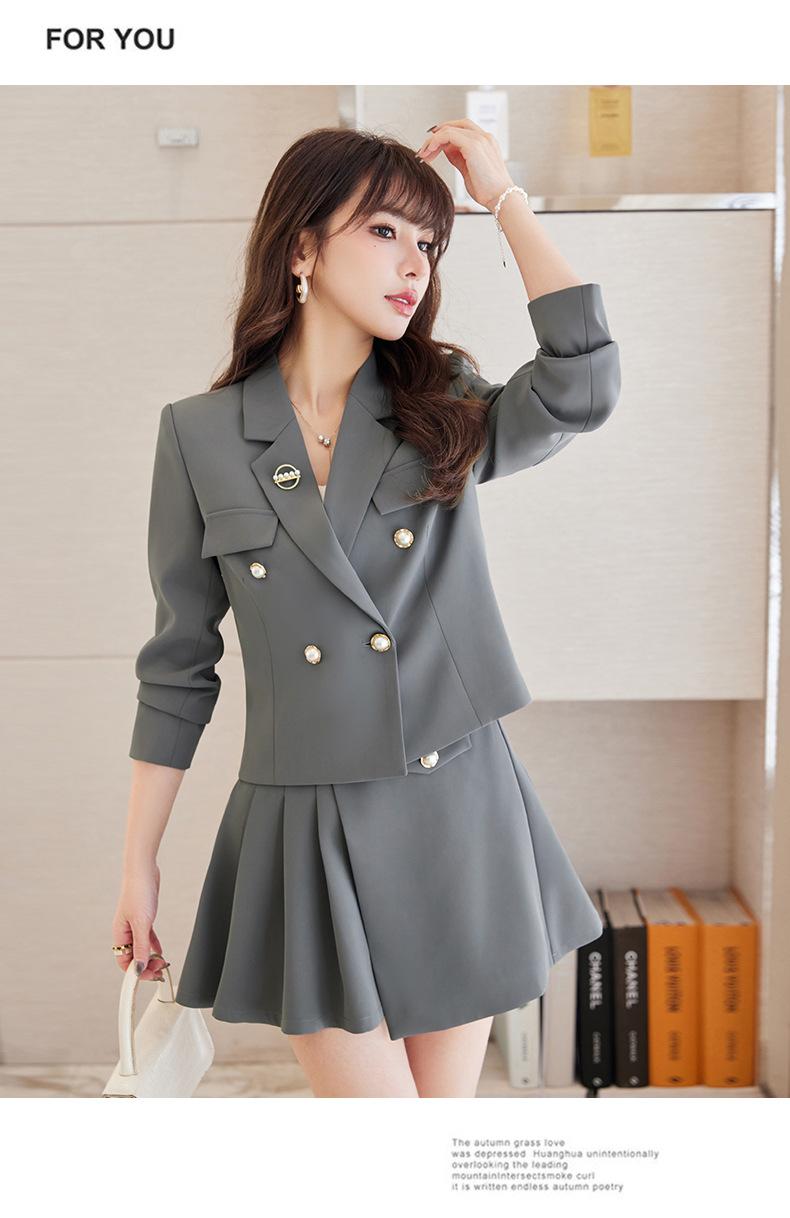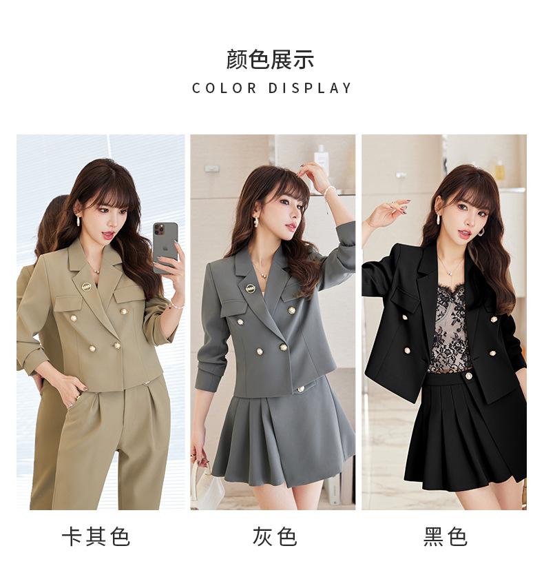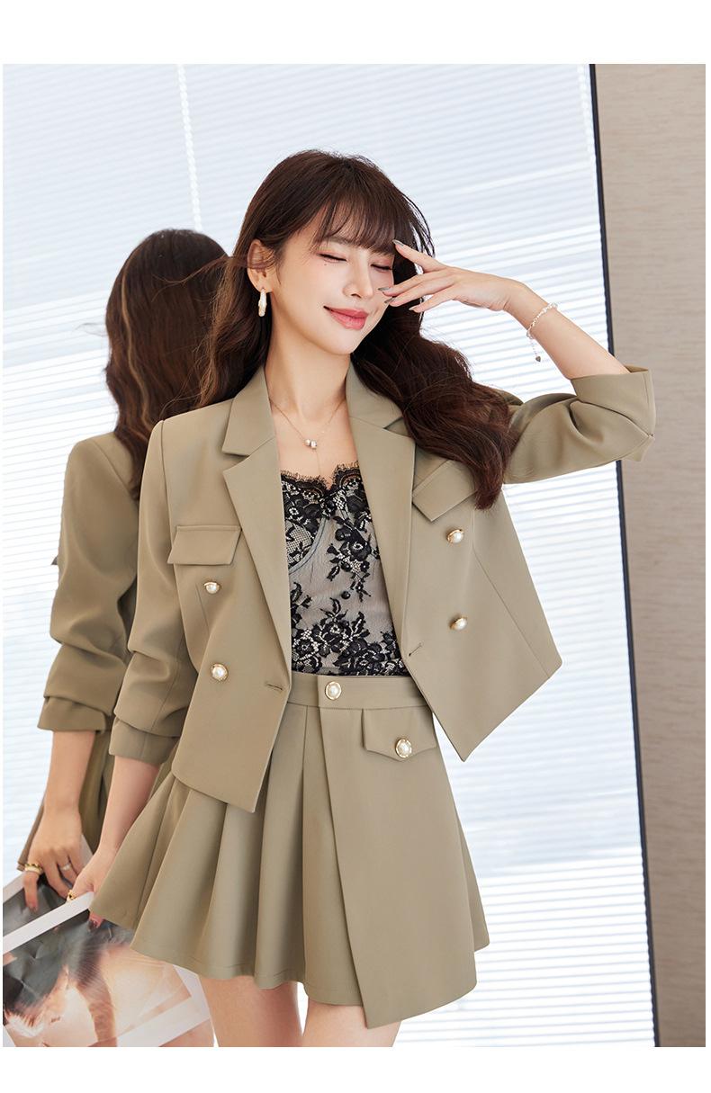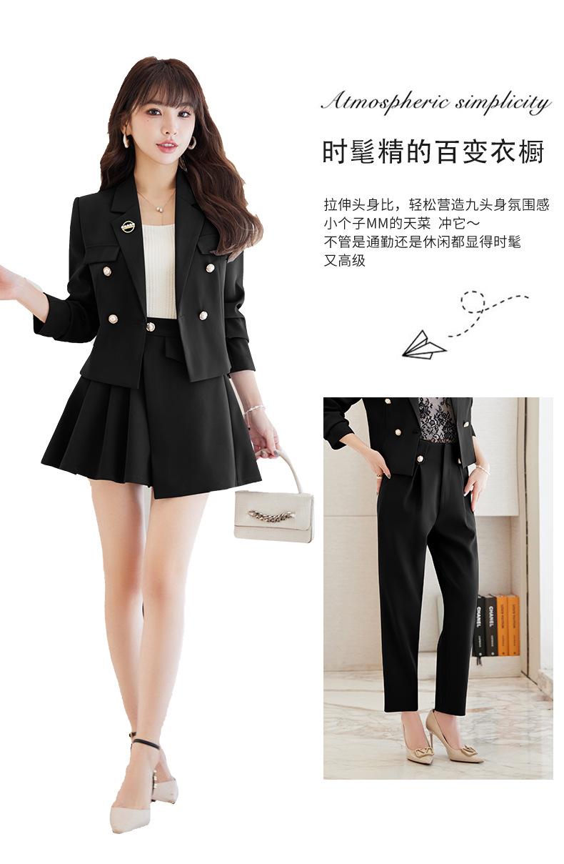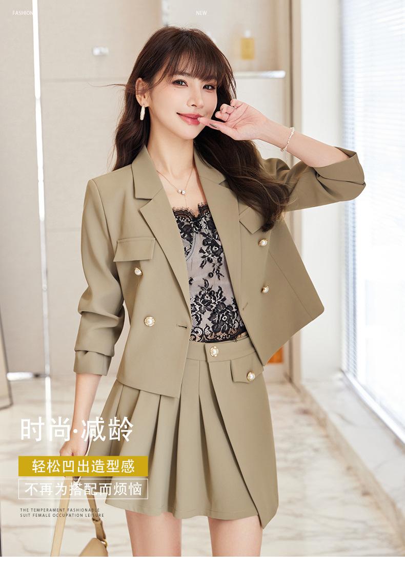 Traje informal profesional de manga larga corta con cuello pequeño, chaqueta, pantalones y falda plisada para mujer, primavera y otoño de 2024