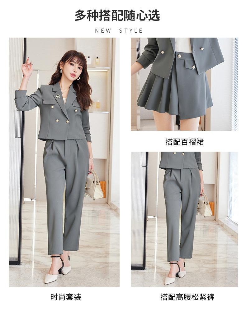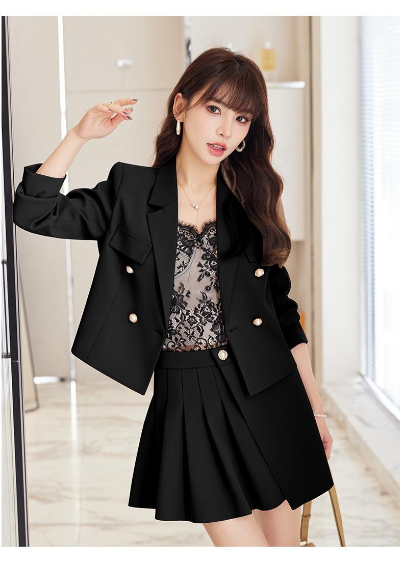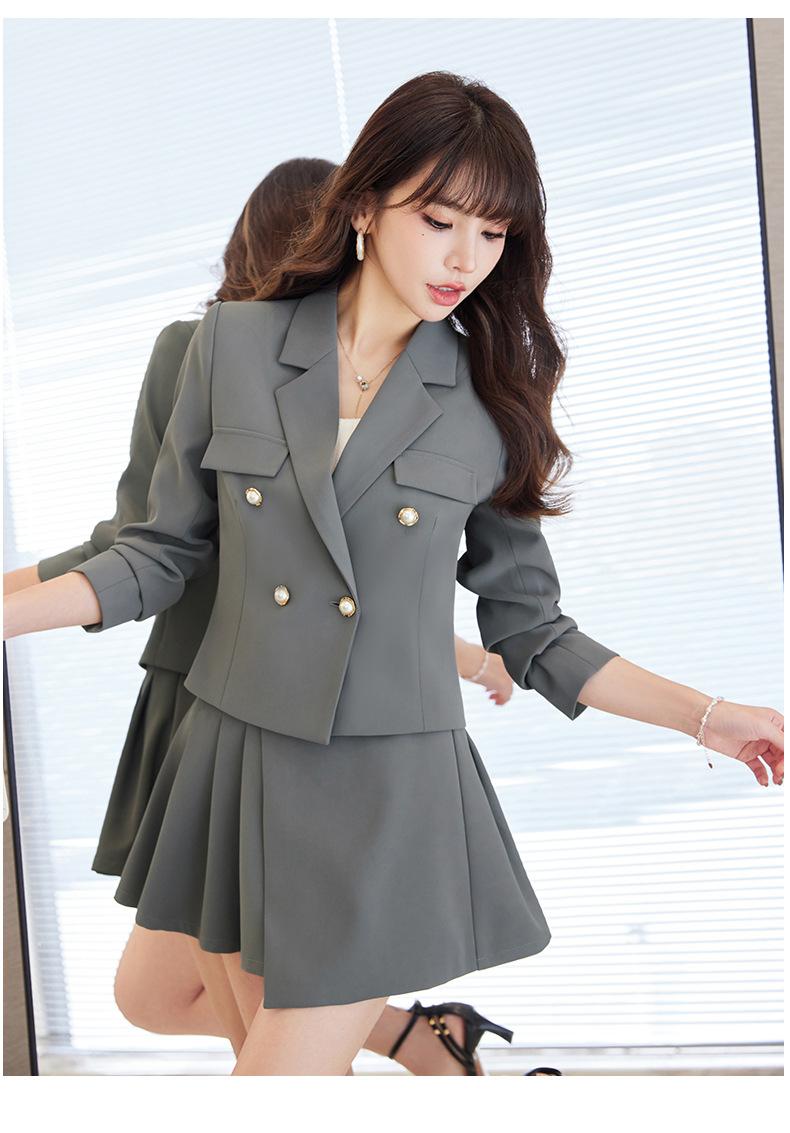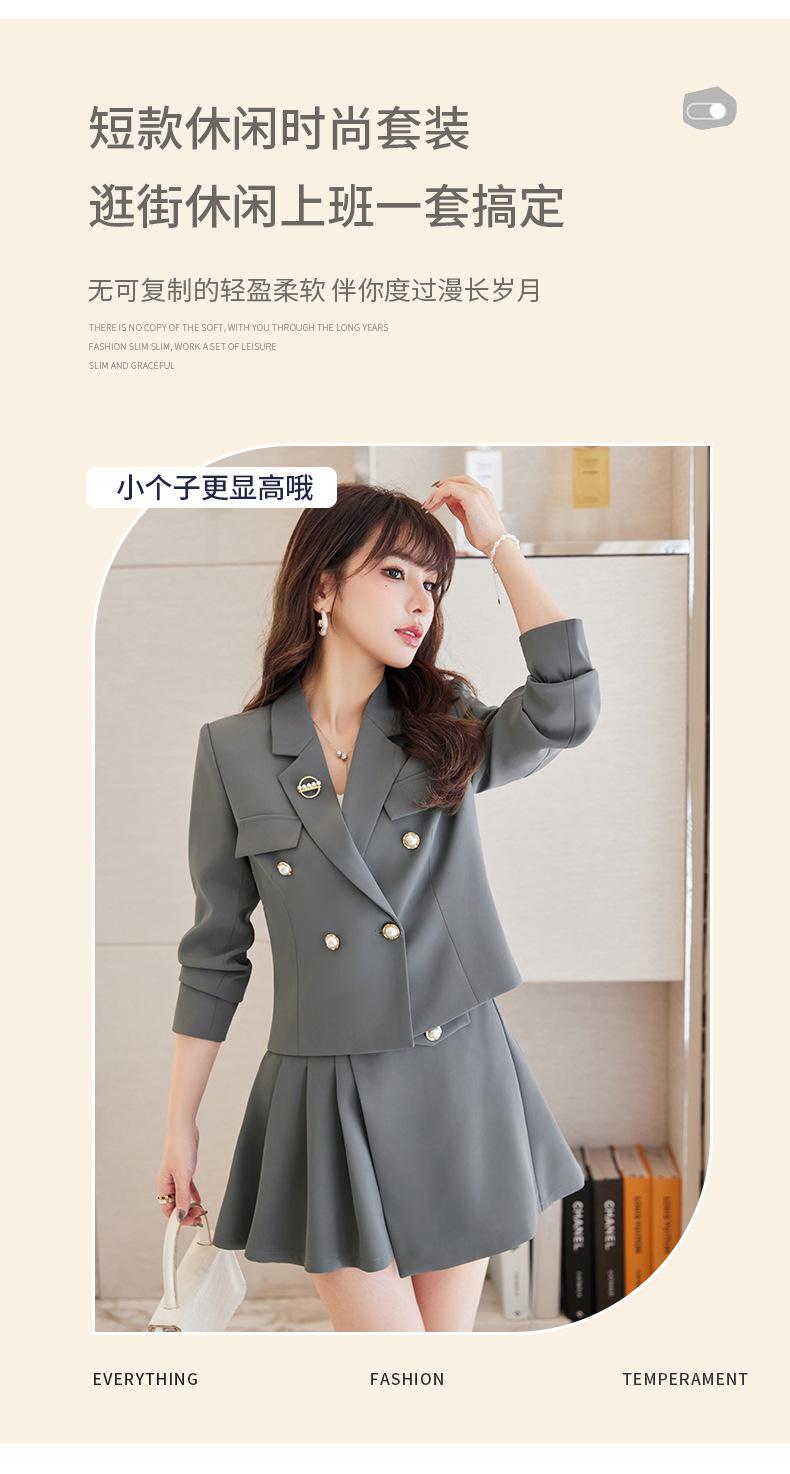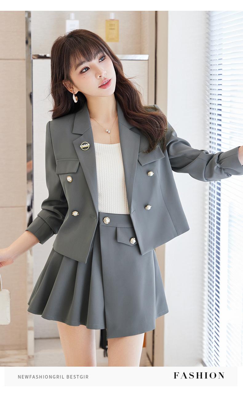 Traje informal profesional de manga larga corta con cuello pequeño, chaqueta, pantalones y falda plisada para mujer, primavera y otoño de 2024