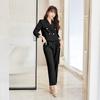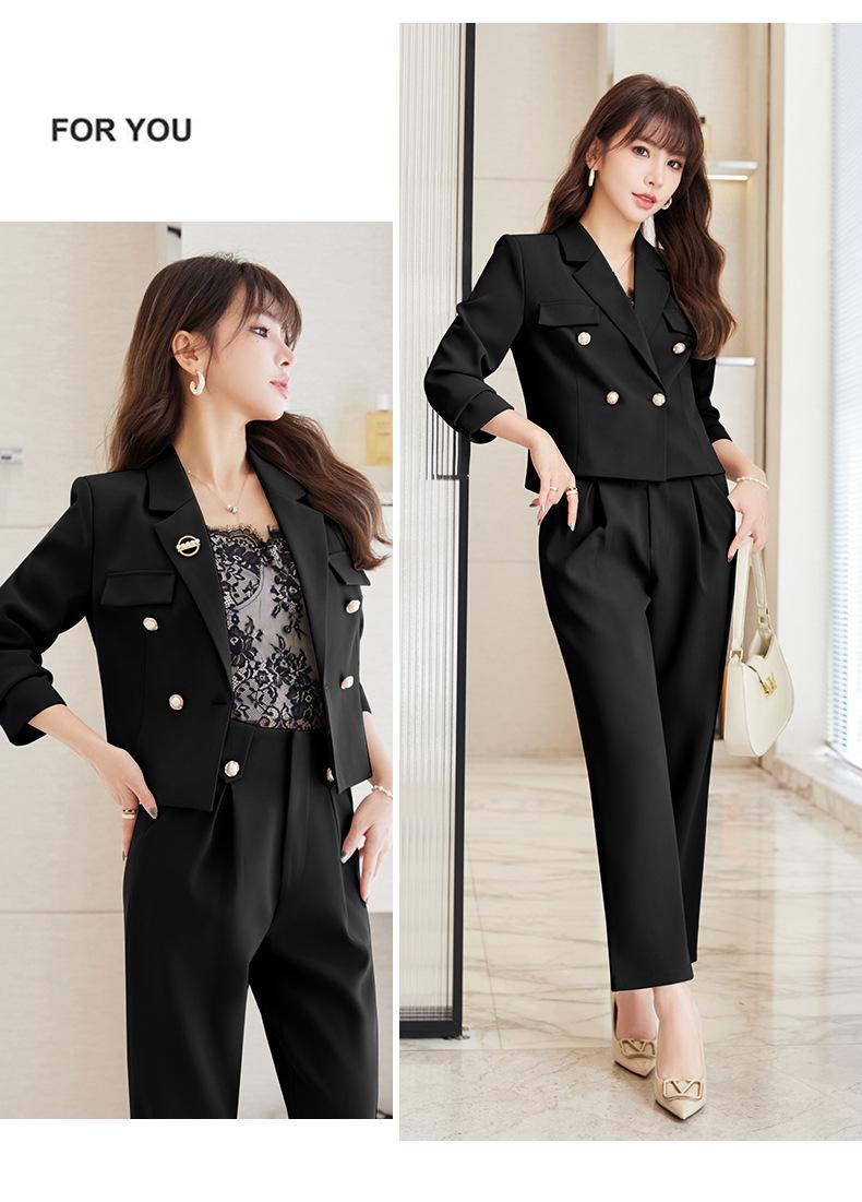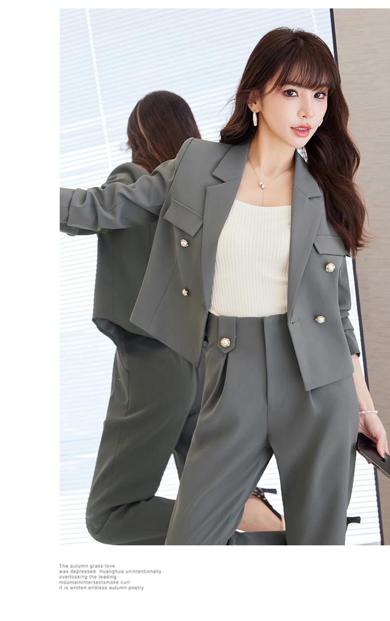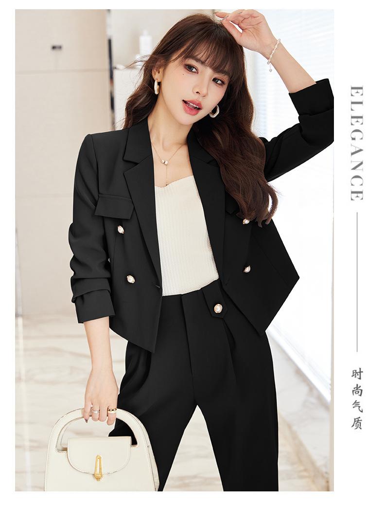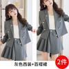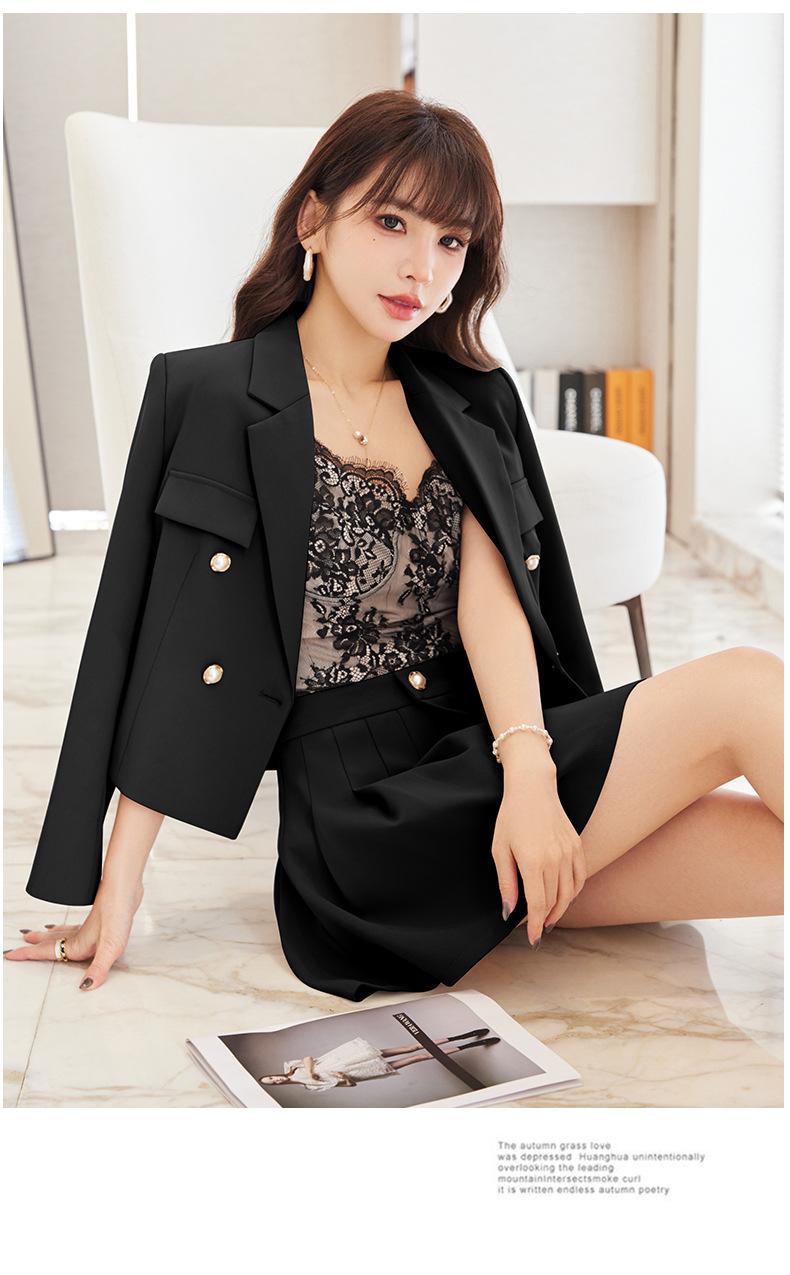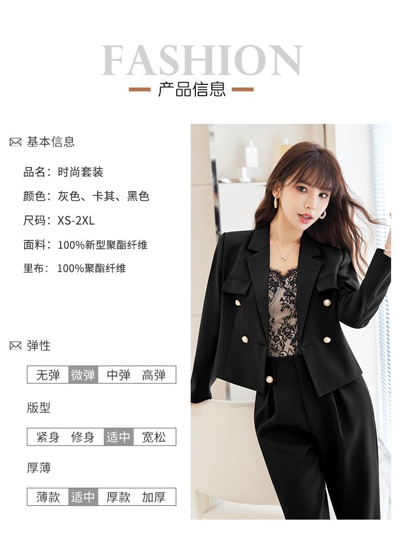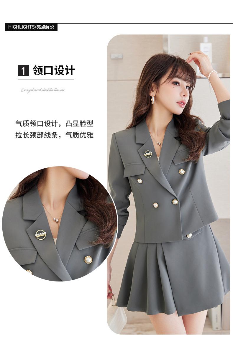 Traje informal profesional de manga larga corta con cuello pequeño, chaqueta, pantalones y falda plisada para mujer, primavera y otoño de 2024