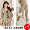 Khaki suit + pants + pleated skirt
