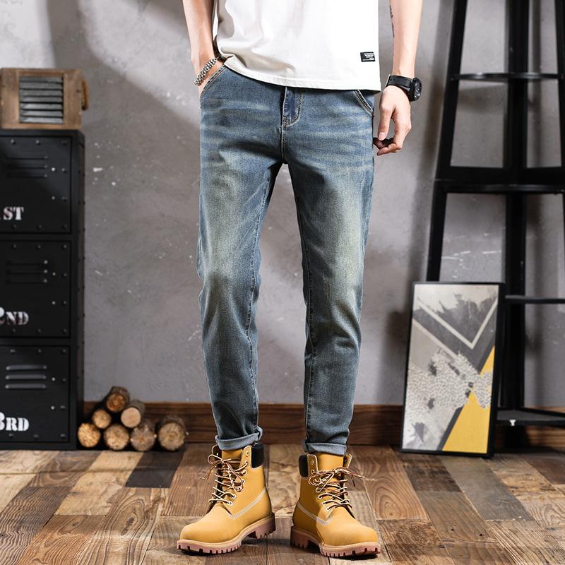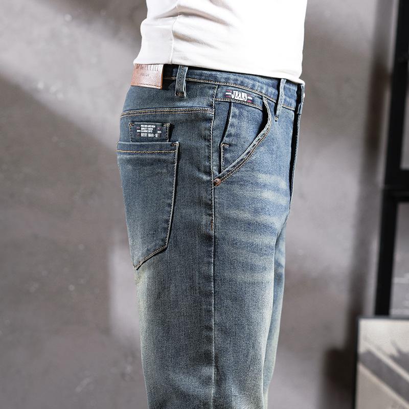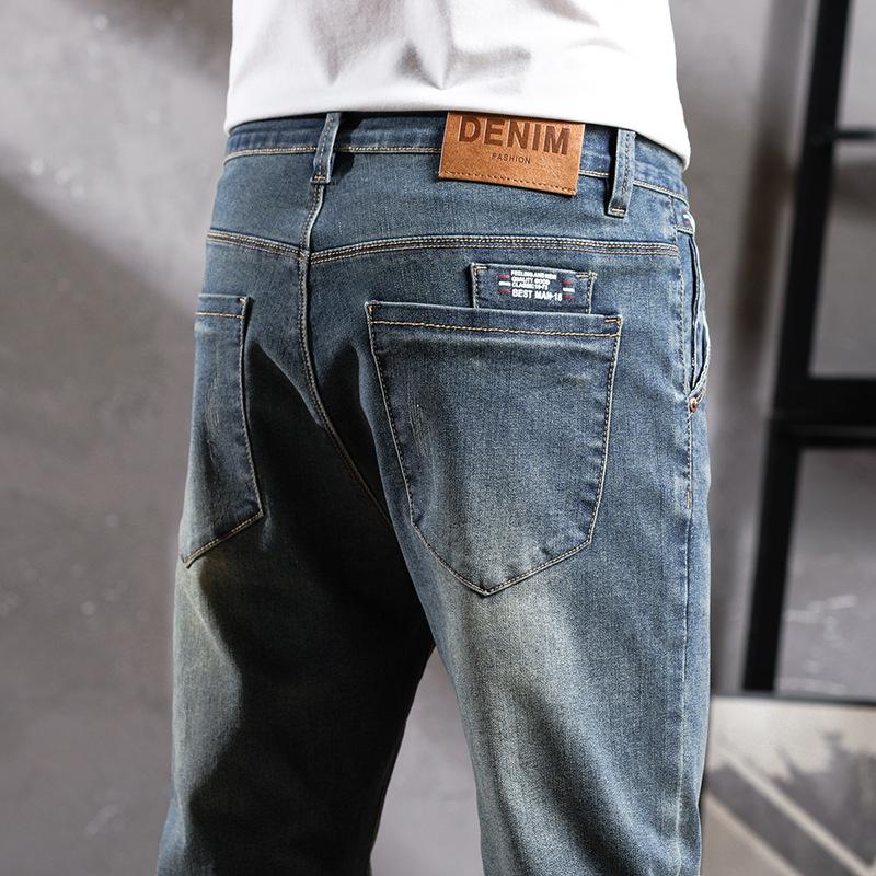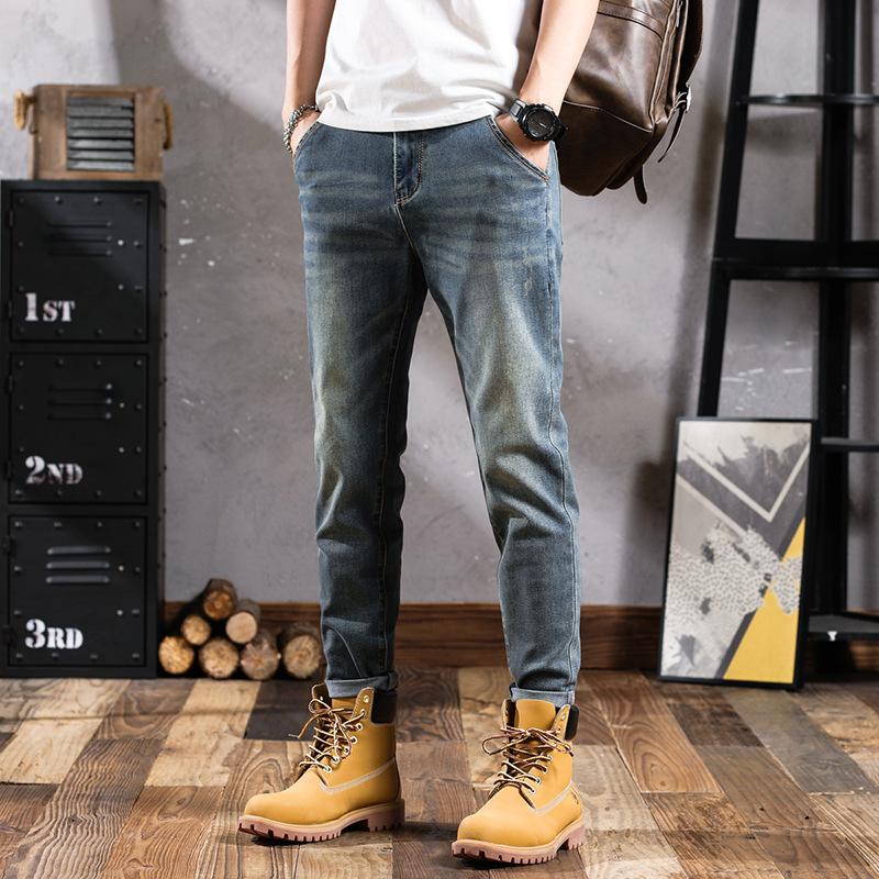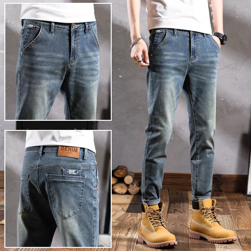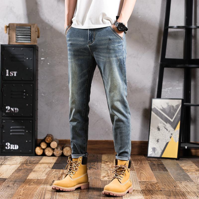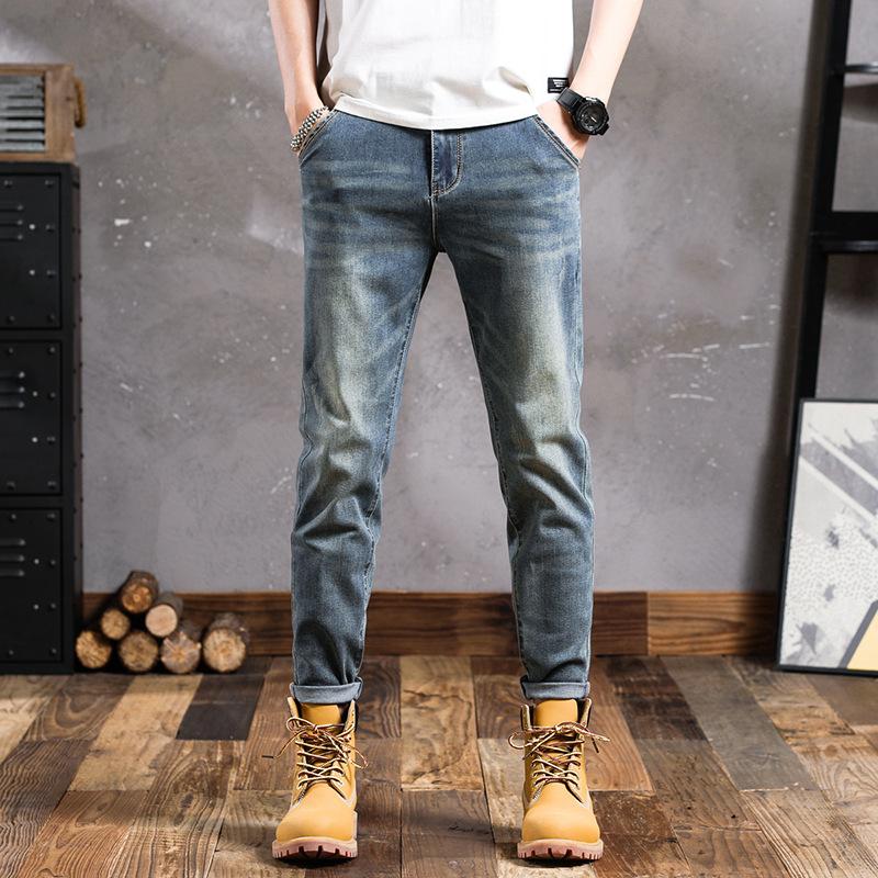 Pantalones vaqueros de primavera para hombre, ajustados, elásticos, informales, combinables, retro, de color, sencillos, cómodos, altos, pequeños, rectos, de mezclilla para hombre
