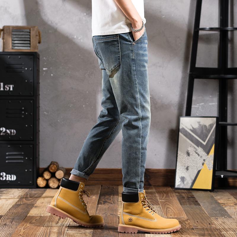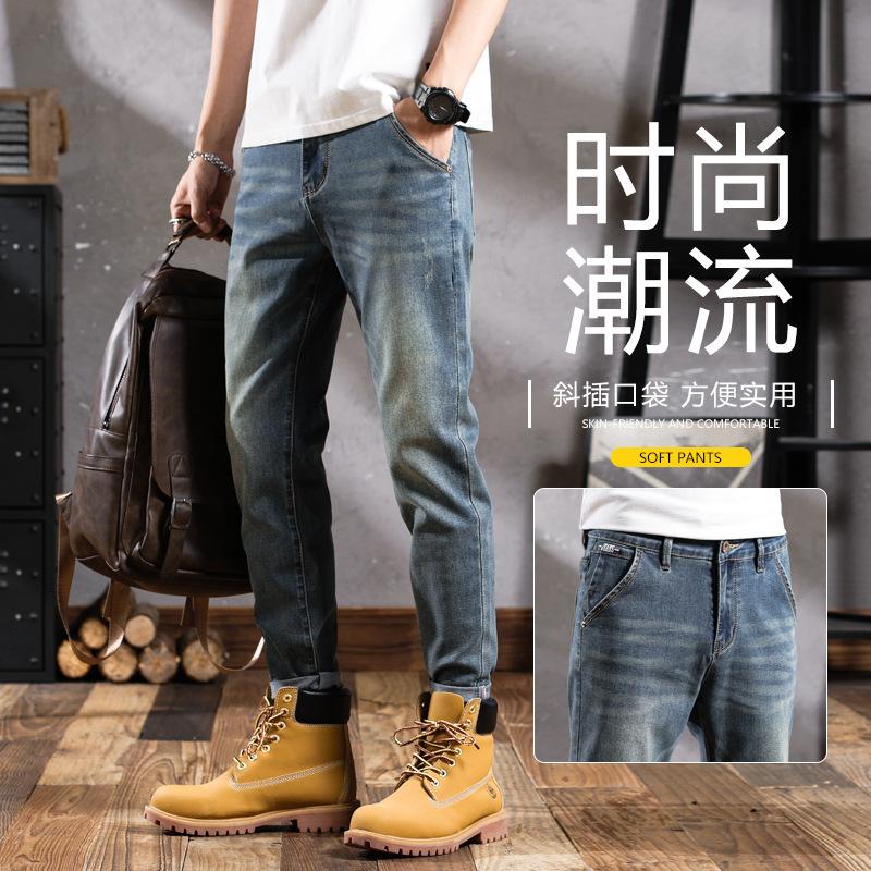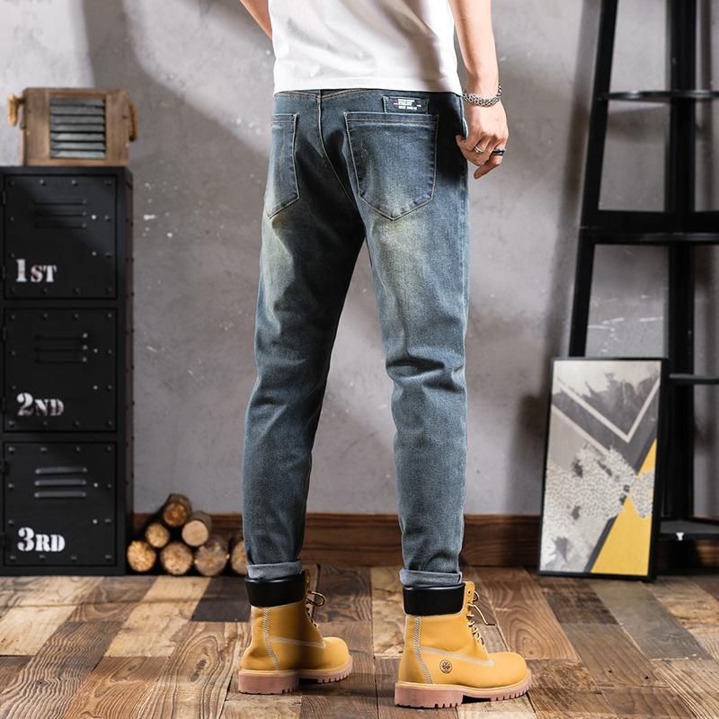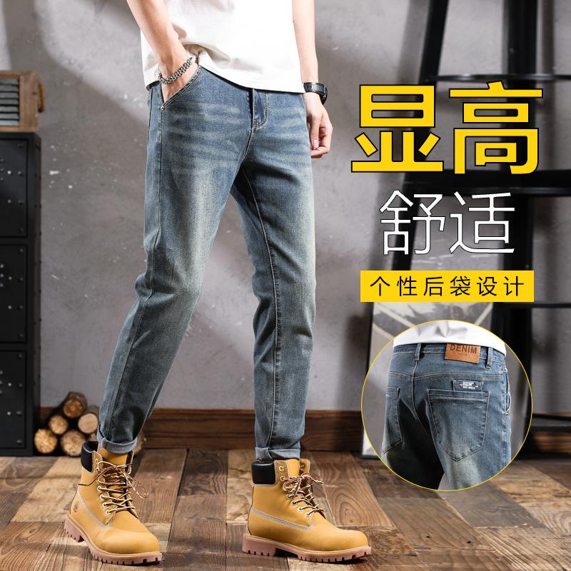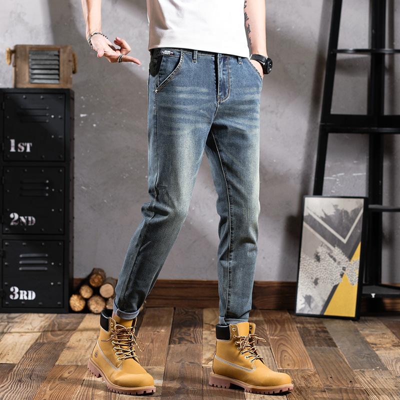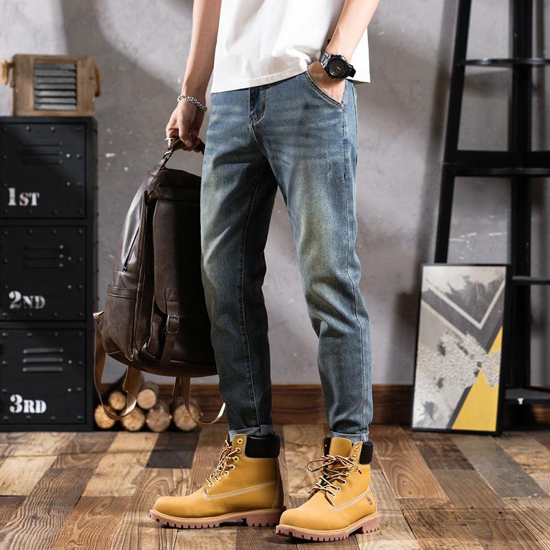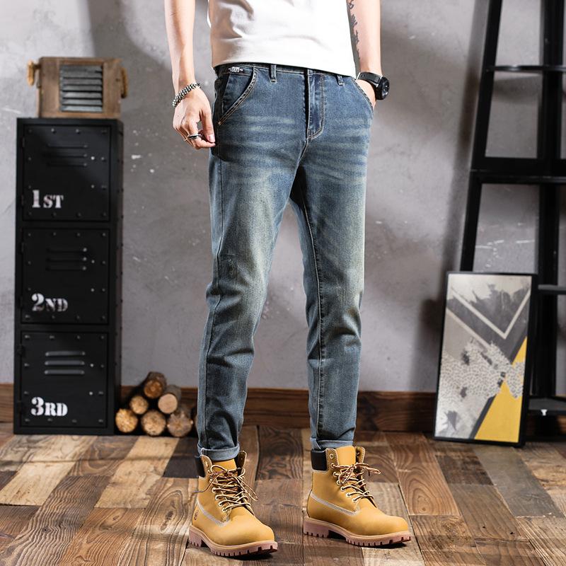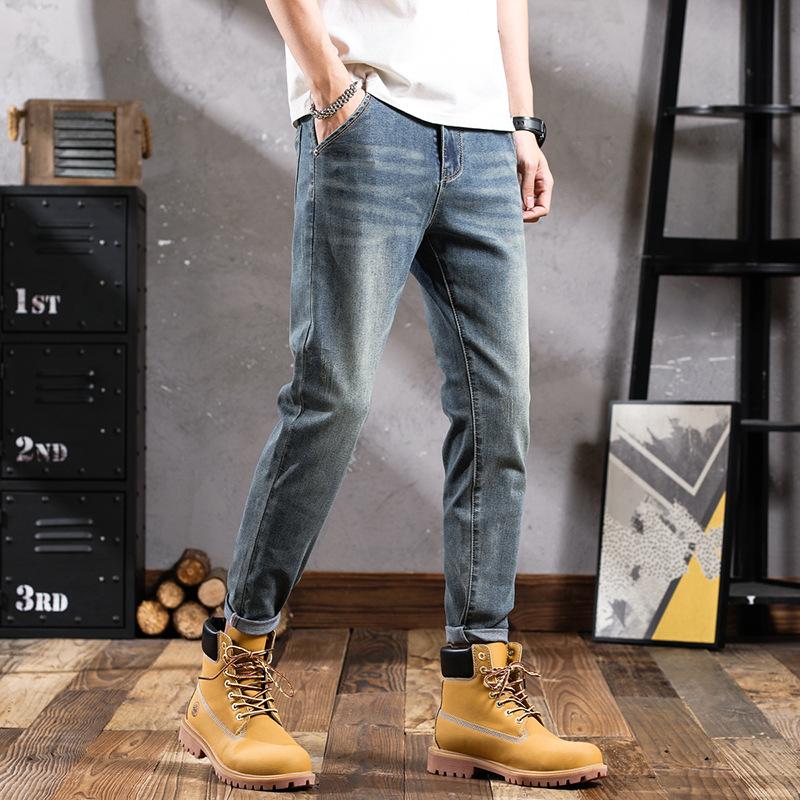 Pantalones vaqueros de primavera para hombre, ajustados, elásticos, informales, combinables, retro, de color, sencillos, cómodos, altos, pequeños, rectos, de mezclilla para hombre