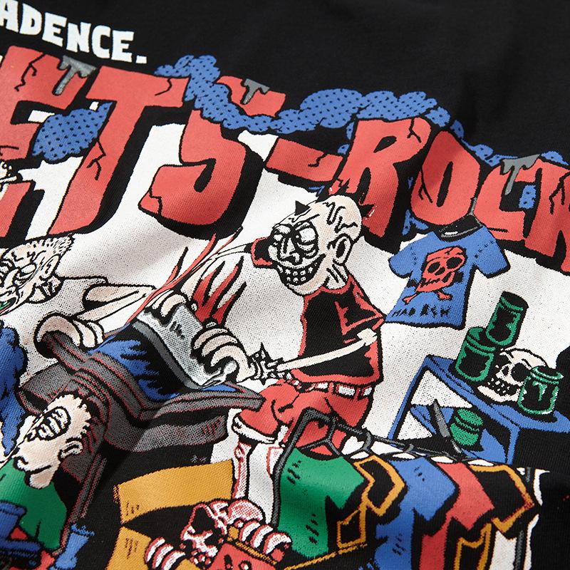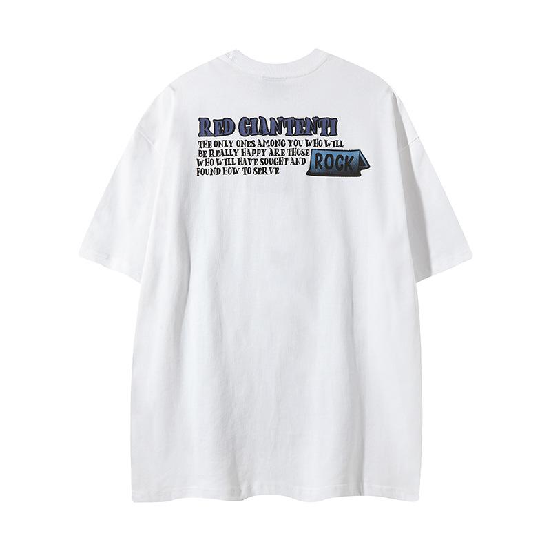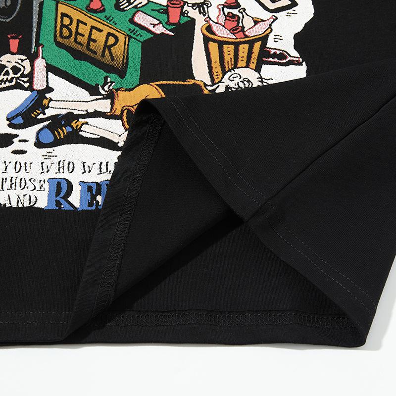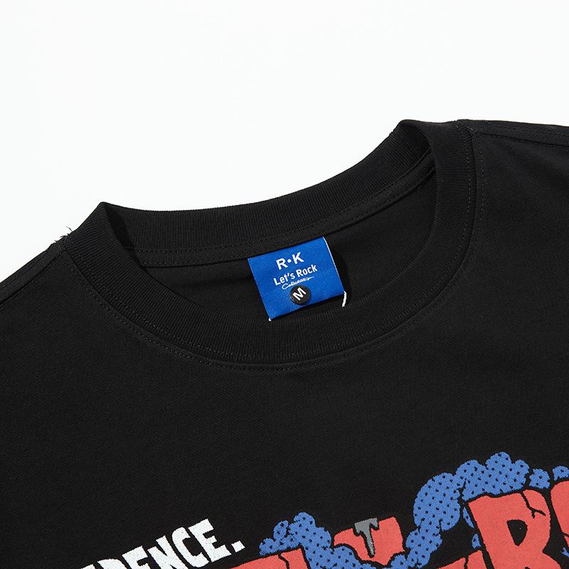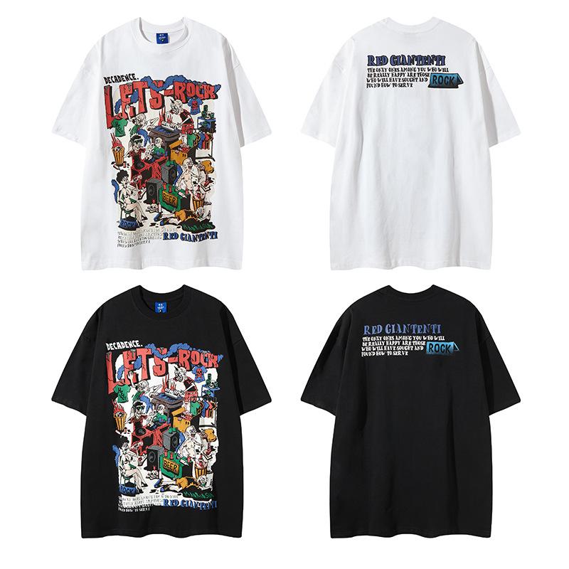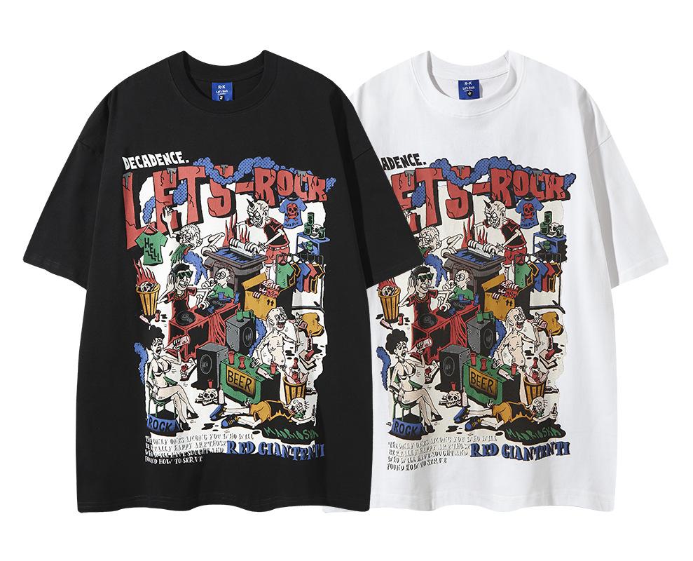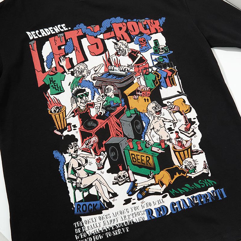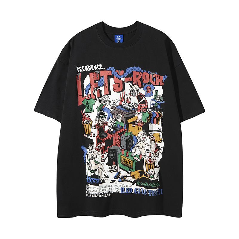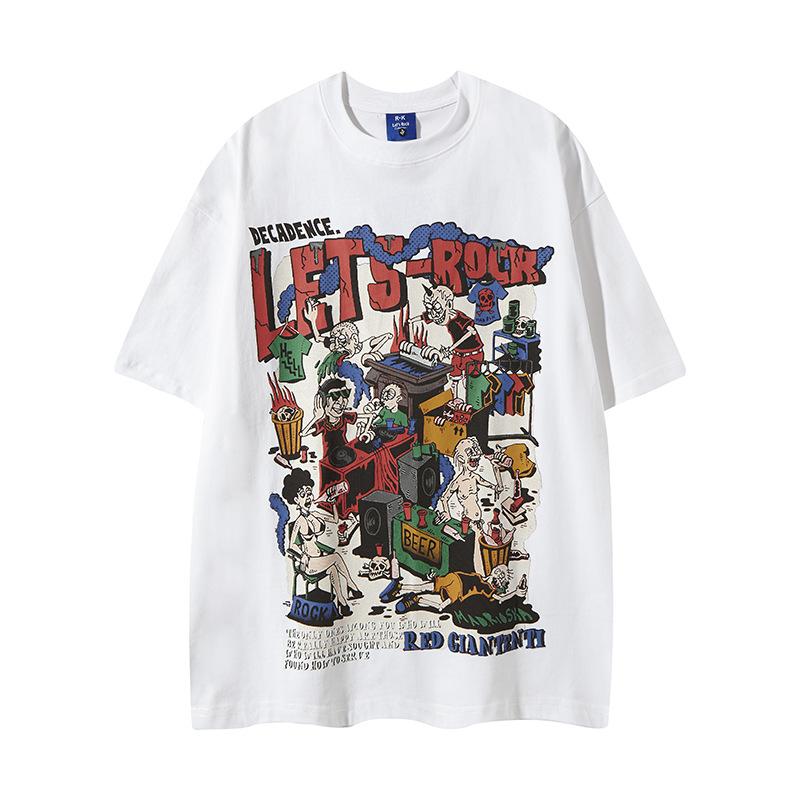 Camiseta de manga corta con estampado de personalidad corrupta y dibujos animados retro americanos, diseño informal y holgado para hombre y mujer, para parejas