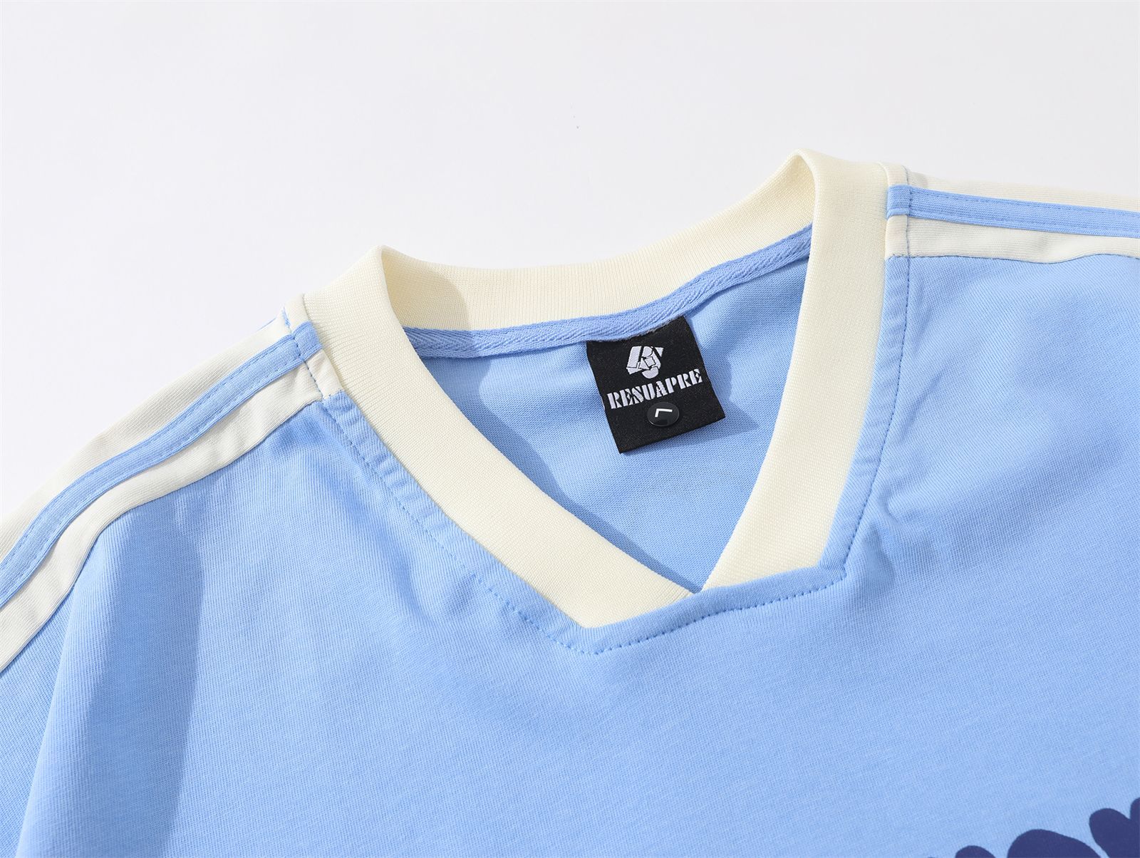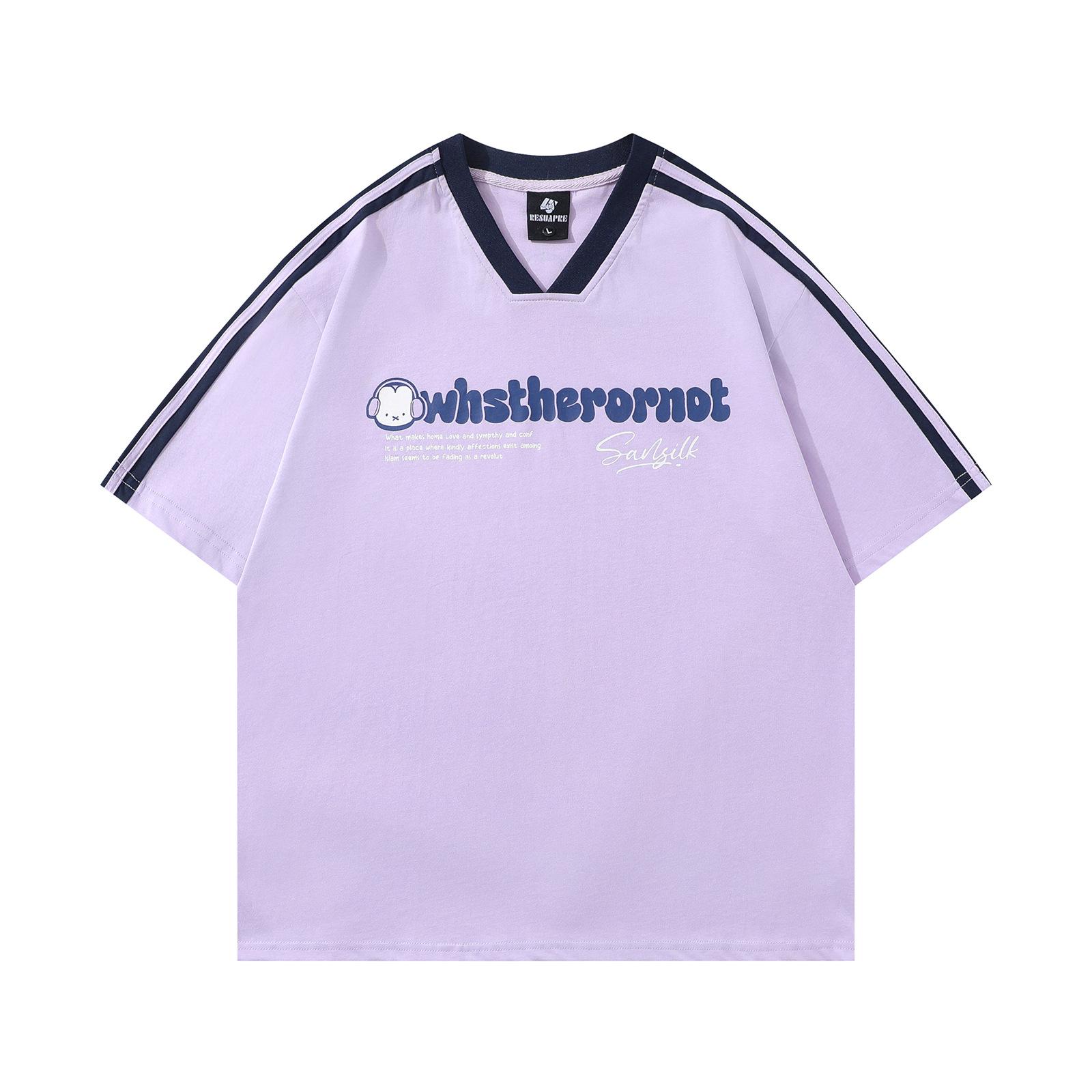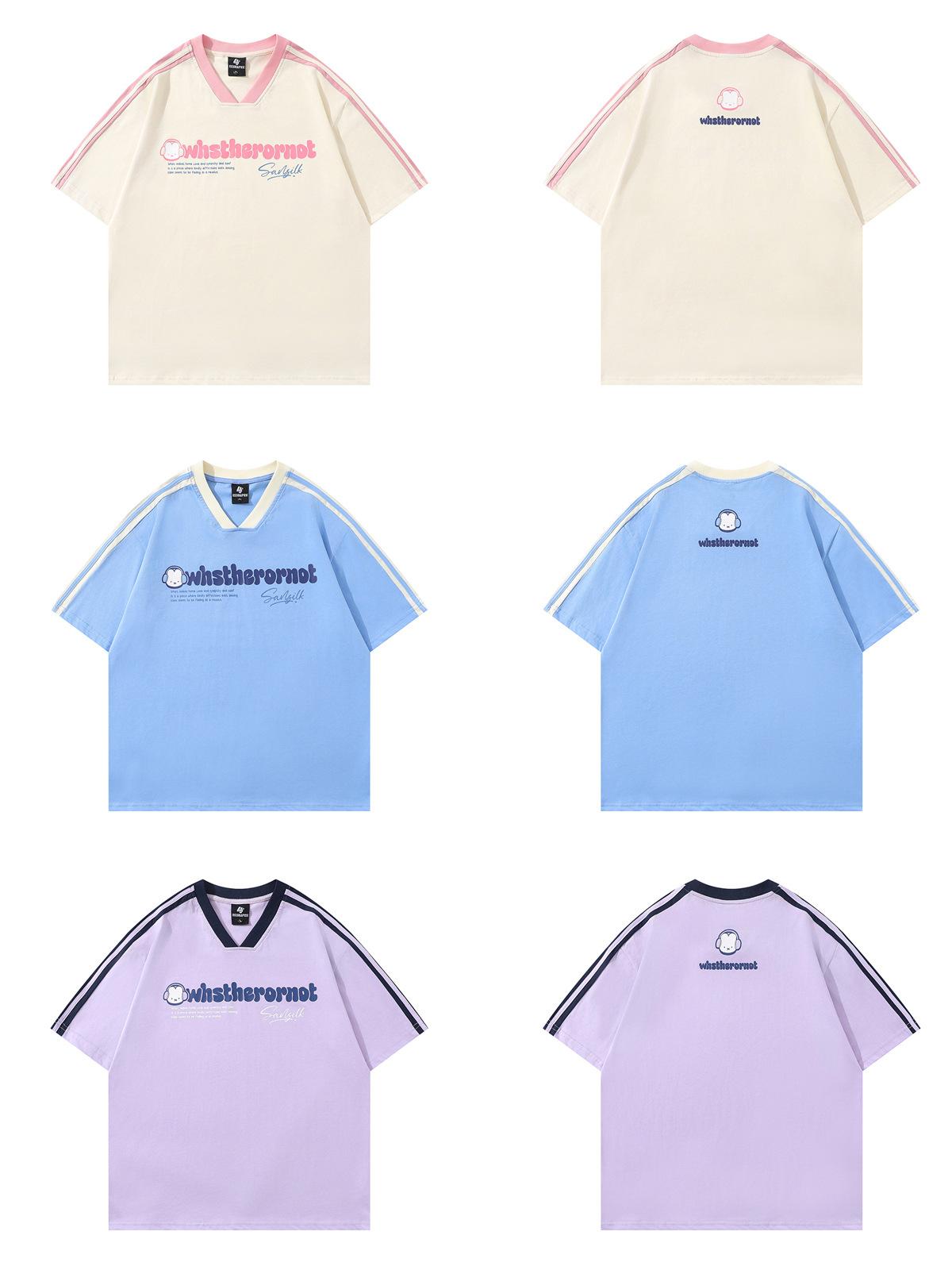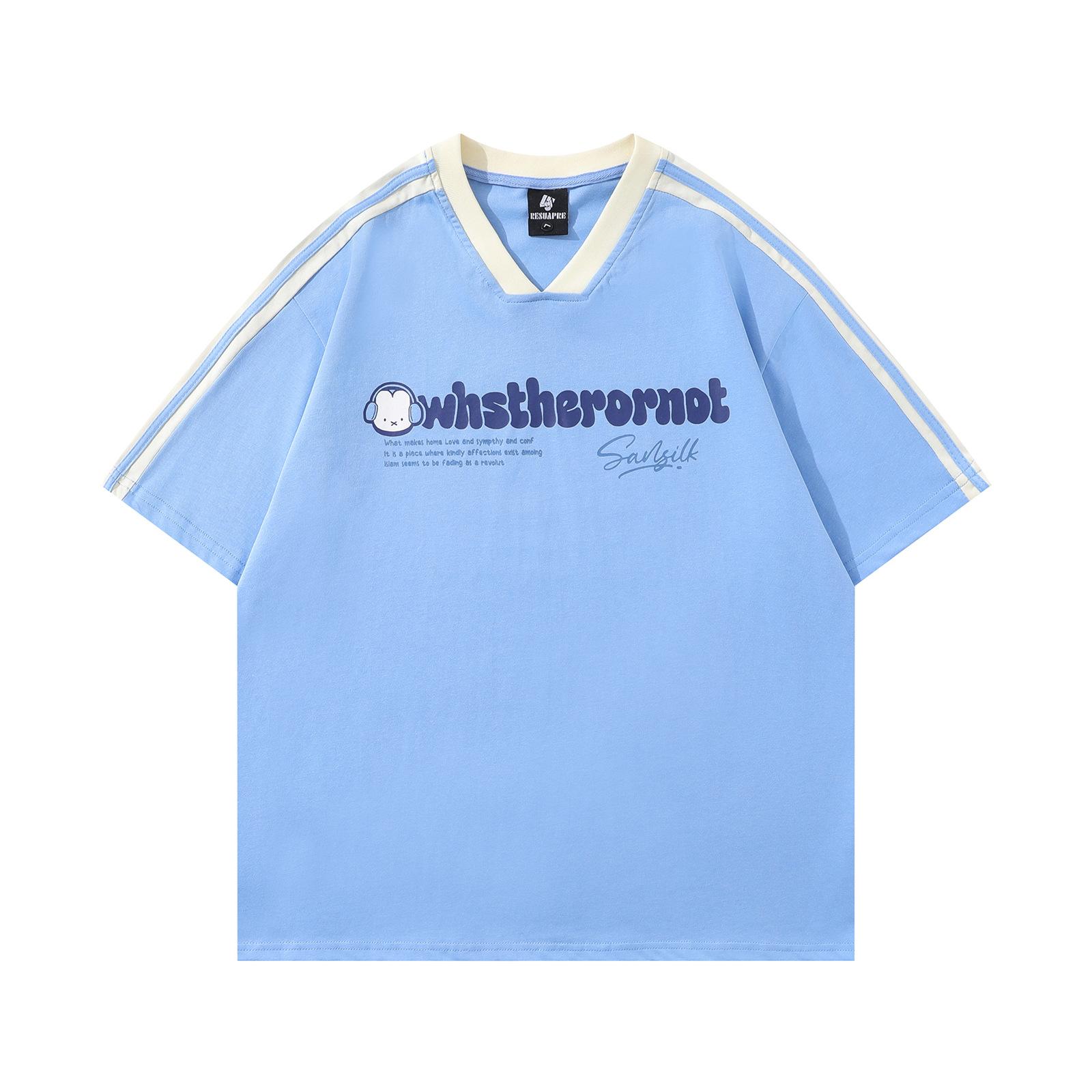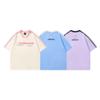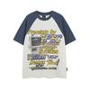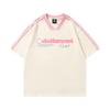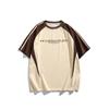 Camiseta de manga corta estilo americano retro con costuras de colores contrastantes y estampado de letras para hombre y mujer, top informal holgado de verano 2025, combinable con todo.