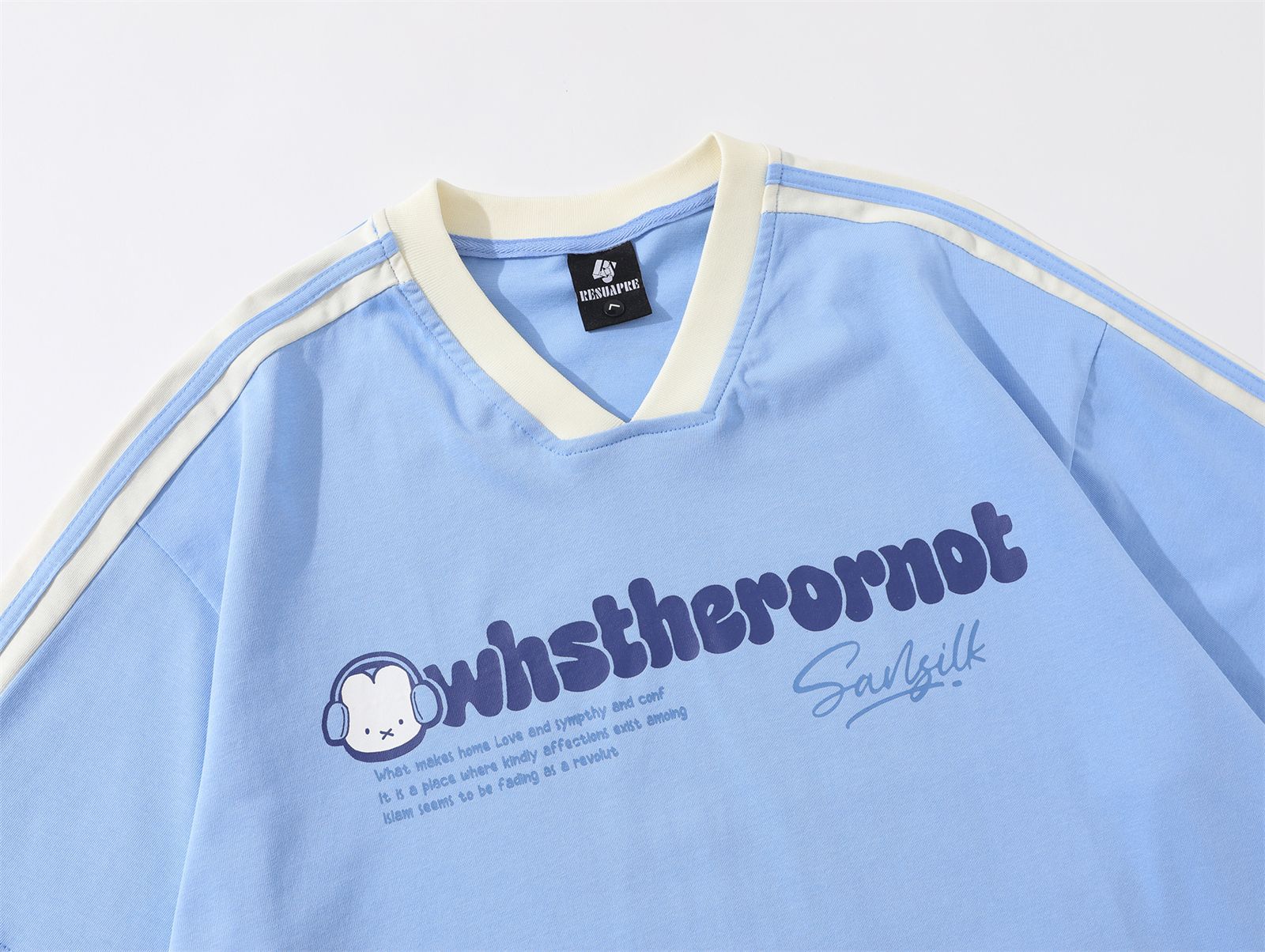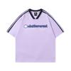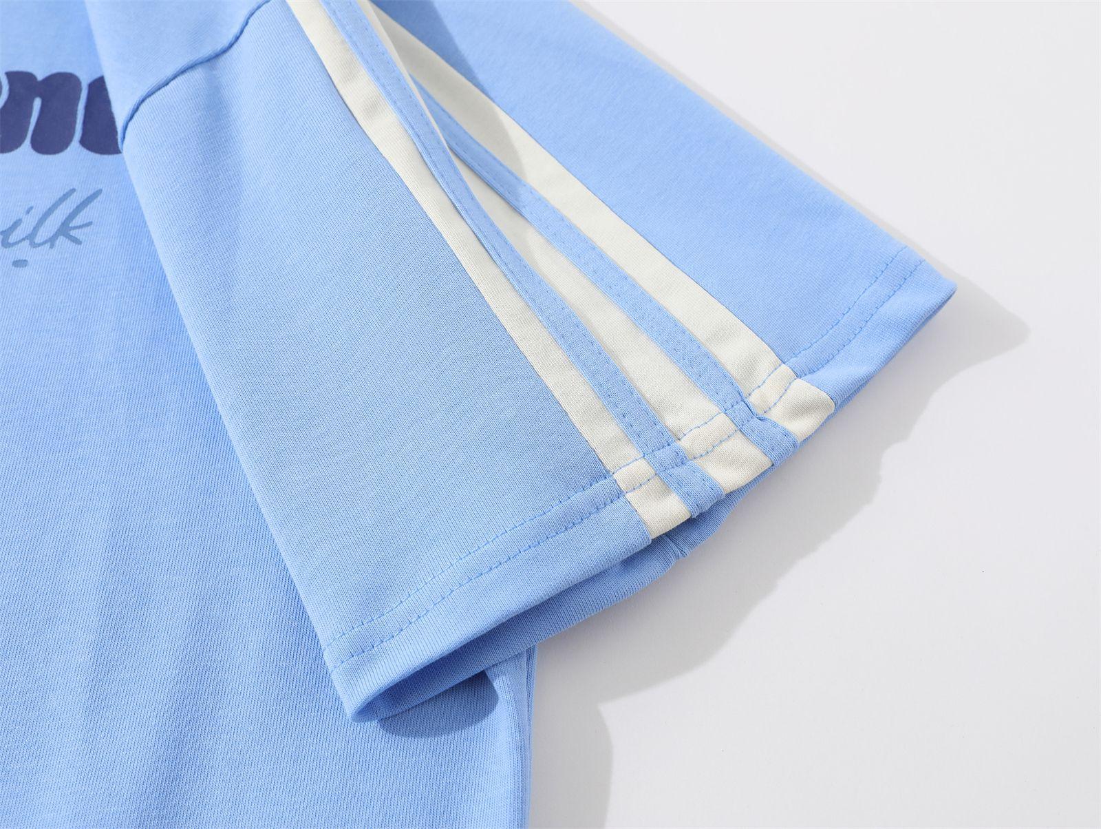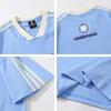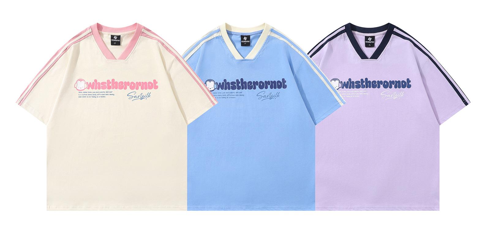 Camiseta de manga corta estilo americano retro con costuras de colores contrastantes y estampado de letras para hombre y mujer, top informal holgado de verano 2025, combinable con todo.