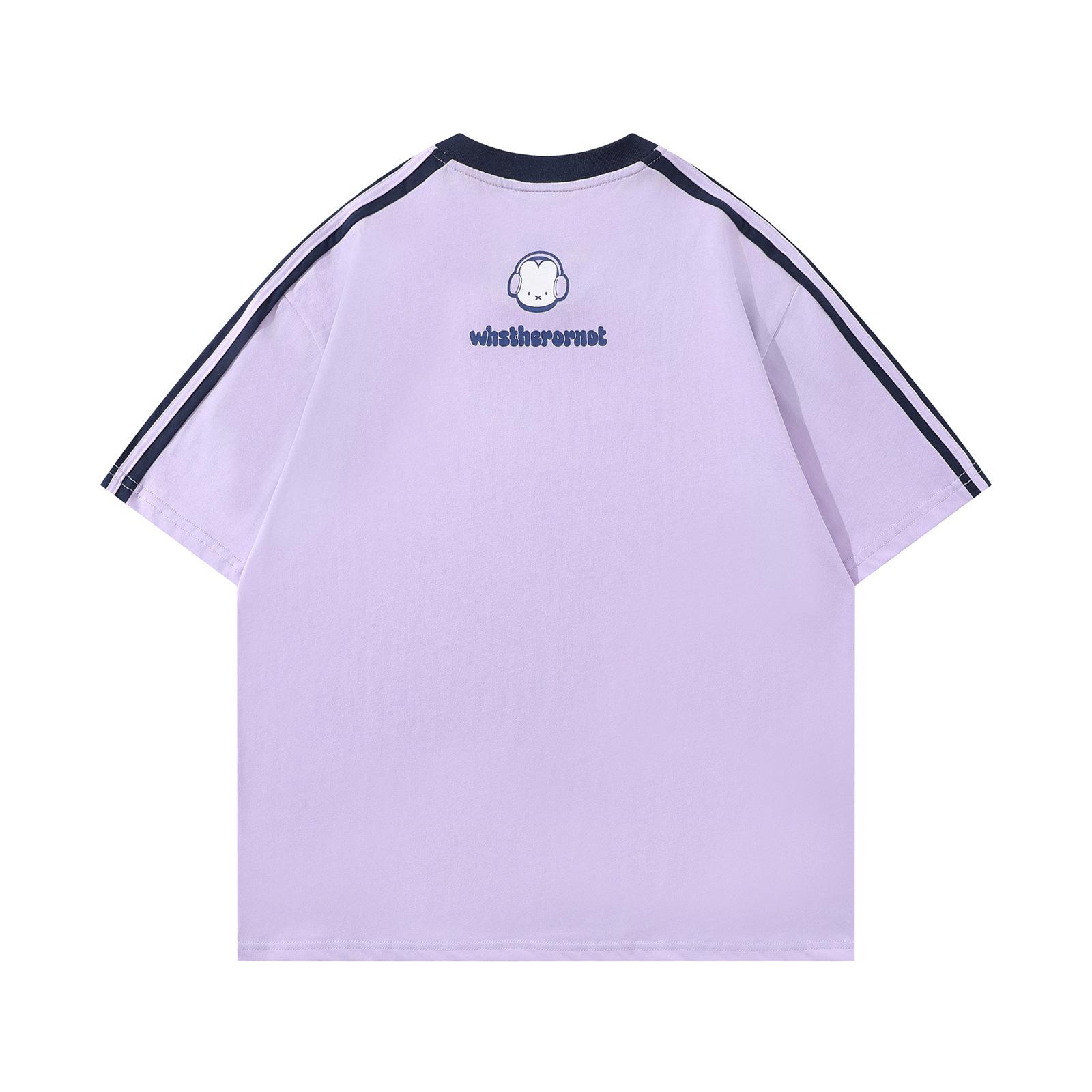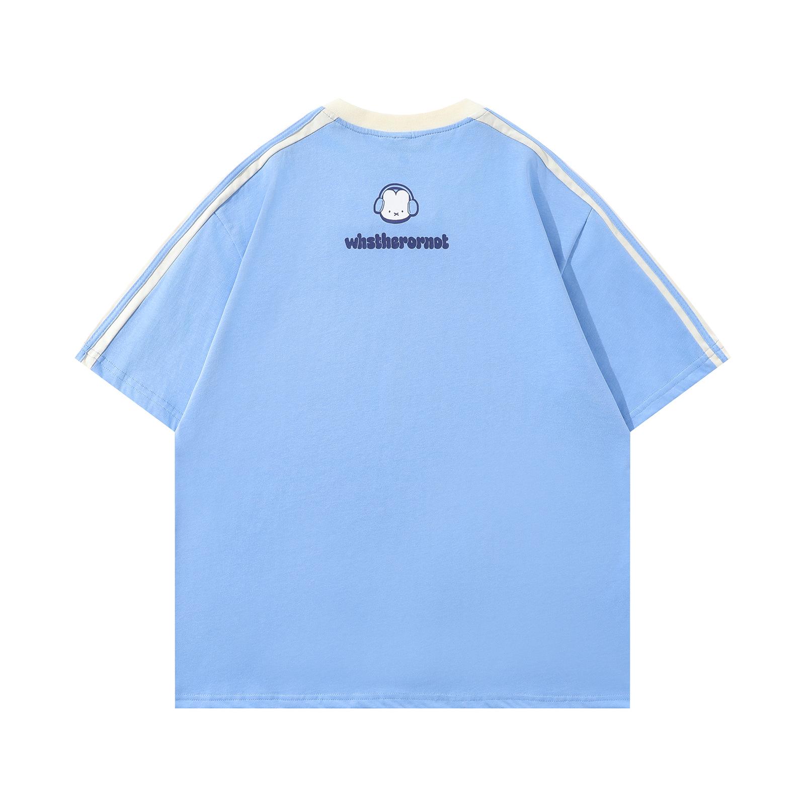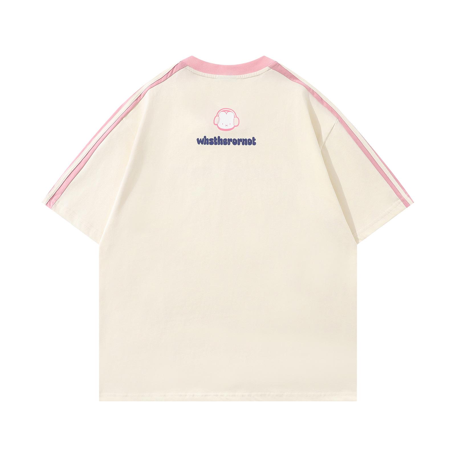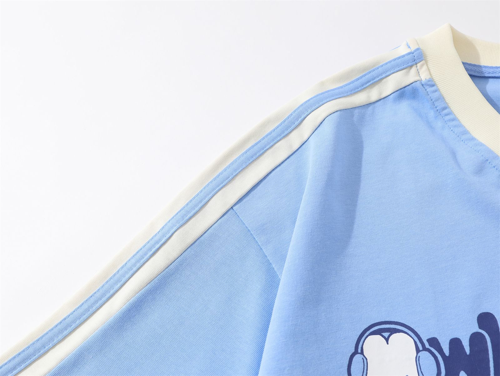 Camiseta de manga corta estilo americano retro con costuras de colores contrastantes y estampado de letras para hombre y mujer, top informal holgado de verano 2025, combinable con todo.