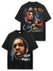 Hip-Hop Americano Transfronterizo Asap Rocky Camiseta de Manga Corta Lavada con Estampado a Doble Cara Sudadera Holgada con Cuello Redondo y Capucha