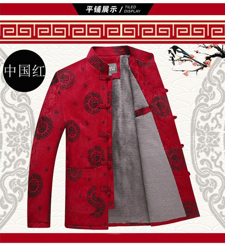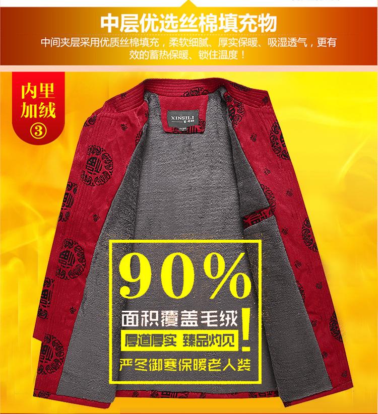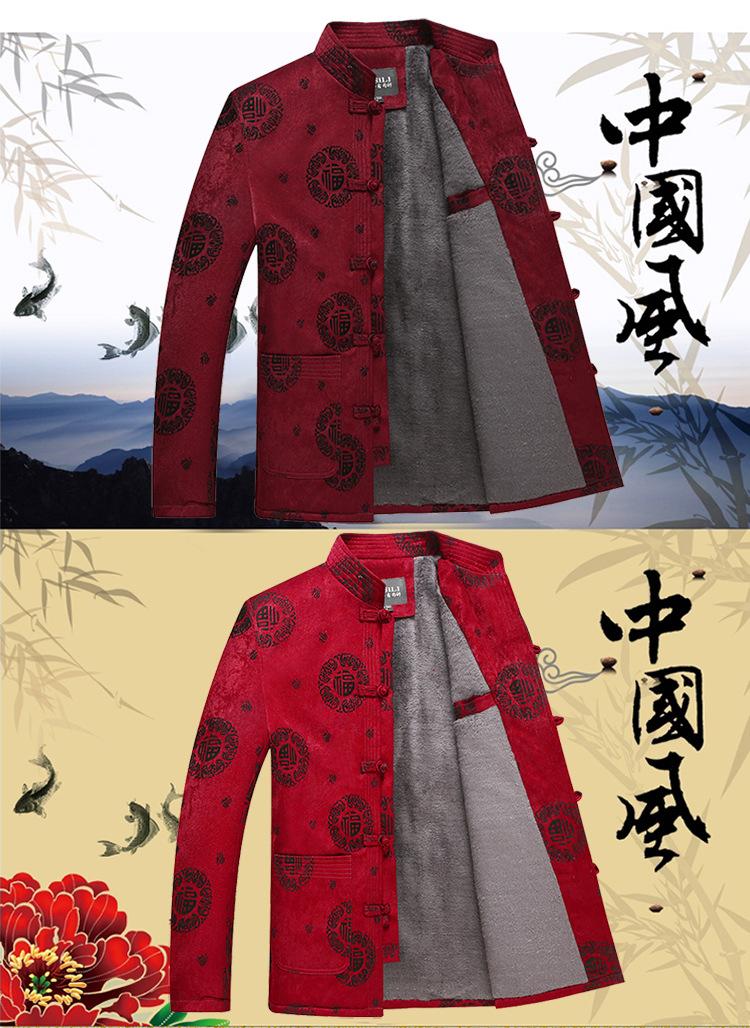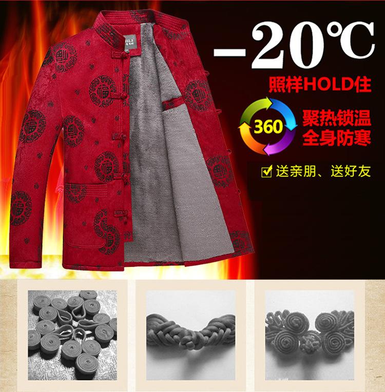 Nuevo Estilo de Invierno Traje Tang Acolchado de Algodón Grueso y con Forro Polar para Hombres de Mediana Edad y Mayores, Chaqueta Acolchada de Algodón para Hombres de Mediana Edad, Abrigo de Algodón de Manga Larga